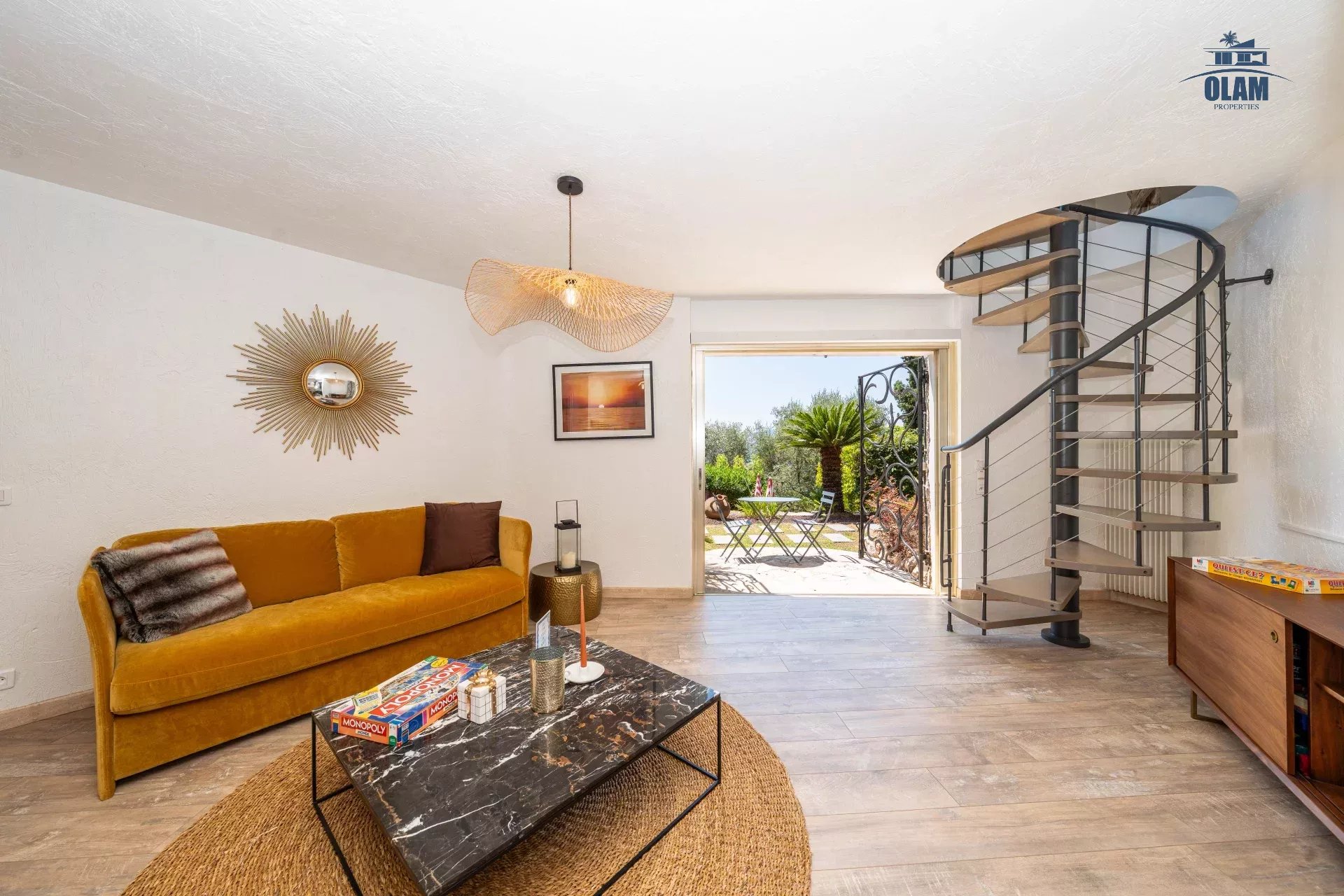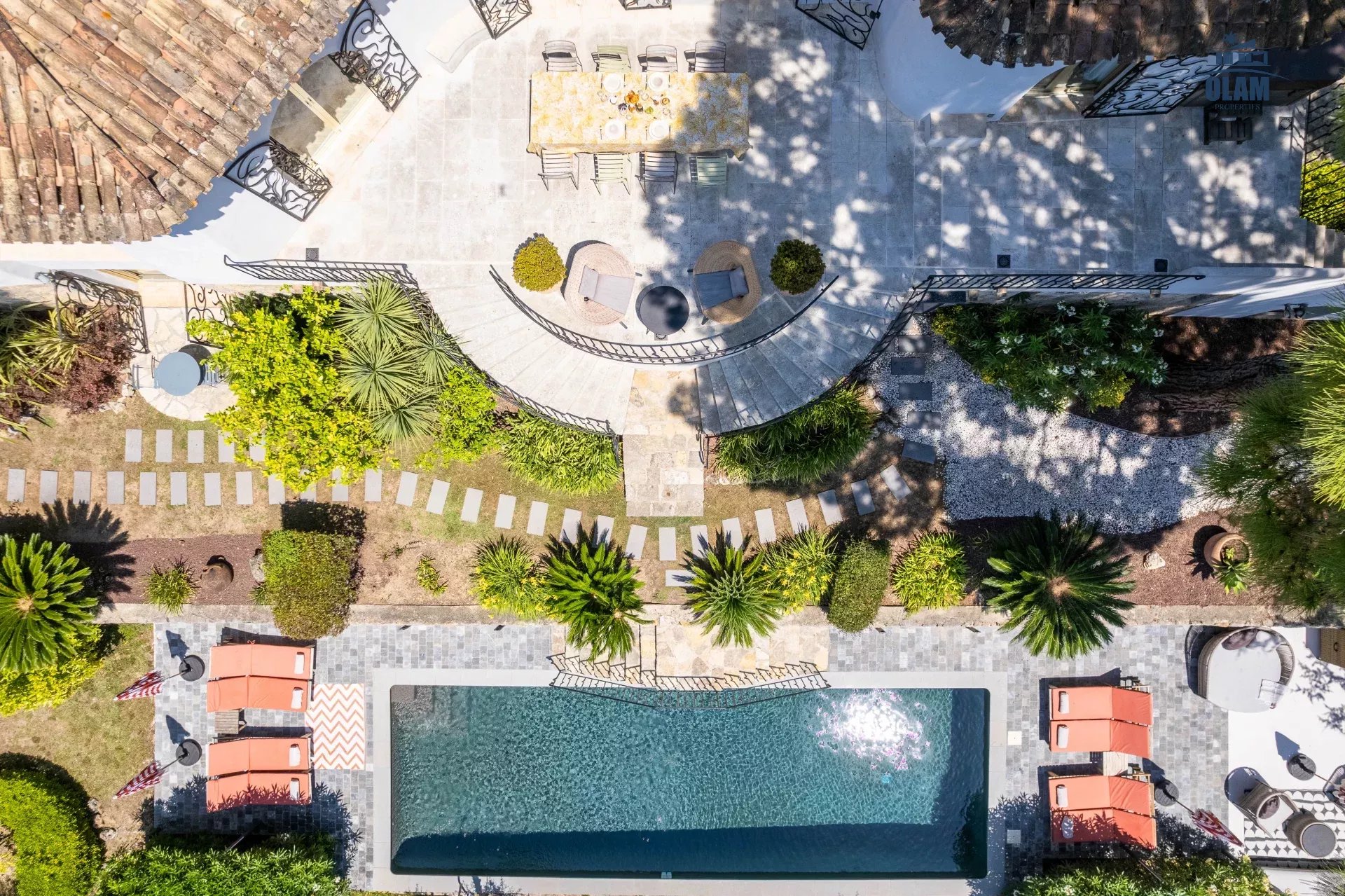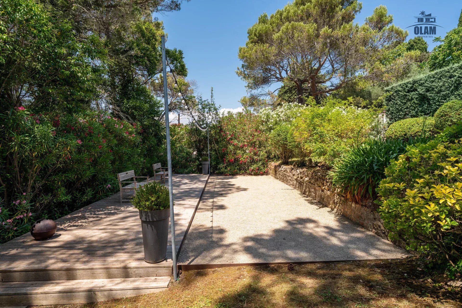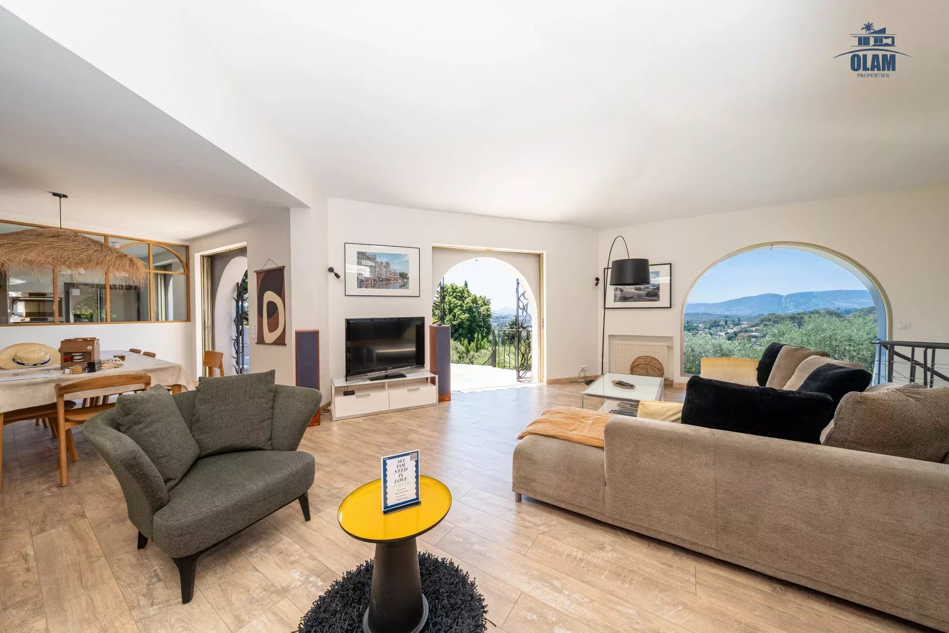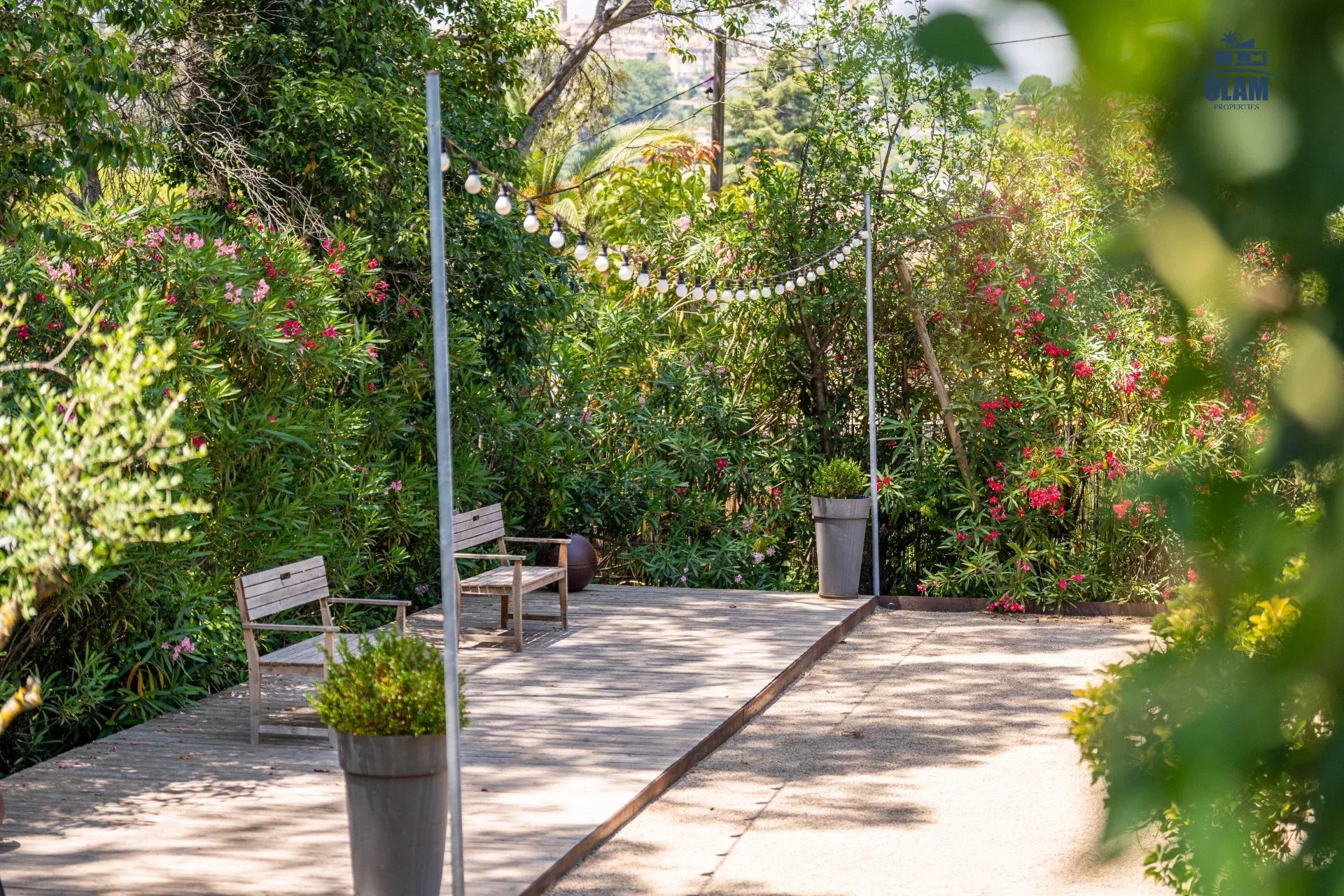 Dans un domaine privé, à proximité du village de Mougins (3mn en voiture), villa d’environ 250m2 composée comme suit :