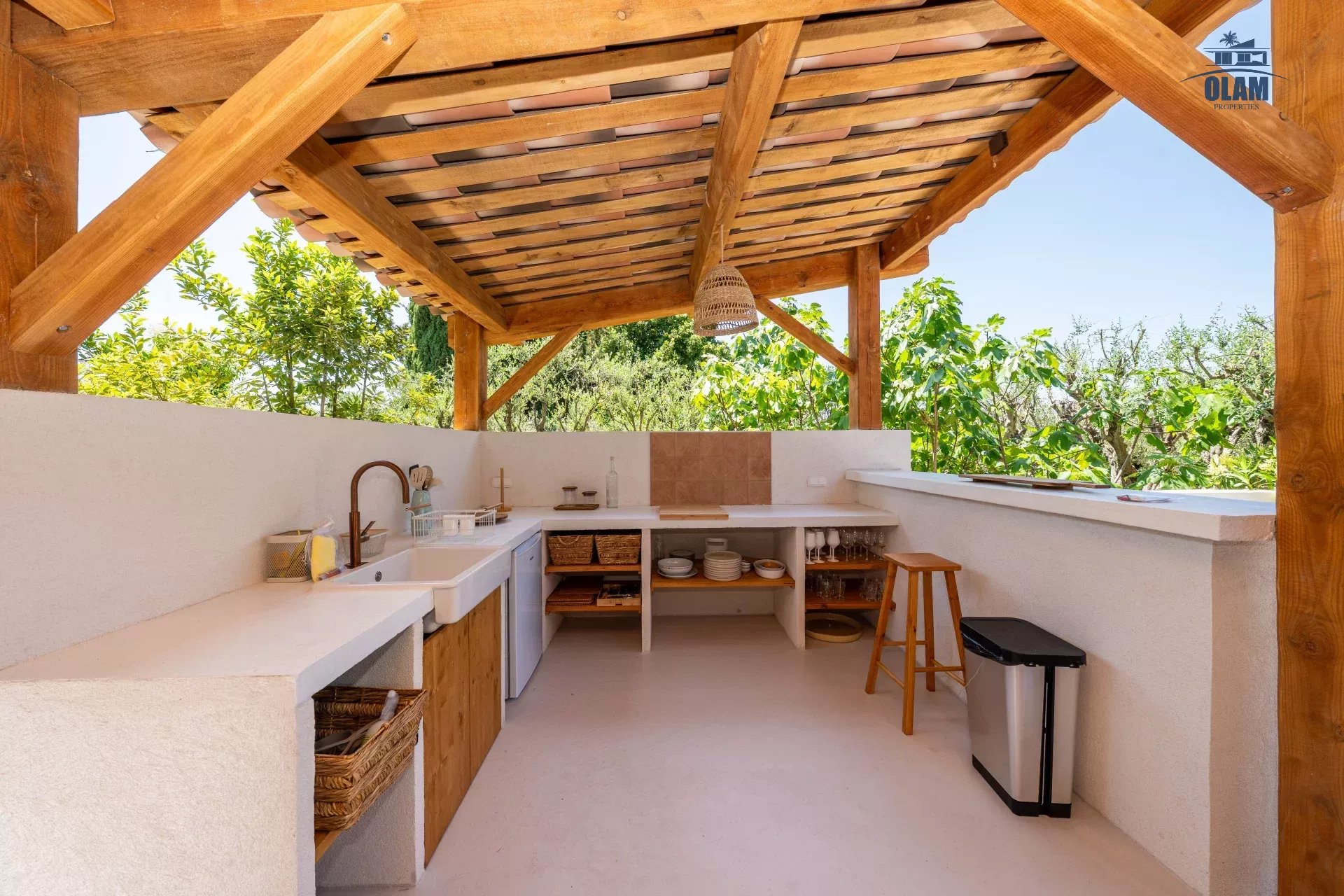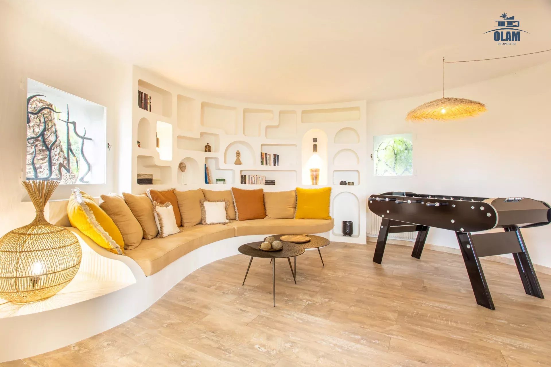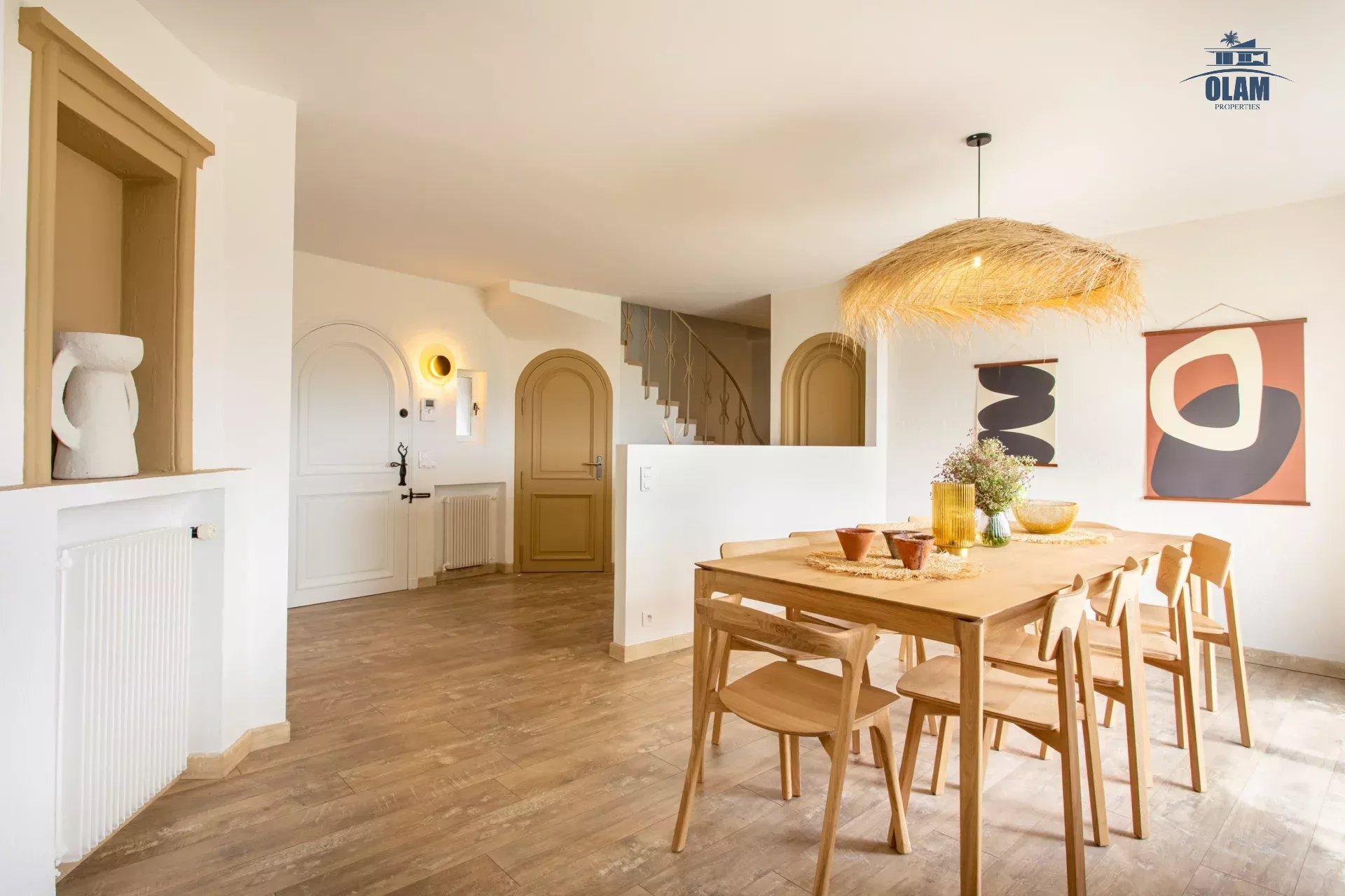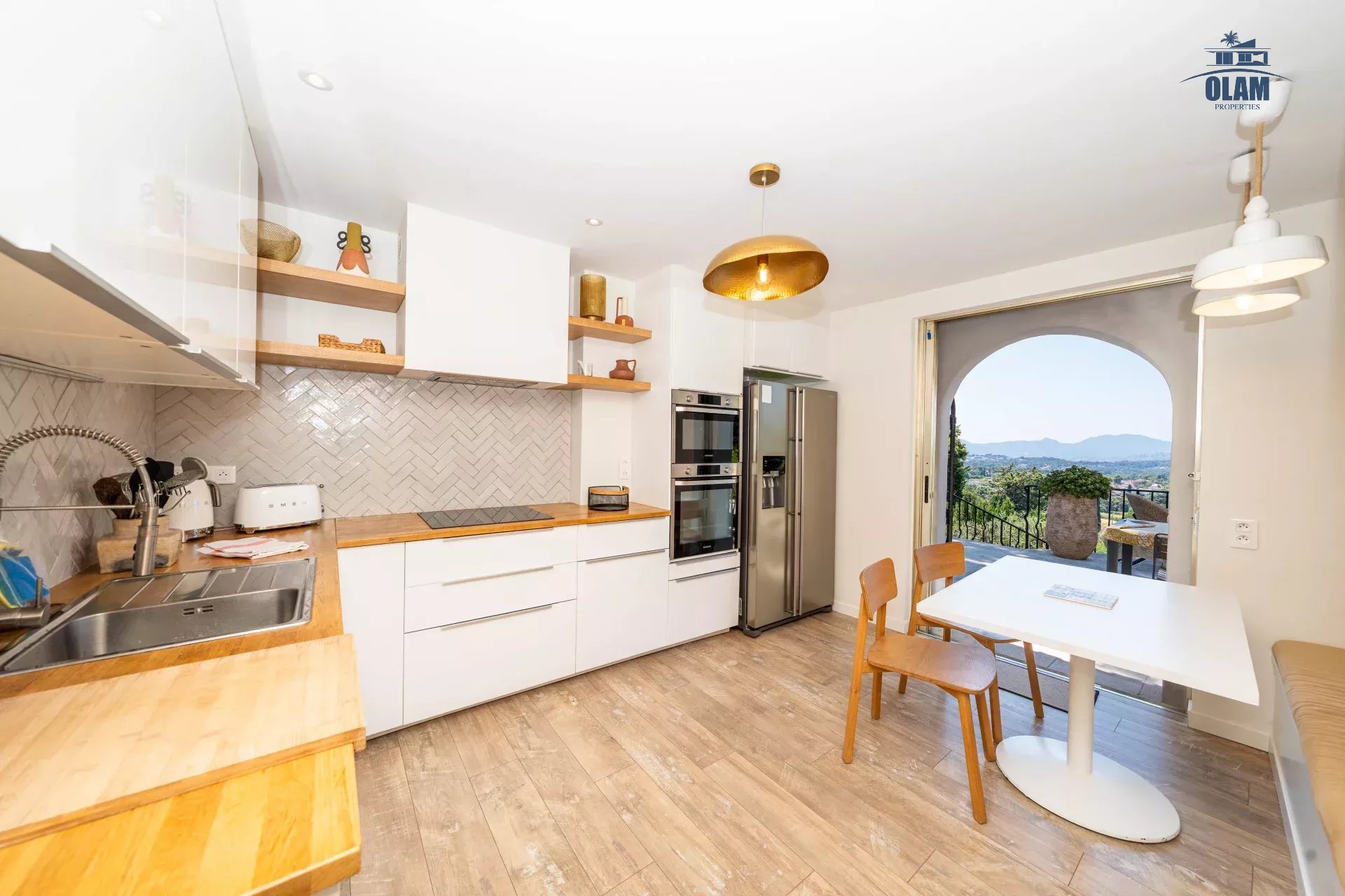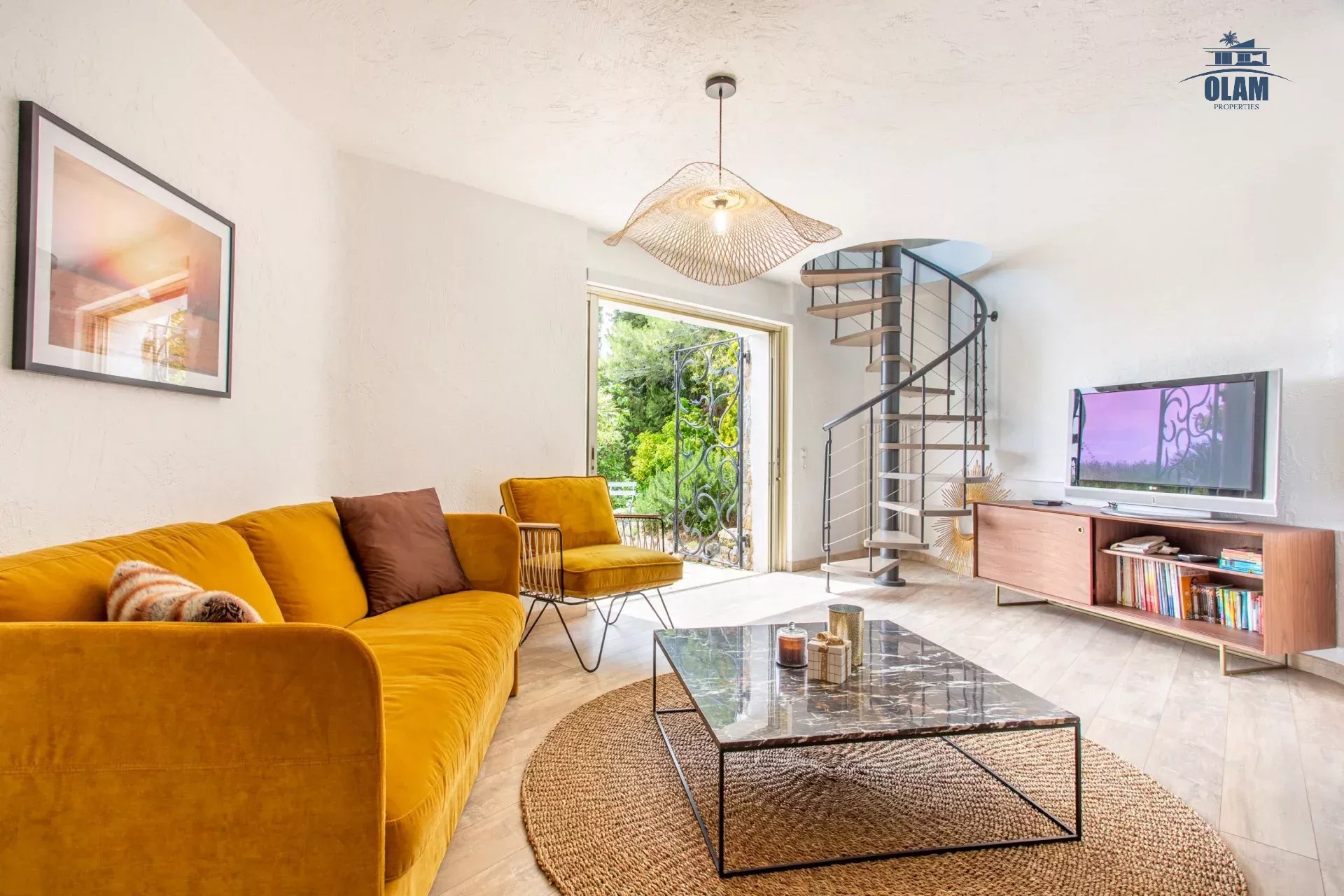 Dans un domaine privé, à proximité du village de Mougins (3mn en voiture), villa d’environ 250m2 composée comme suit :