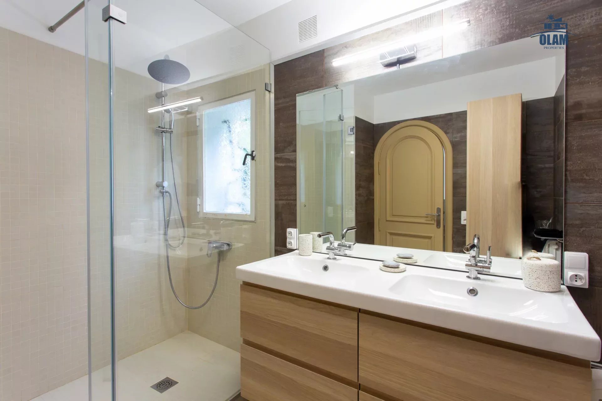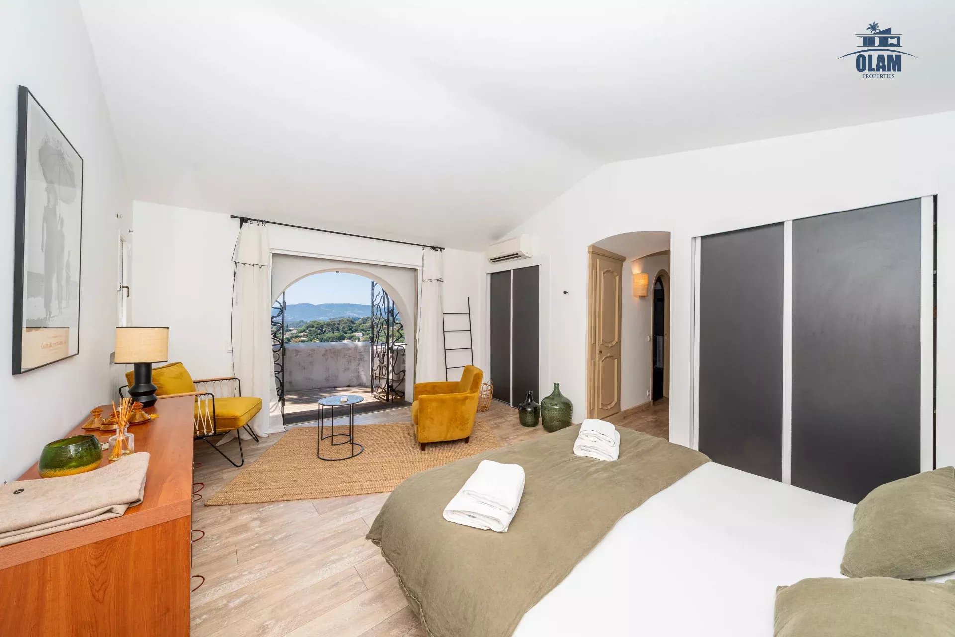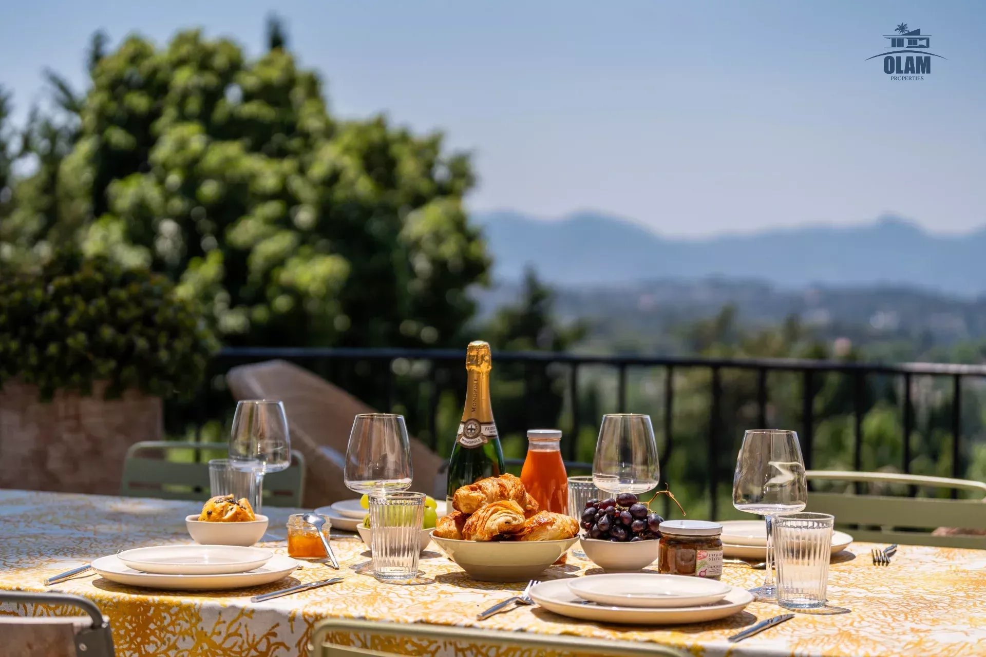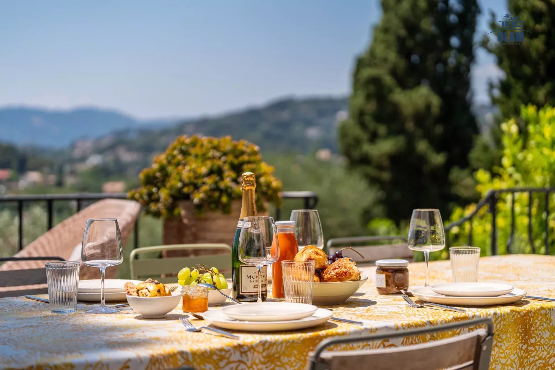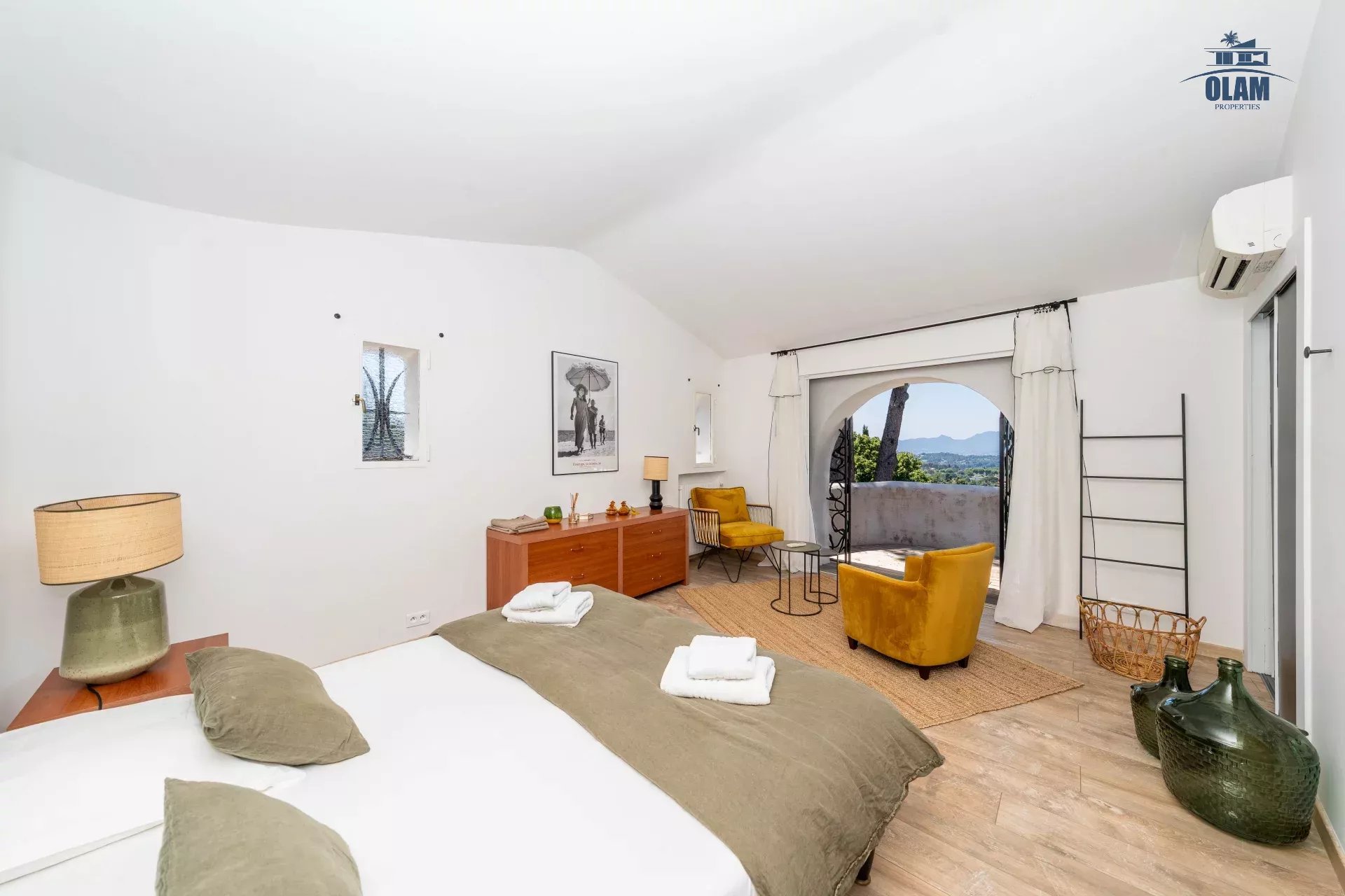 Dans un domaine privé, à proximité du village de Mougins (3mn en voiture), villa d’environ 250m2 composée comme suit :