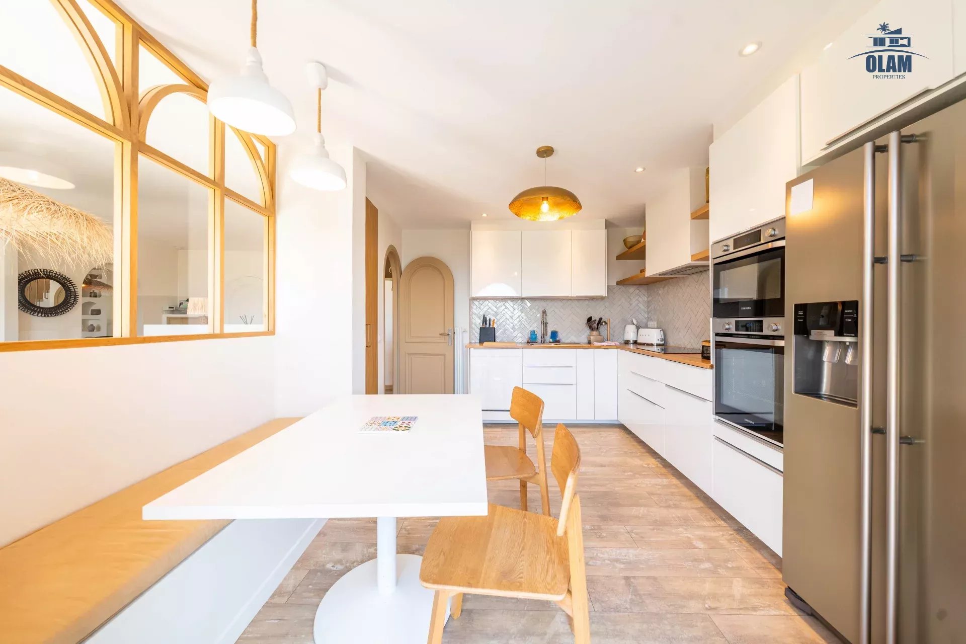 - Au rez-de-chaussée : un grand salon avec vue dégagée, un autre salon de détente, une grande cuisine séparée toute équipée. Un hall d'entrée spacieux avec toilettes invités. Une grande chambre avec vue sur le jardin et salle de douche avec wc.