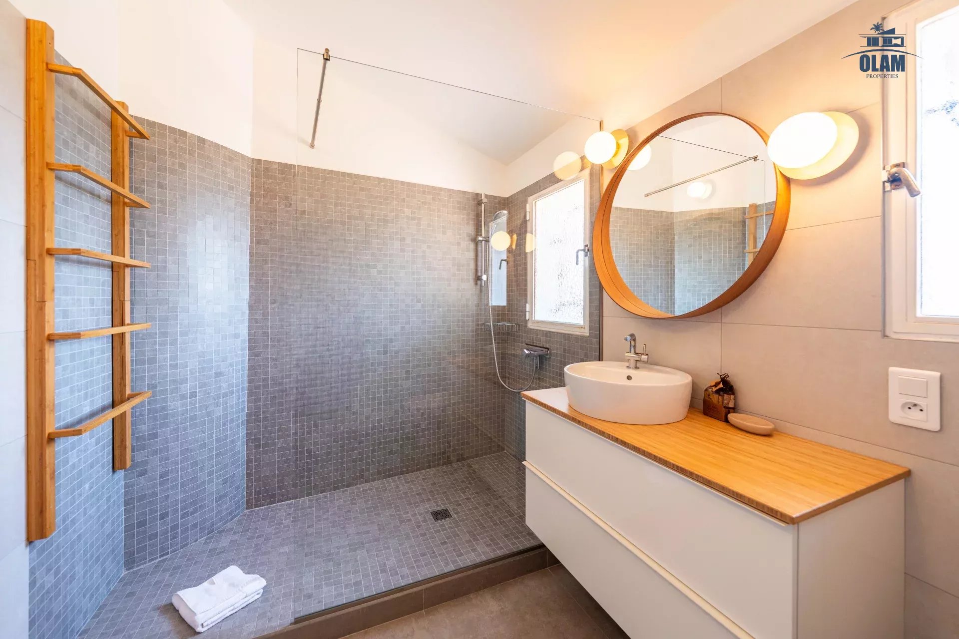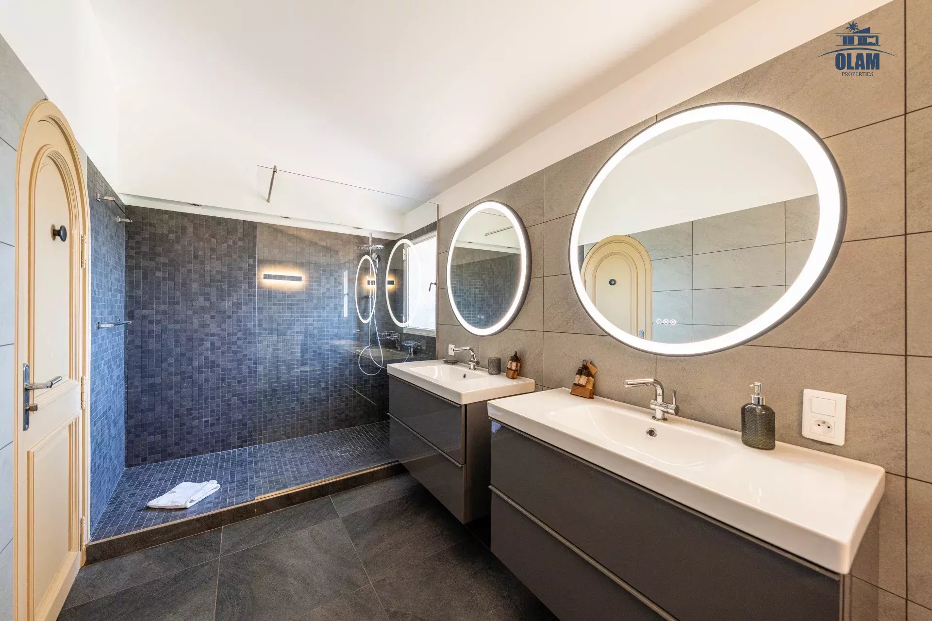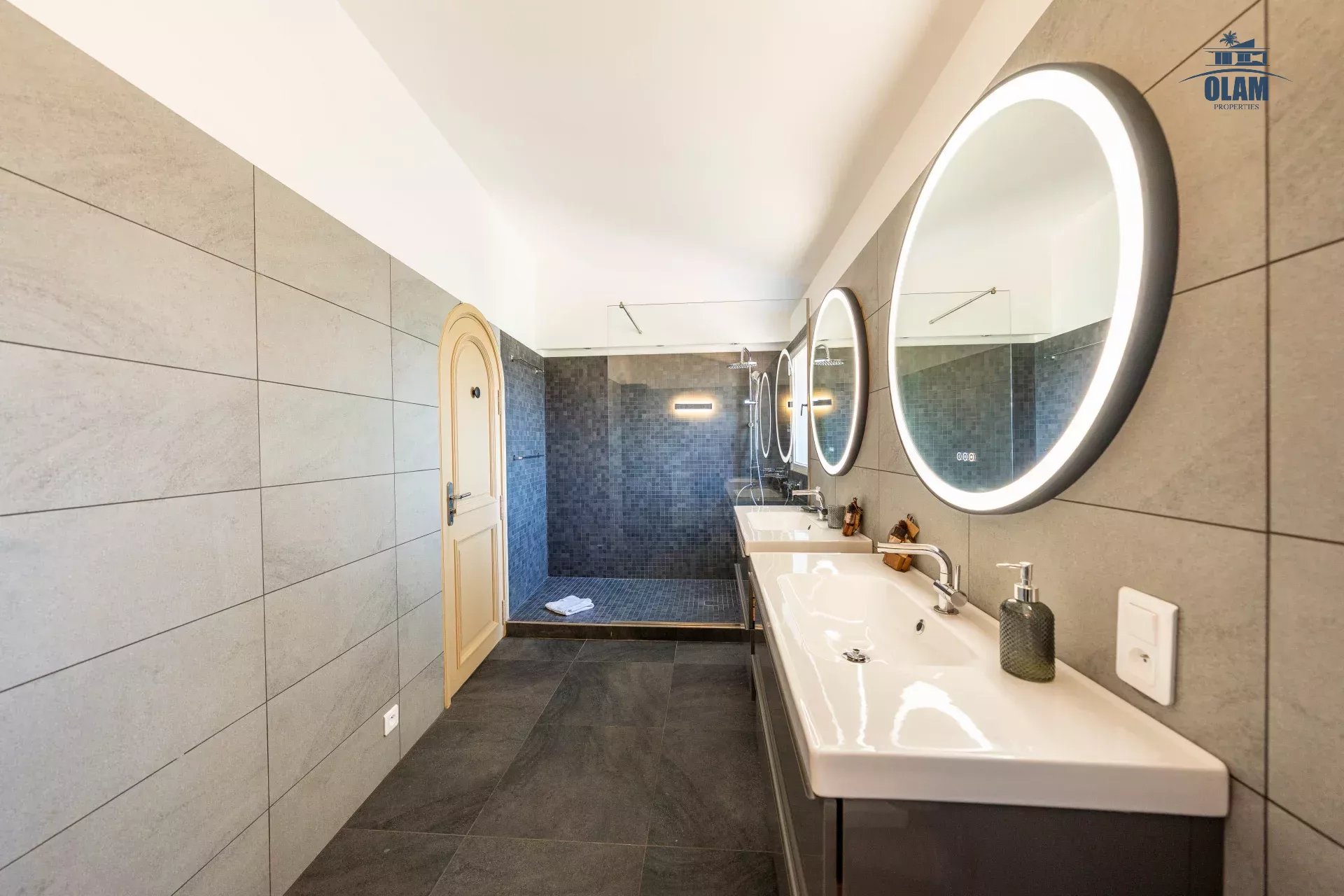 - Au premier étage : deux chambres en suite dont une avec une terrasse avec vue mer, équipées de rangements avec salle de douche et wc.