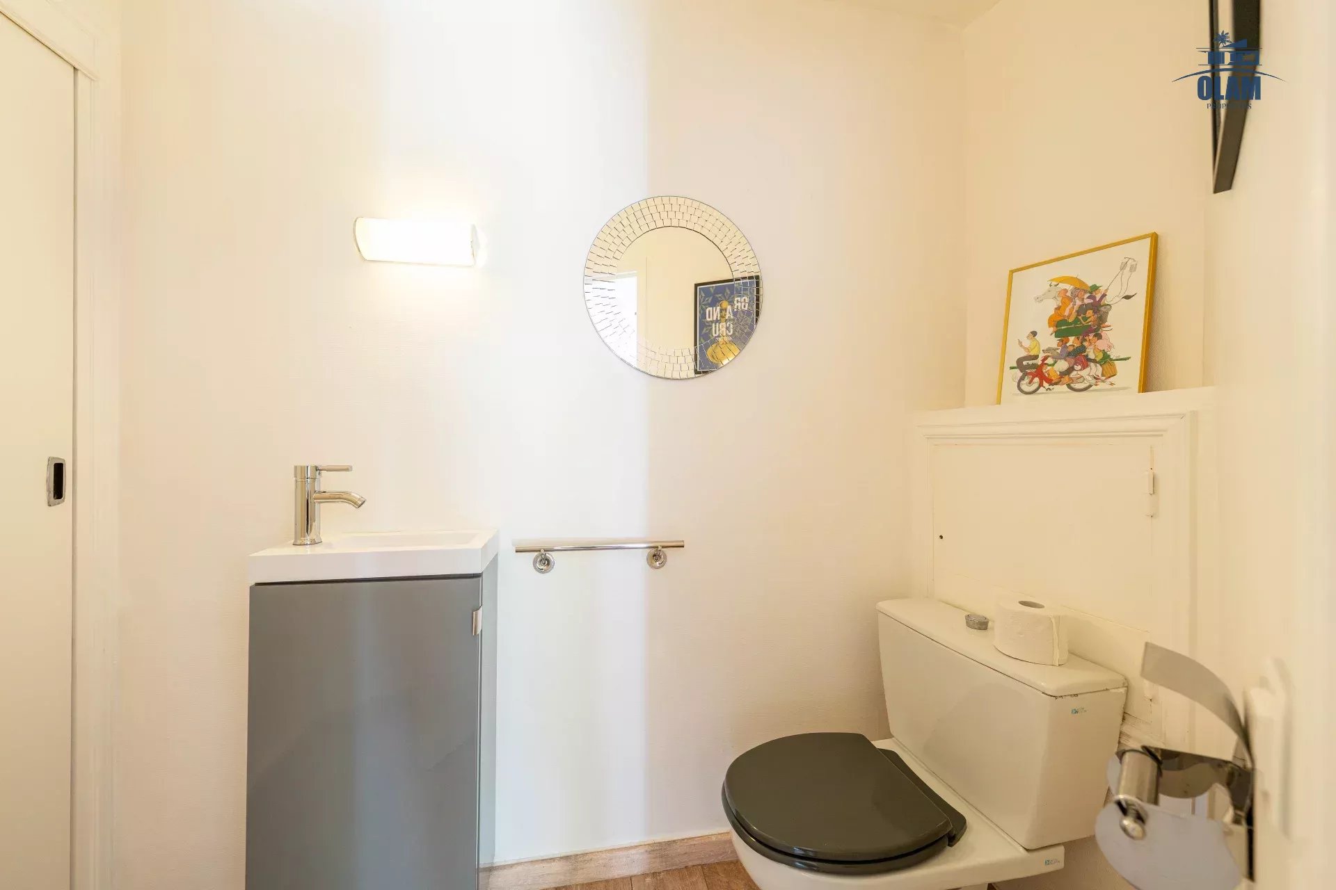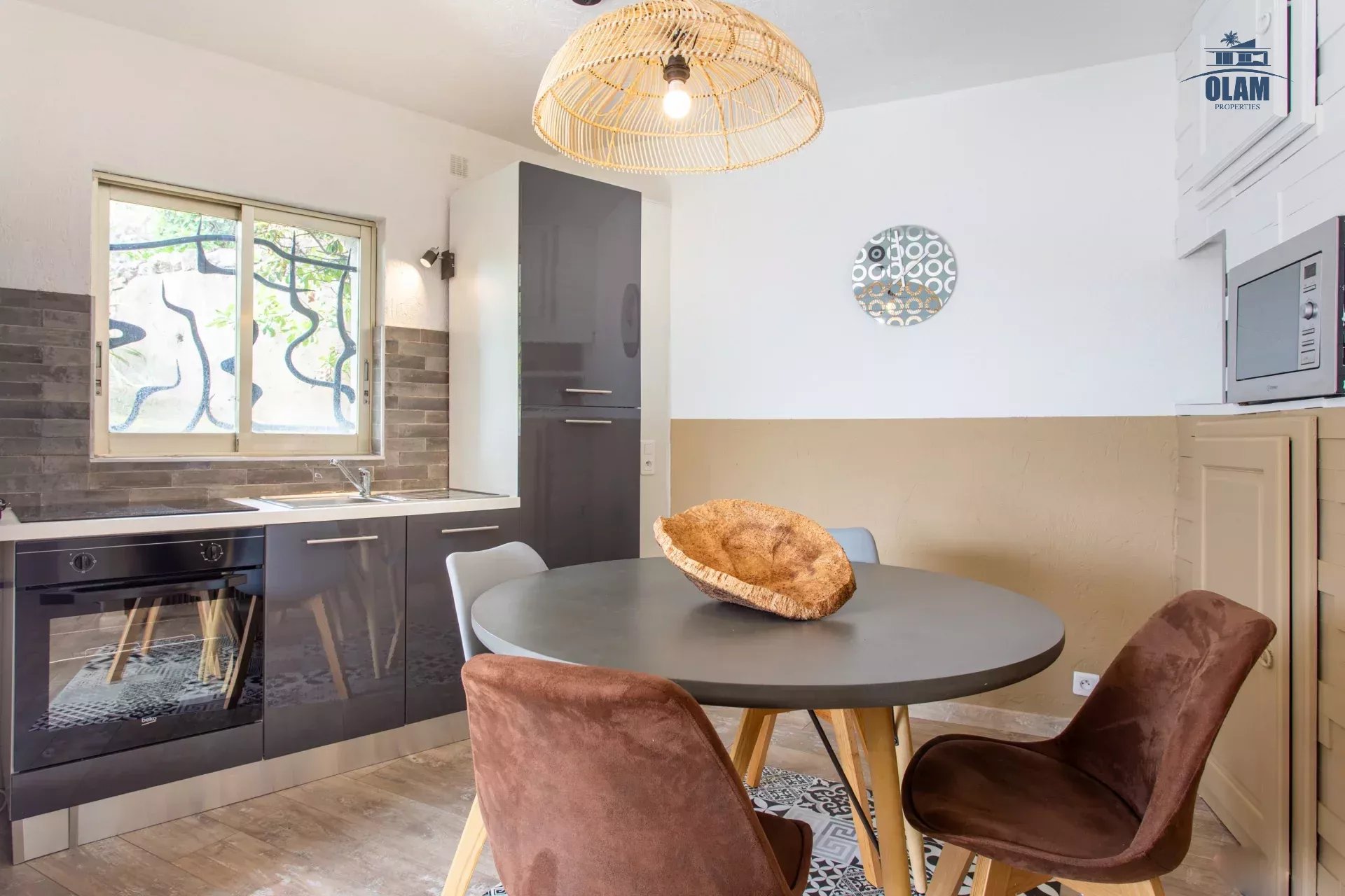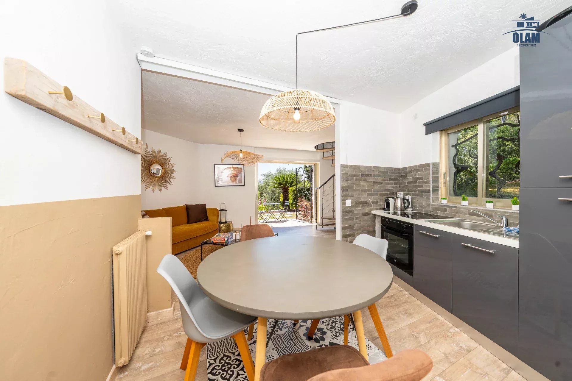 - Au rez-de-jardin : un appartement indépendant relié par un escalier intérieur avec salon , petite cuisine, 2 chambres (communicantes) donnant sur le jardin avec salle de douche et wc.