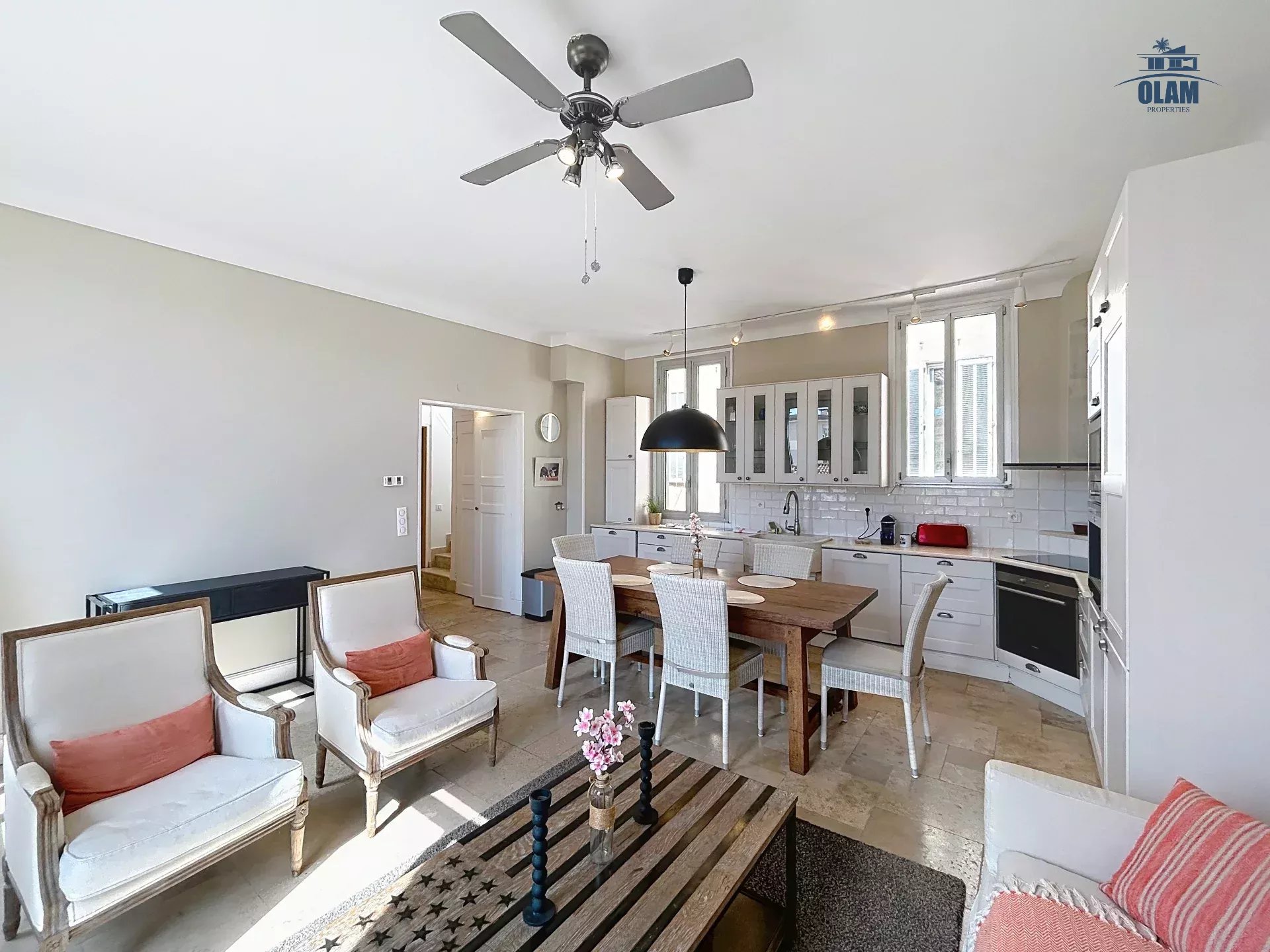 Au sein d'un immeuble ancien, calme. Nous vous proposons ce bel appartement au 1er étage (sans ascenseur) d'une surface d'environ 80m2 au sol.