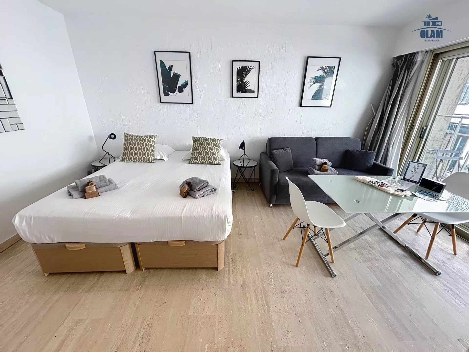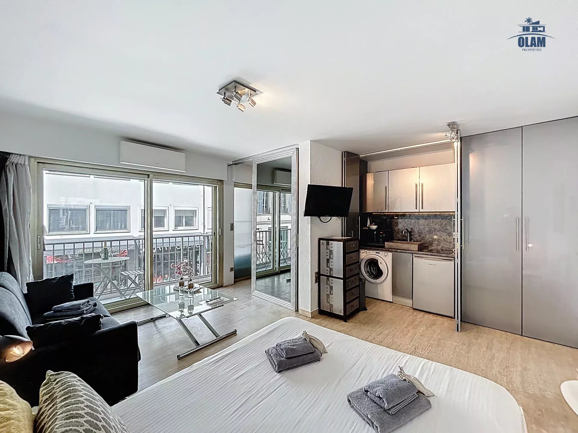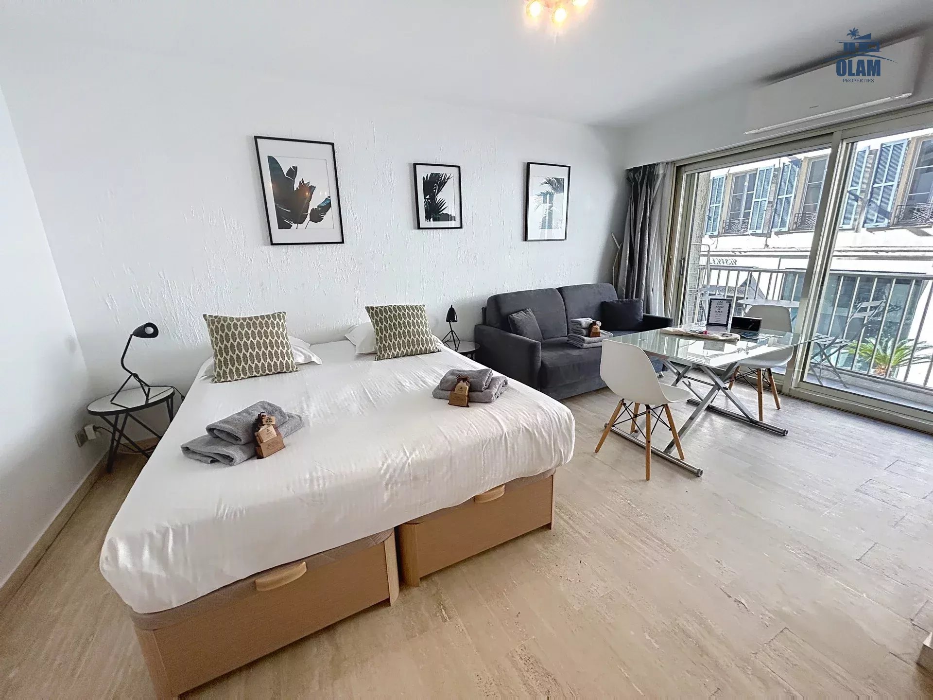 Charmant studio de 25m2 situé au coeur de Cannes à 2 pas de la Croisette et des plages de sable. Tous les commerces sont à proximité. L'appartement à été refait entièrement à neuf, équipée d'une kitchenette, lit 160cm et canapé convertible dans l'espace de vie, salle de douche avec wc. Climatisé - Balcon
