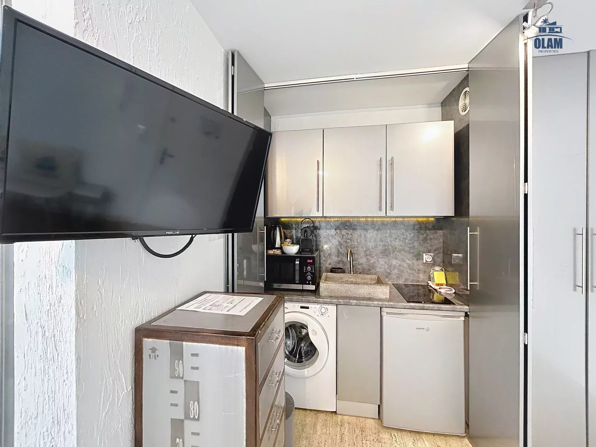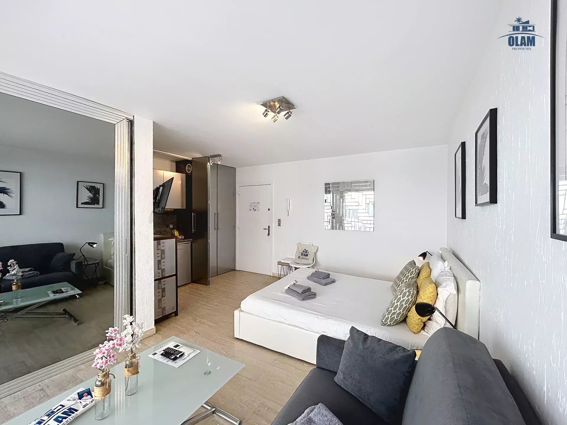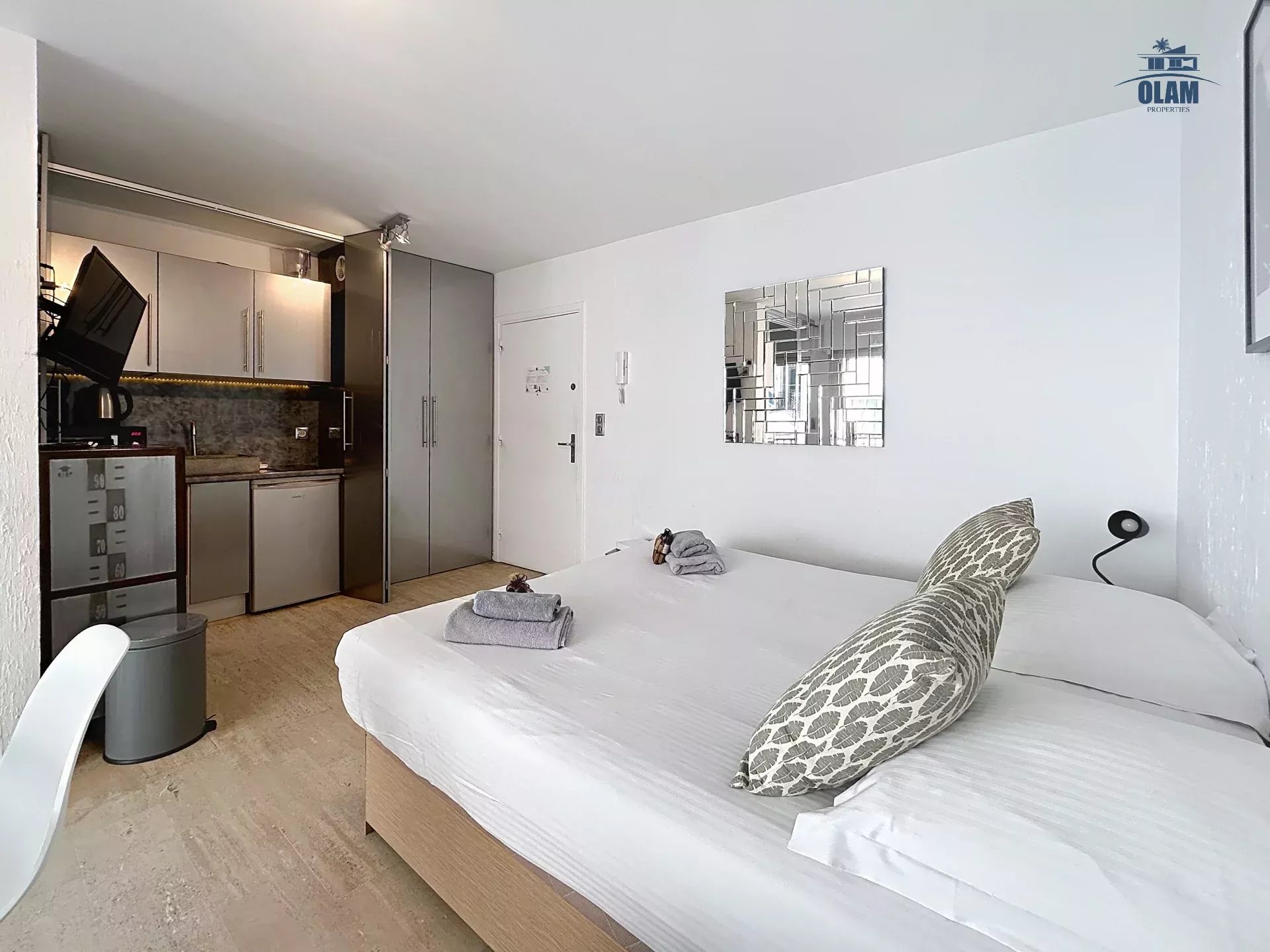 Charmant studio de 25m2 situé au coeur de Cannes à 2 pas de la Croisette et des plages de sable. Tous les commerces sont à proximité. L'appartement à été refait entièrement à neuf, équipée d'une kitchenette, lit 160cm et canapé convertible dans l'espace de vie, salle de douche avec wc. Climatisé - Balcon