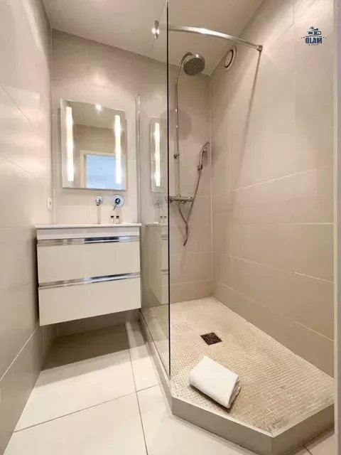 Ce logement est situé au 1er étage (avec ascenseur), il est composé d'un salon/salle à manger orienté sud, une grande cuisine ouverte entièrement équipée (four, lave vaisselle, four micro-ondes, plaque de cuisson, réfrigérateur-congélateur, machine à café Nespresso, lave vaisselle, machine à laver,...), une chambre (avec un grand lit 180cm ou 2 lits simples), sa salle d'eau avec wc , une deuxième chambre (avec un grand lit 180cm ou 2 lits simples) avec sa salle de bain. Wc invités. Un joli balcon avec une table pour 2 personnes agrémente ce superbe logement. Il est entièrement climatisé, internet haut débit.