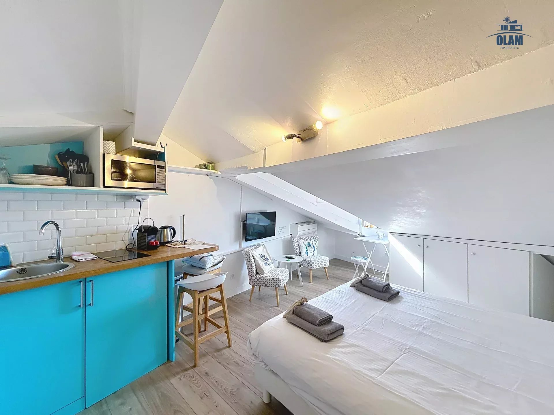 Charmante studette de 18m2 au sol qui se trouve dans le quartier historique de Cannes. Située au coeur du quartier historique, au 4ème étage sans ascenseur (escaliers étroits).