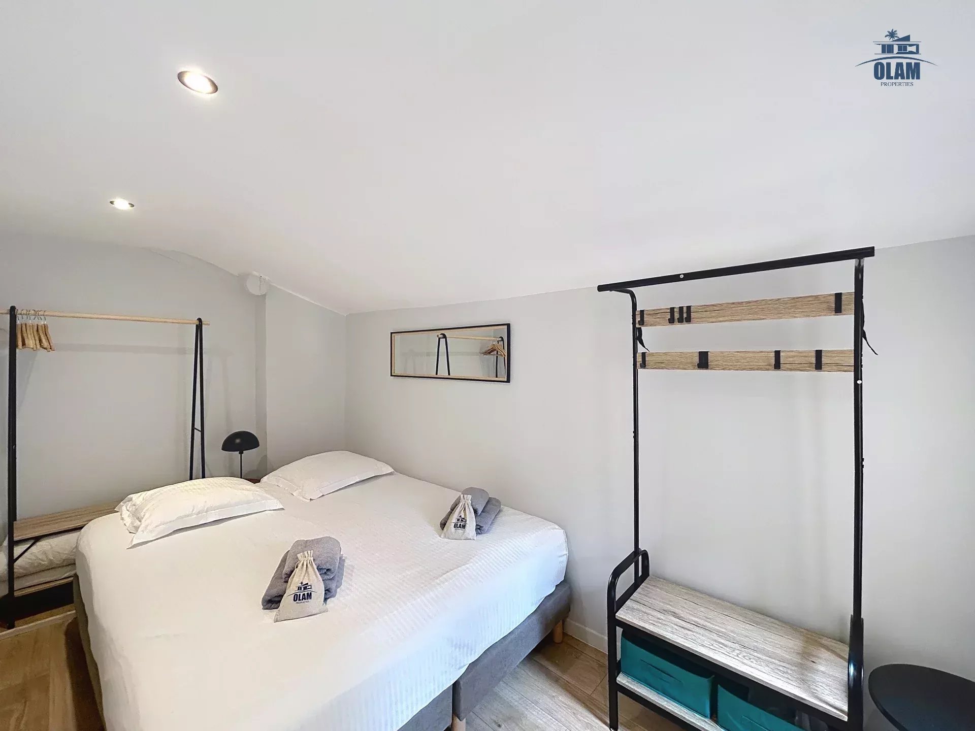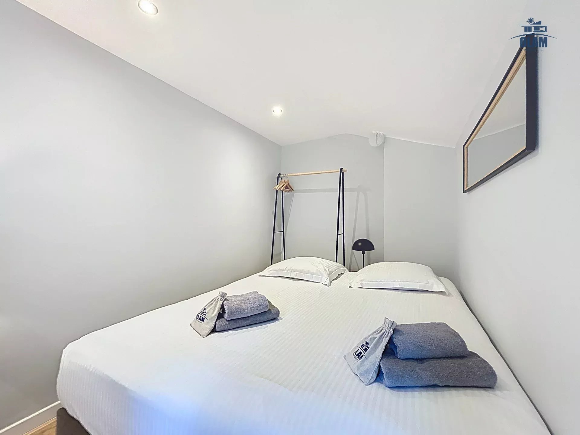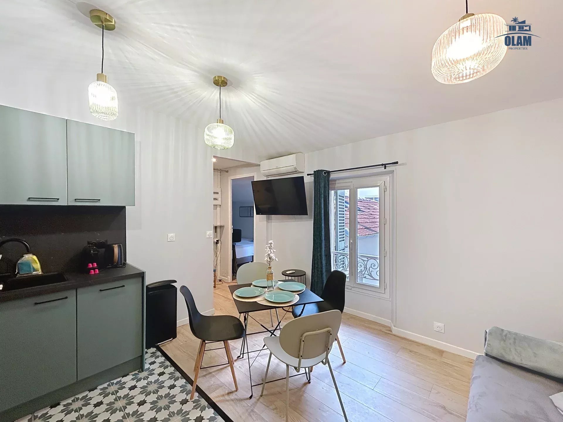 Charmant appartement de 30 m² comprenant une chambre (avec télévision), un salon avec canapé-lit double, une cuisine américaine entièrement équipée (four, micro-ondes, etc.), des toilettes et une salle de bains. Internet Wi-Fi. L'appartement est situé dans une petite rue, à proximité de toutes commodités (supermarché, pharmacie, boulangerie, etc.), au 3e étage sans ascenseur. À seulement 1 minute à pied du boulevard de la Croisette.