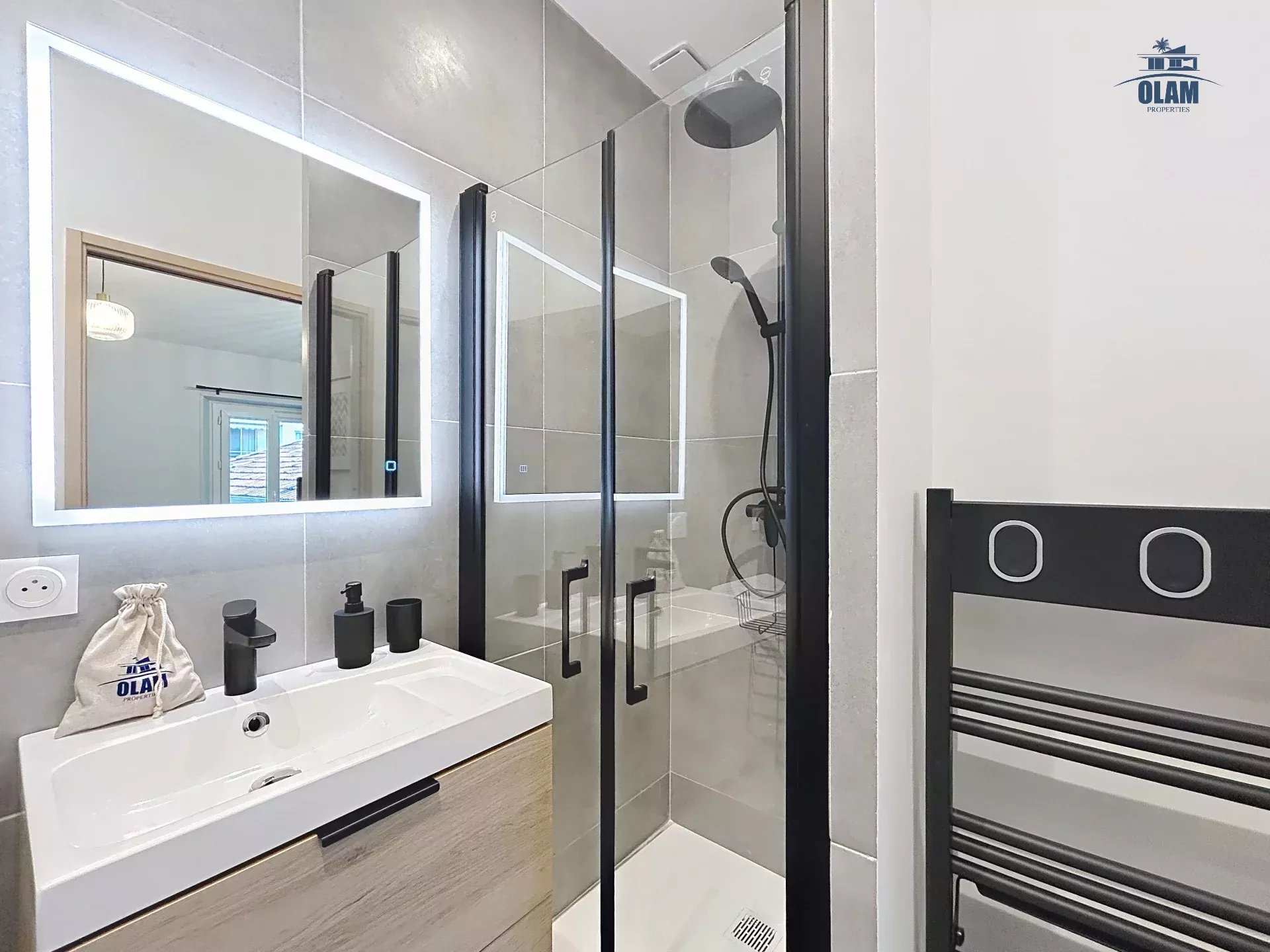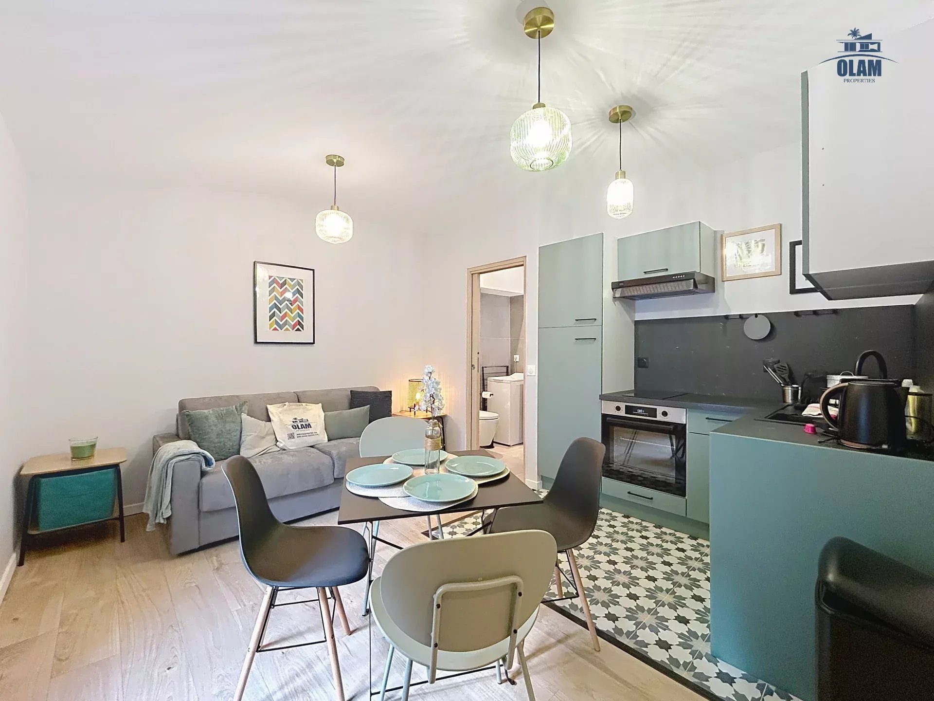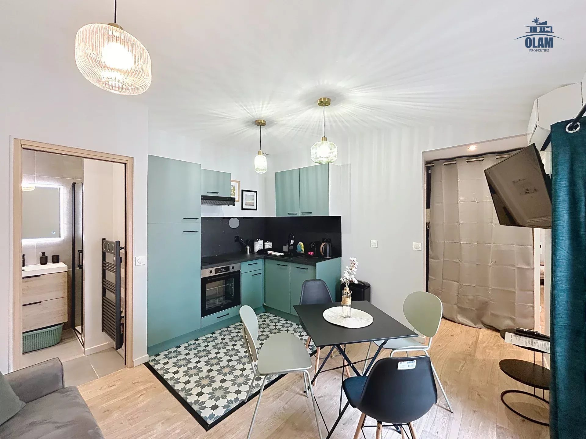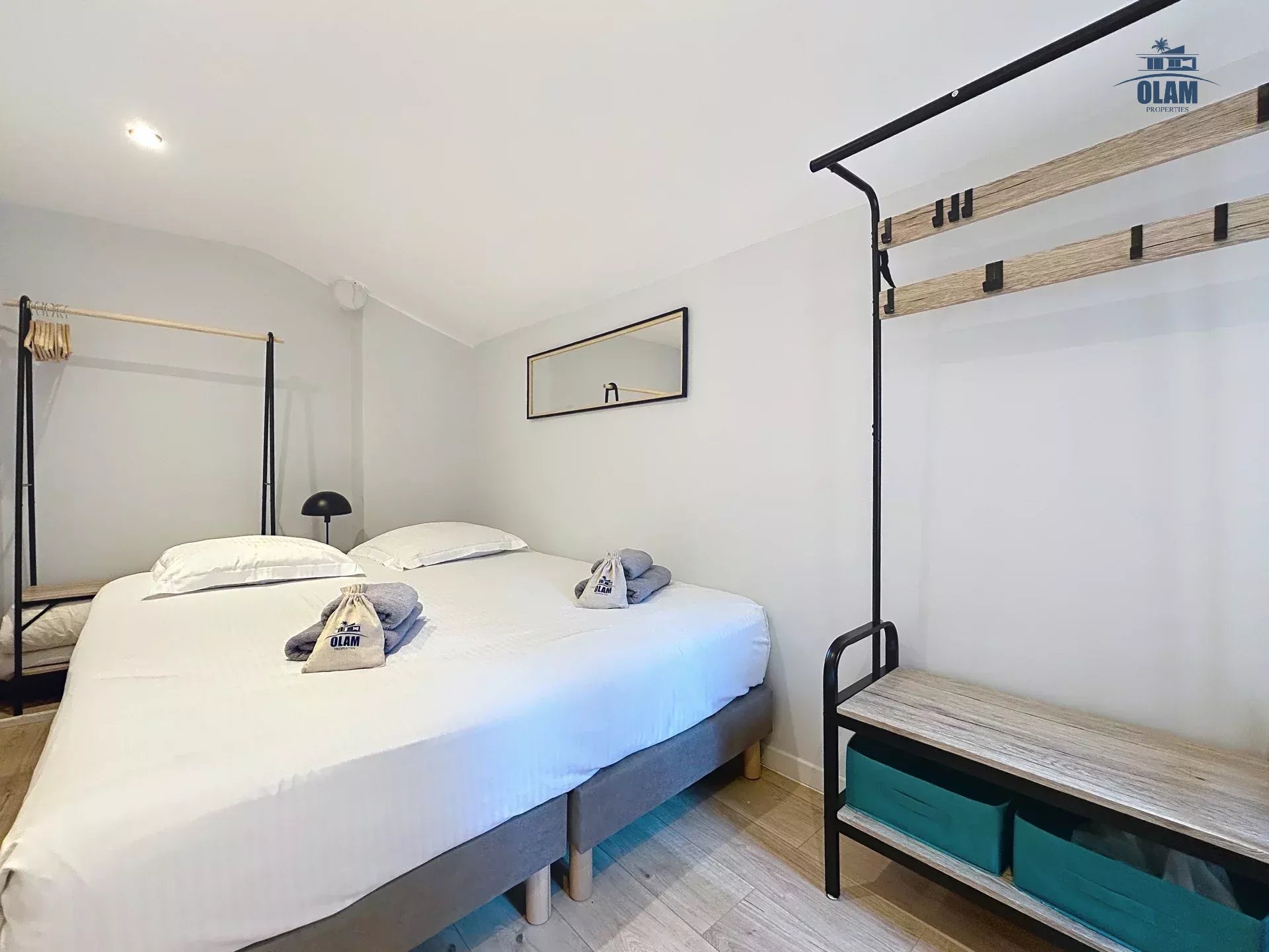 Charmant appartement de 30 m² comprenant une chambre (avec télévision), un salon avec canapé-lit double, une cuisine américaine entièrement équipée (four, micro-ondes, etc.), des toilettes et une salle de bains. Internet Wi-Fi. L'appartement est situé dans une petite rue, à proximité de toutes commodités (supermarché, pharmacie, boulangerie, etc.), au 3e étage sans ascenseur. À seulement 1 minute à pied du boulevard de la Croisette.