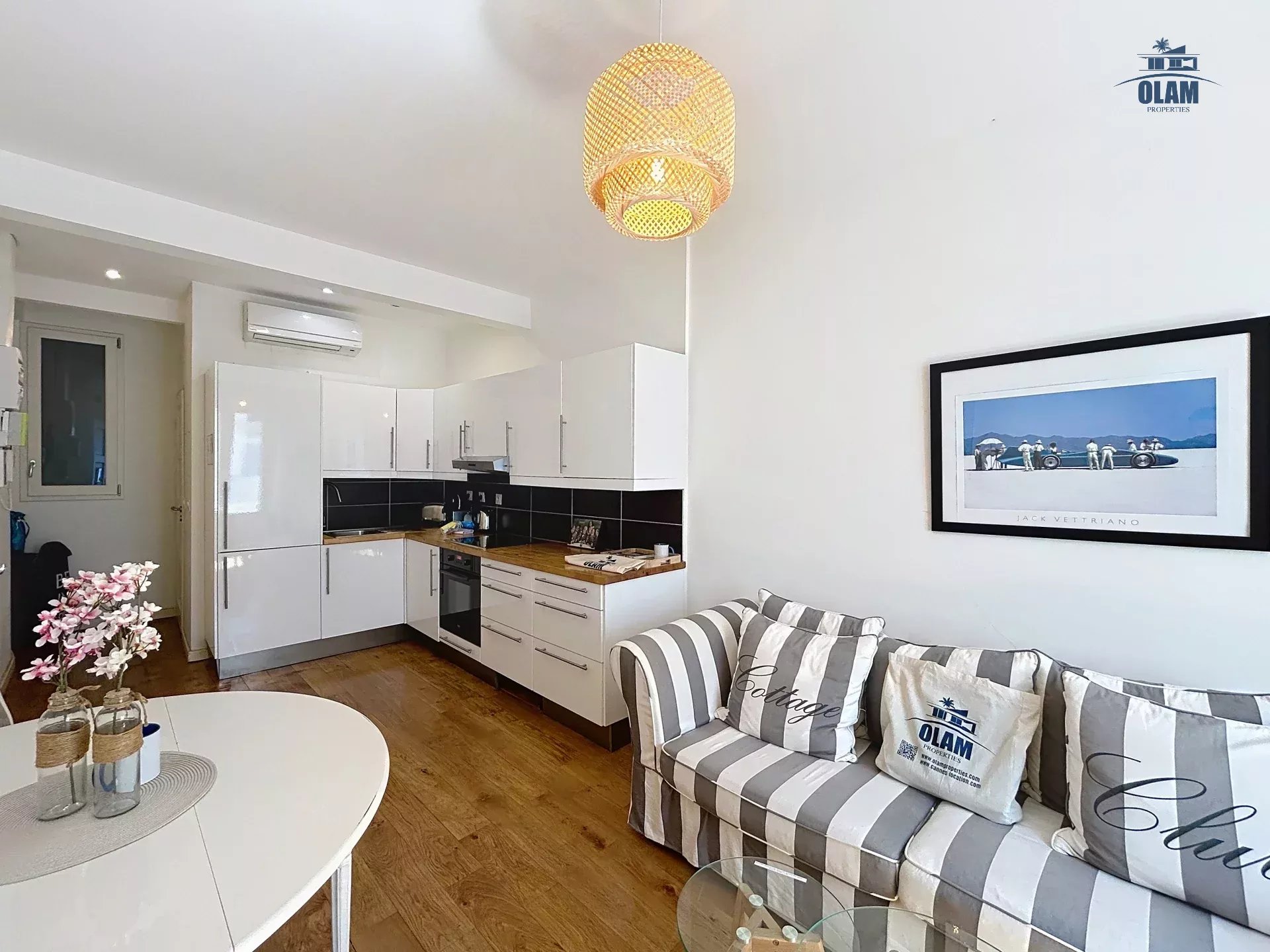 Ce joli 2 pièces de35 m² entièrement climatisé avec wifi saura vous séduire par sa décoration contemporaine et sa cuisine américaine ouverte sur le séjour, totalement équipée et fonctionnelle.