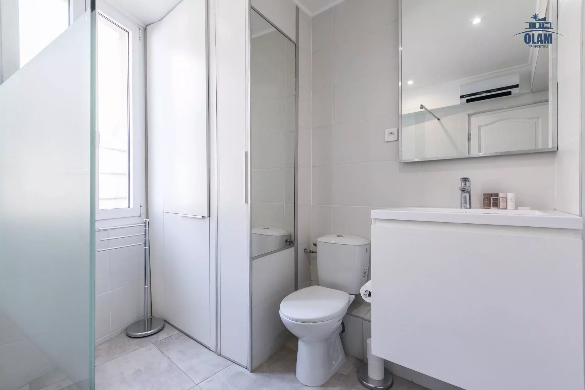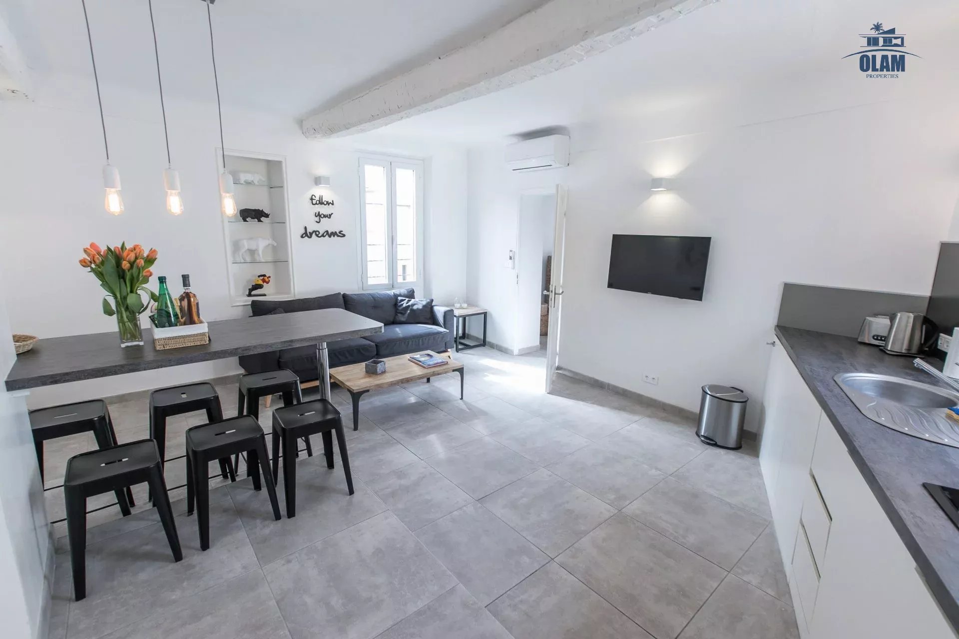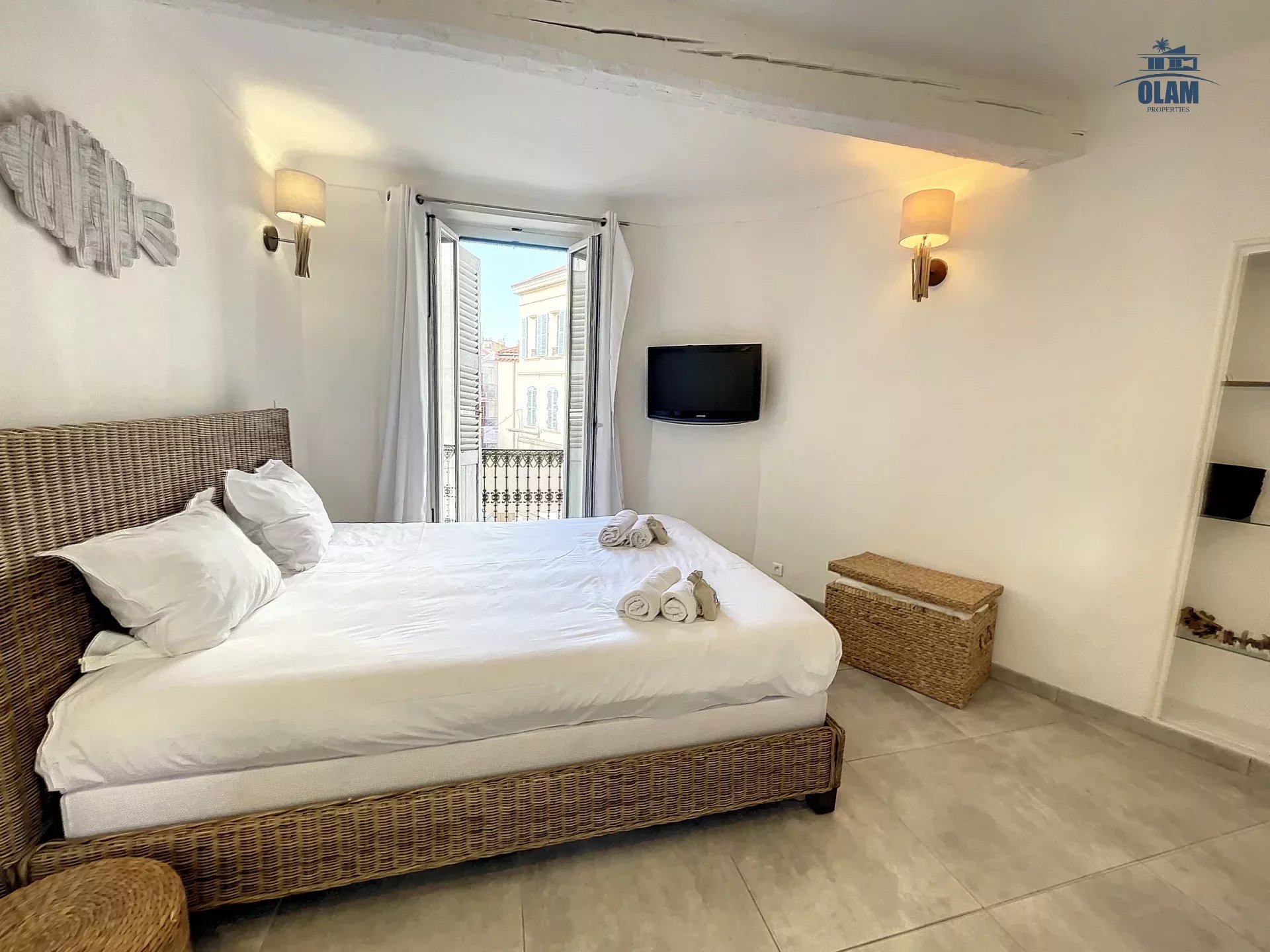 Très grand 2 pièces récemment rénové avec petit balcon à 1 mn à pied du Palais des Festivals et de la célèbre rue piétonne Meynadier (tous commerces, boulangerie, supermarché,... à moins de 2 mns), Pièce à vivre avec TV LCD , plan snack et grande cuisine US toute équipée