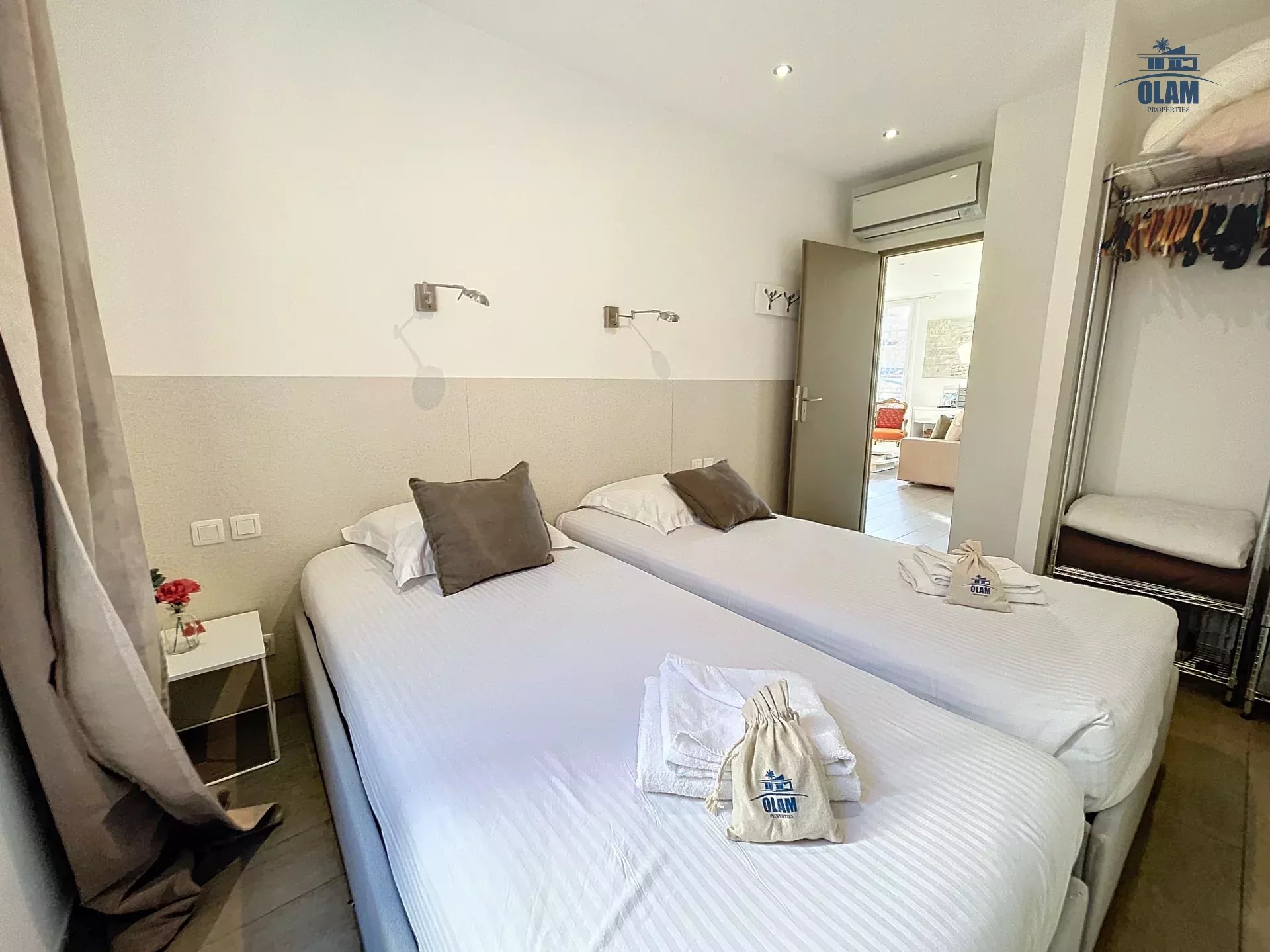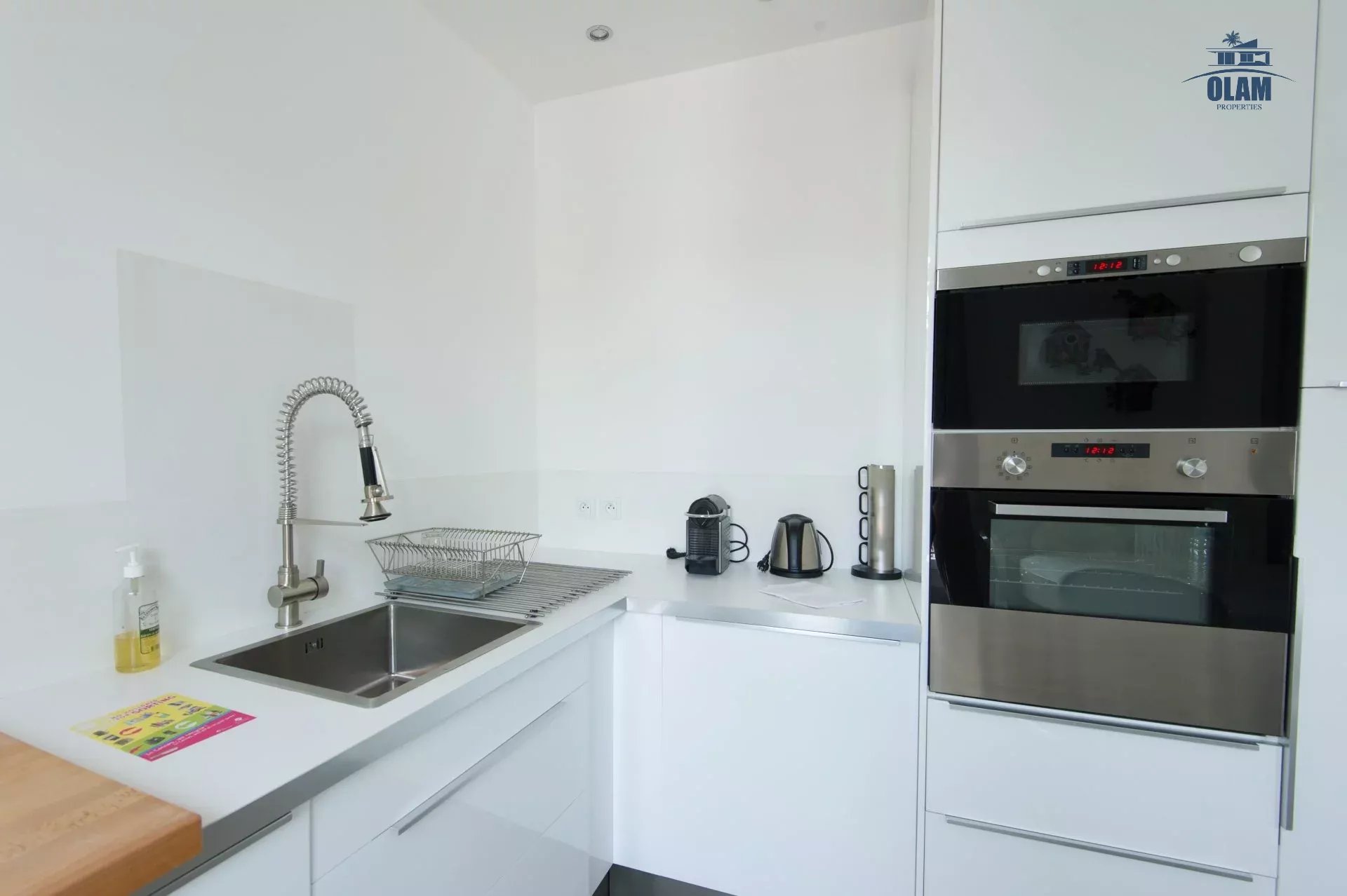L'appartement est composé d'une vaste pièce principale équipée d'un canapé-lit 2 places avec literie haut de gamme Bultex 160x200, d’un grand Téléviseur LCD avec toutes les chaînes internationales et d'une cuisine équipée américaine ouverte sur le séjour.