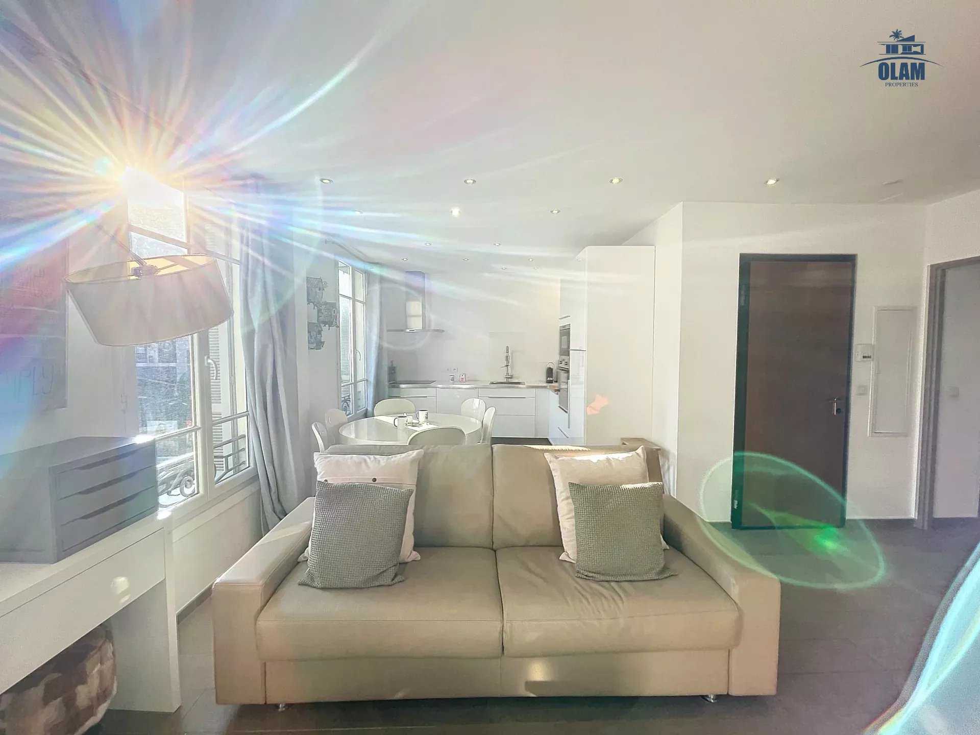 Beau 3 pièces d’environ 60m2 entièrement refait dans un style contemporain, moderne, sobre et raffiné. Il offre des prestations haut de gamme.