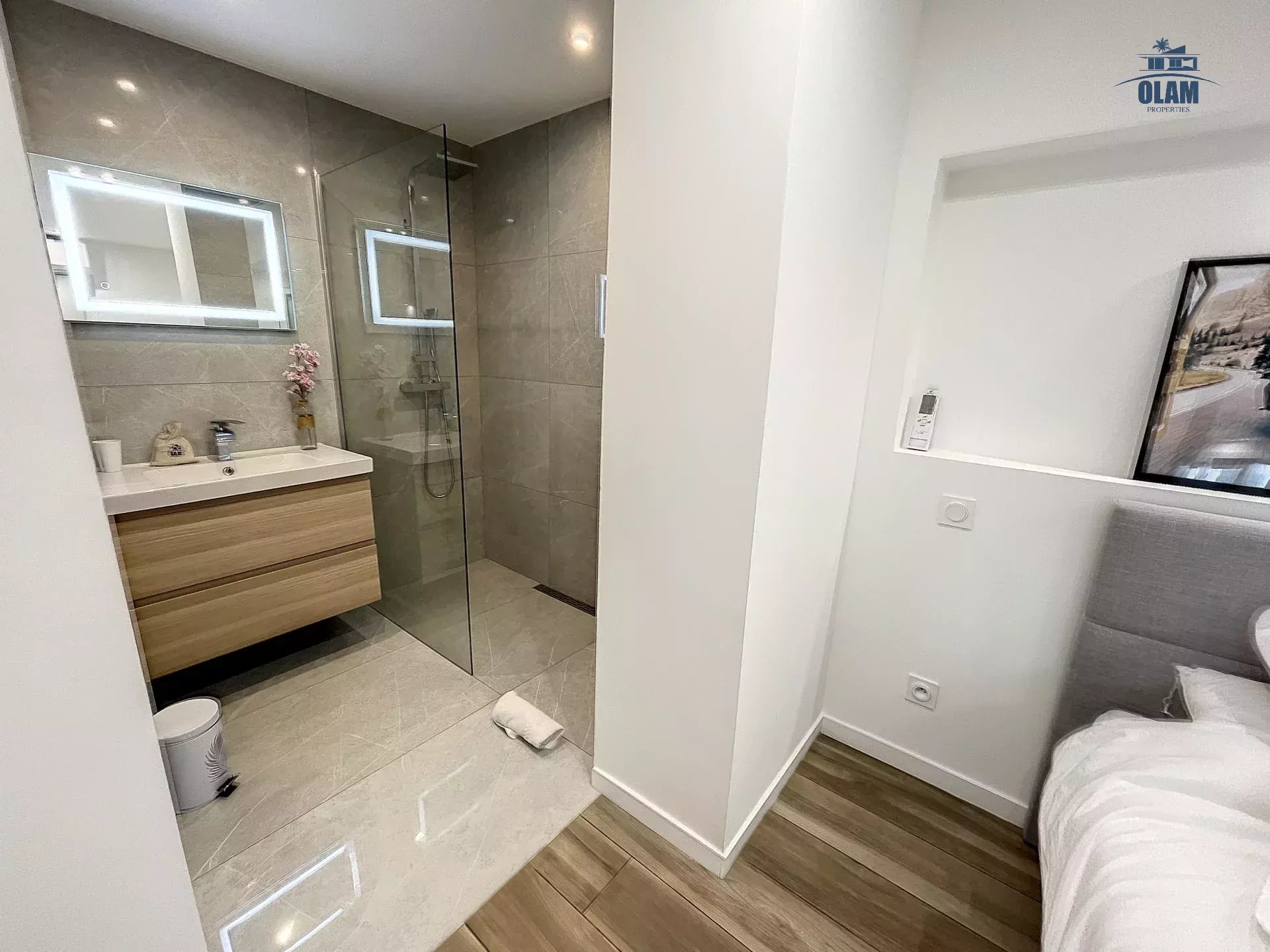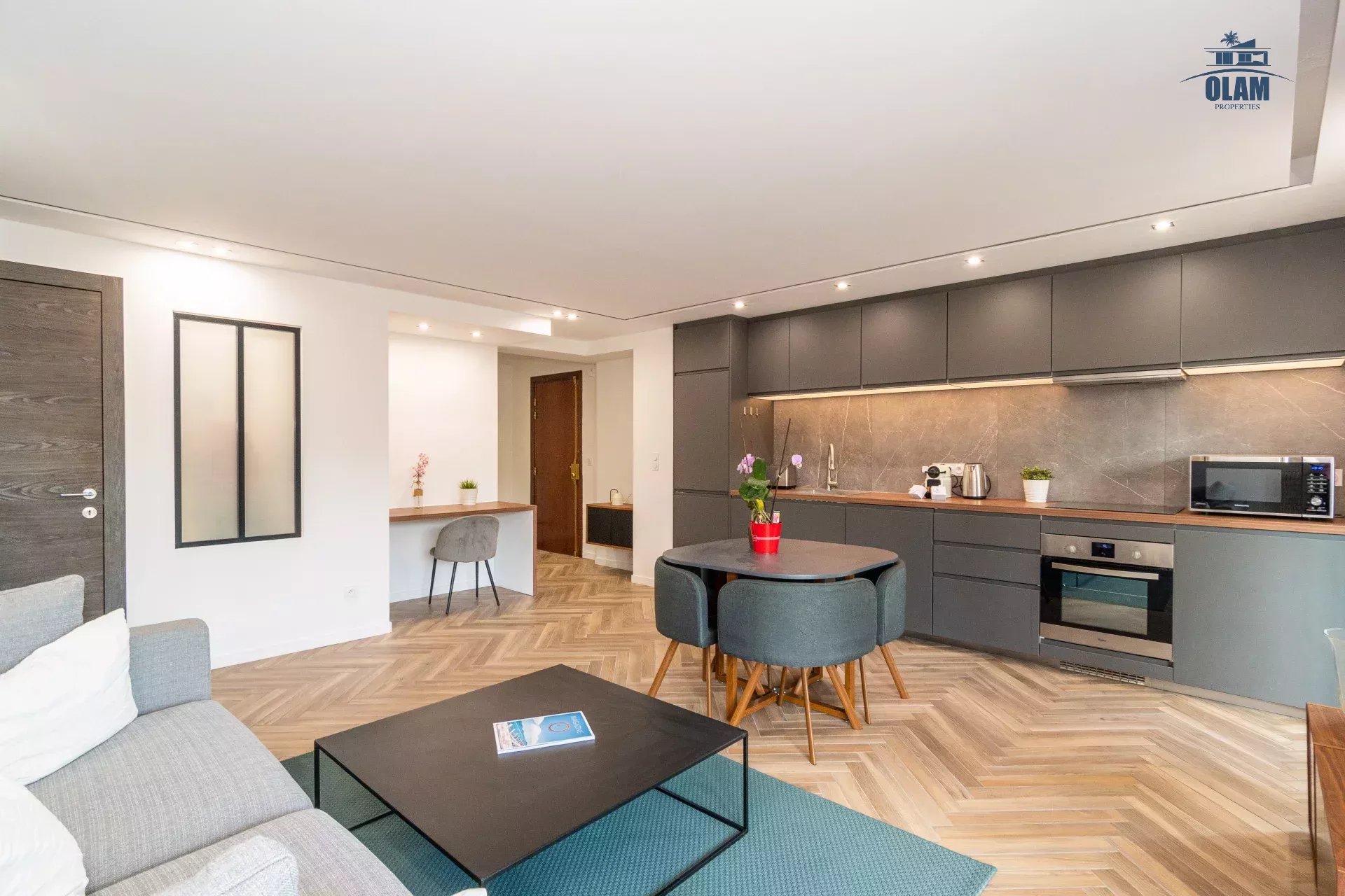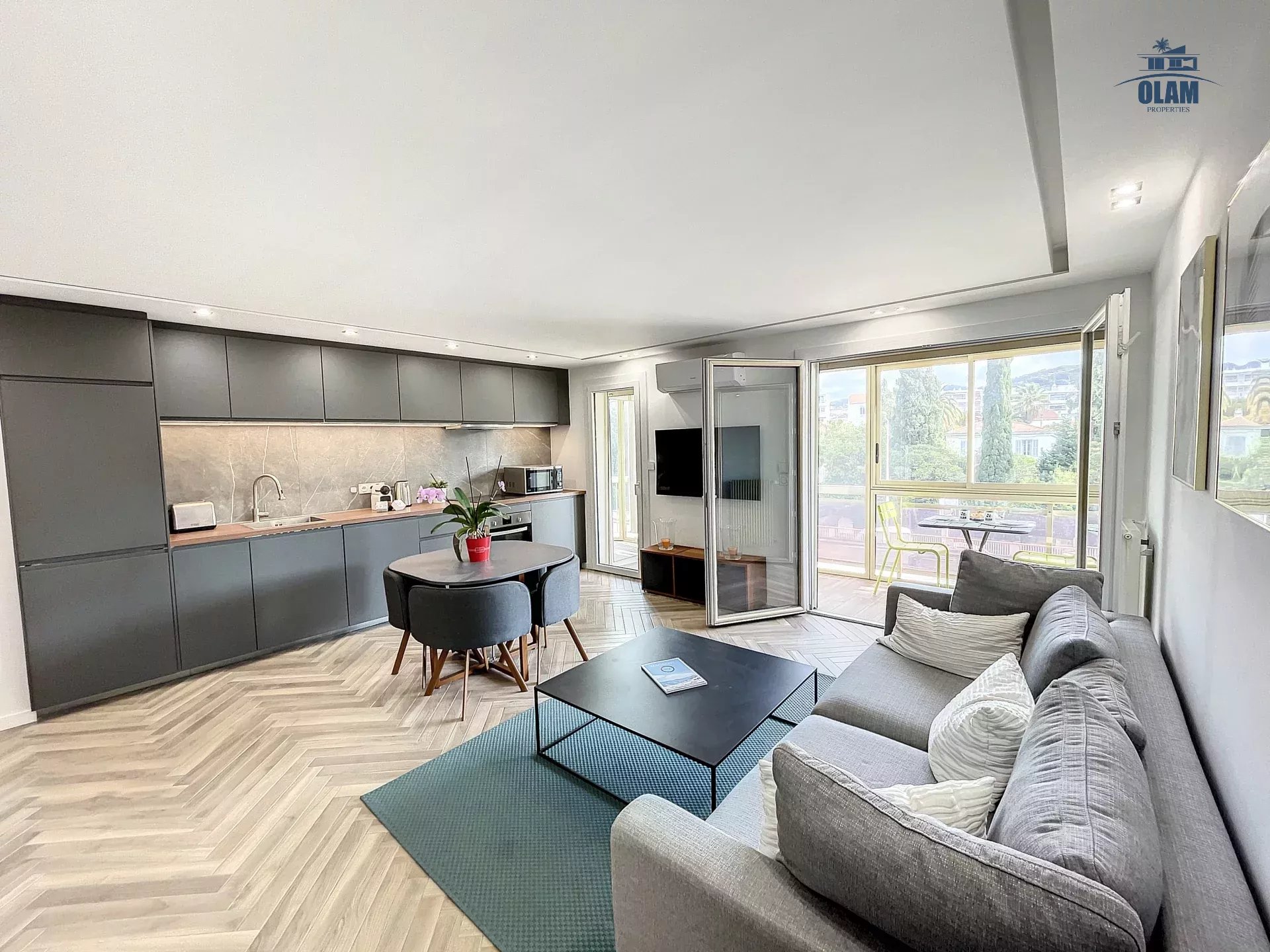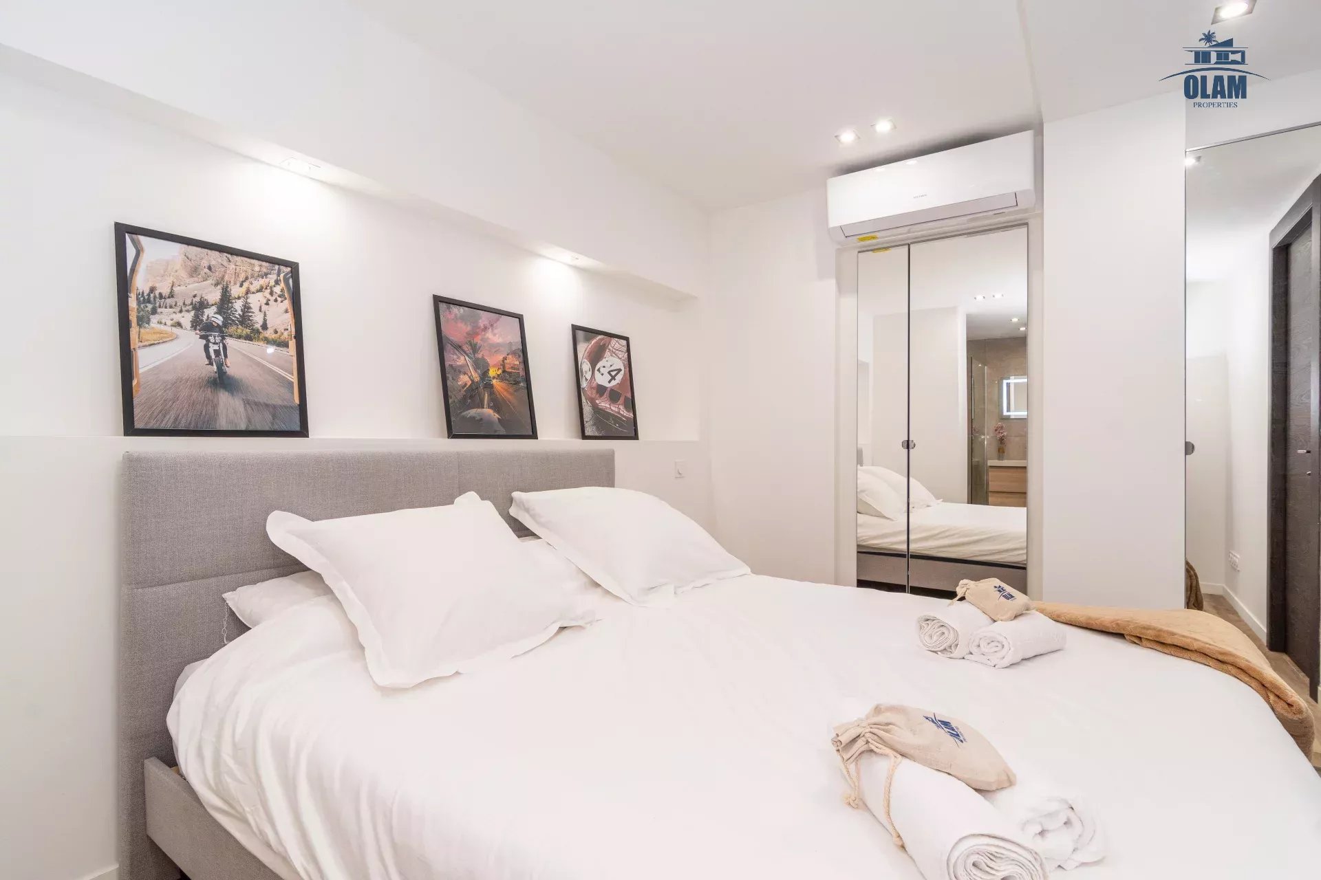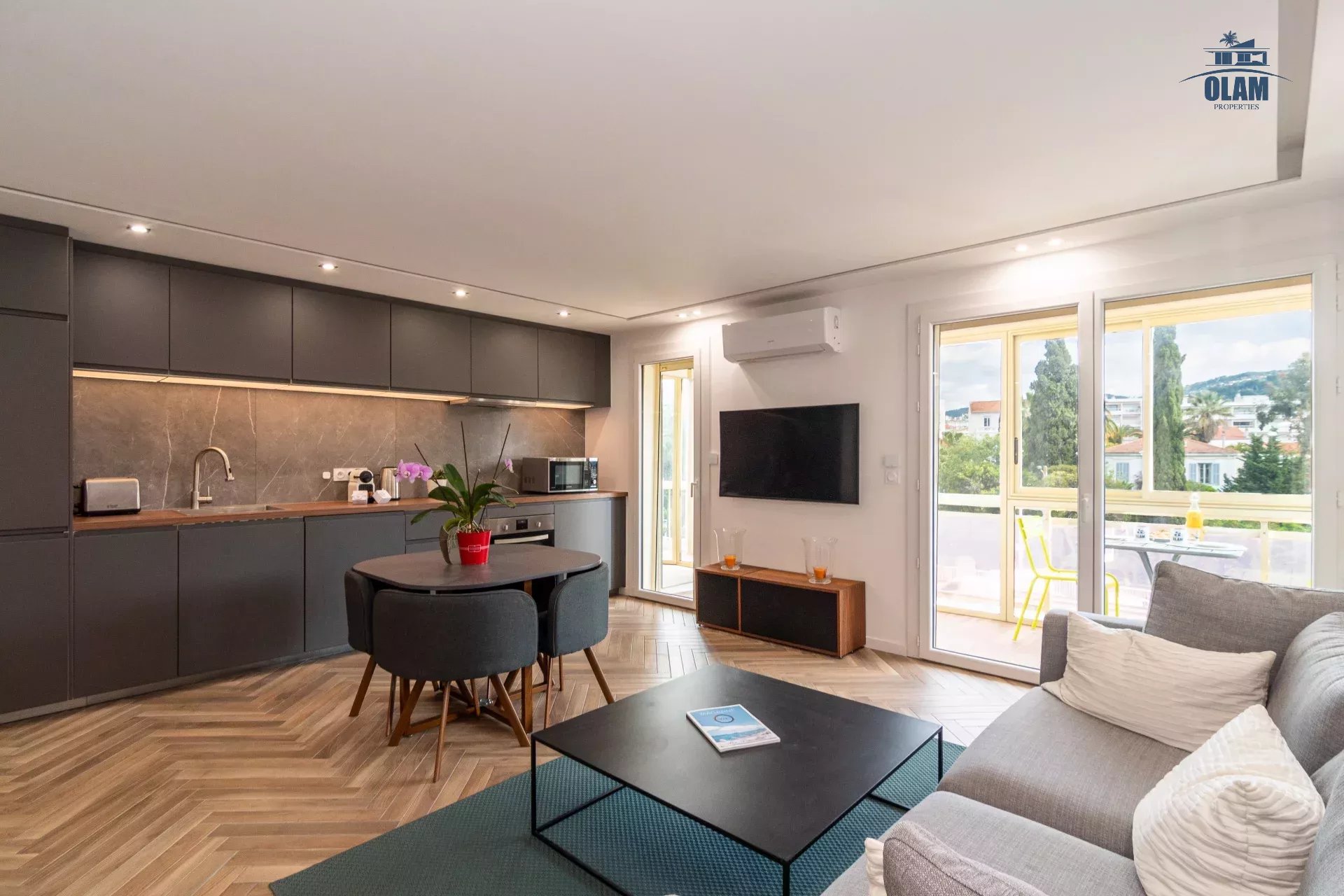 Au coeur du centre ville de Cannes, Olam Properties vous accueille dans ce superbe appartement 2 chambres 2 salles de bains rénové avec goût en 2022.
