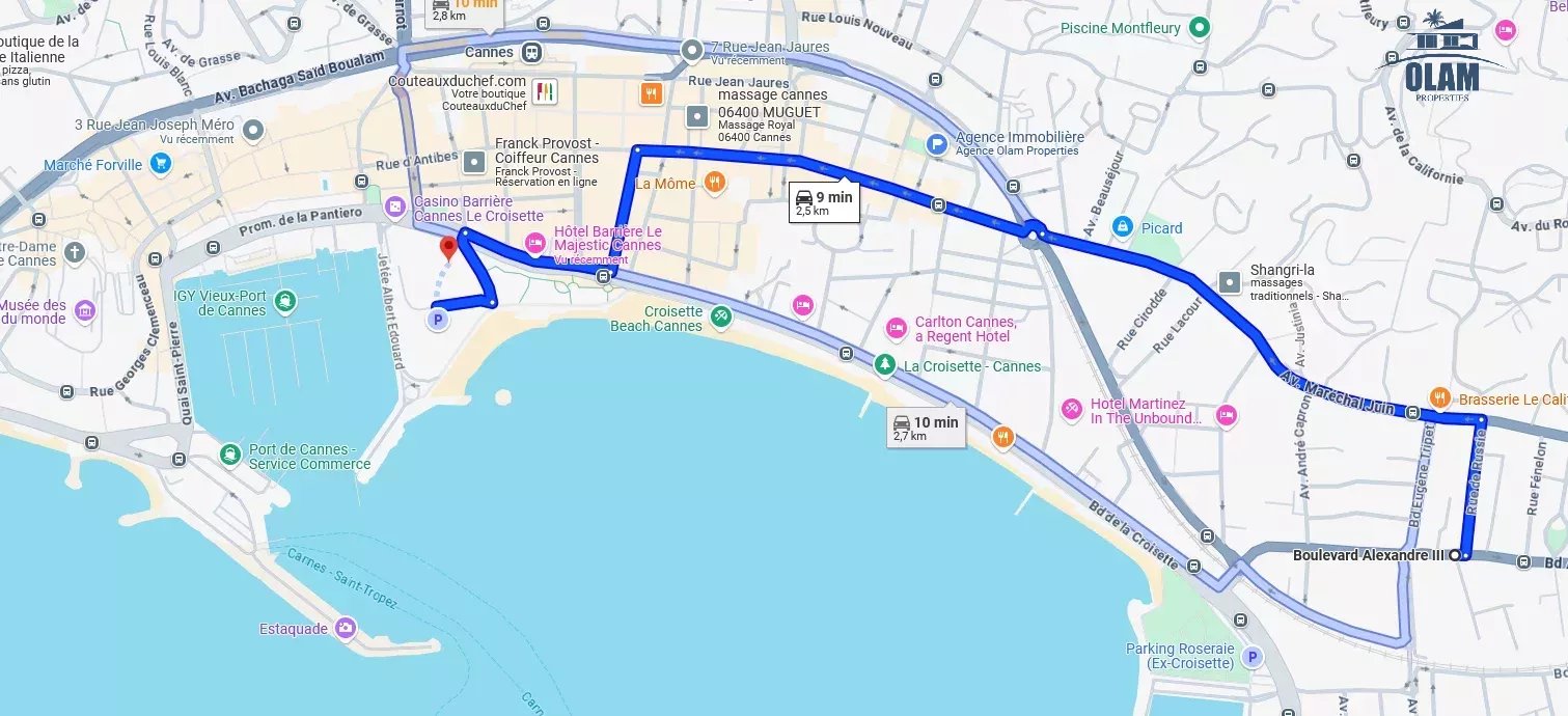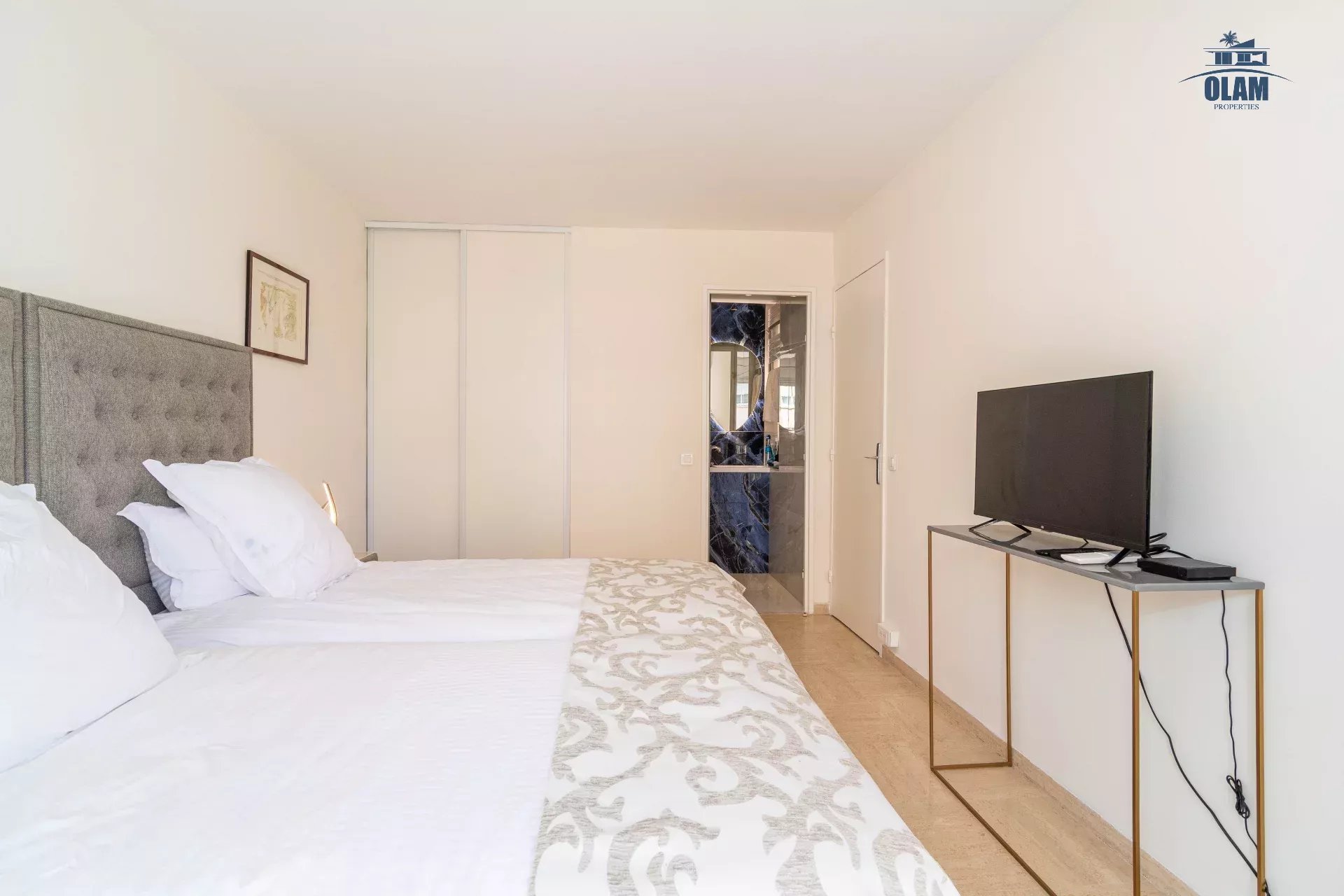 Superbe et vaste (93 m2) logement 2 chambres 2 salles de bains secteur Pointe Croisette. Appartement avec splendide pièce à vivre, grande terrasse vue mer aménagée, décoration standing, et prestations haut de gamme. Cuisine dinatoire indépendante parfaitement équipée. L'appartement dispose de tout le confort attendu d'un appartement Olam Properties. Toute notre équipe sera à votre écoute pour vous faire passer le meilleur séjour possible à Cannes et sur la Côte d'Azur