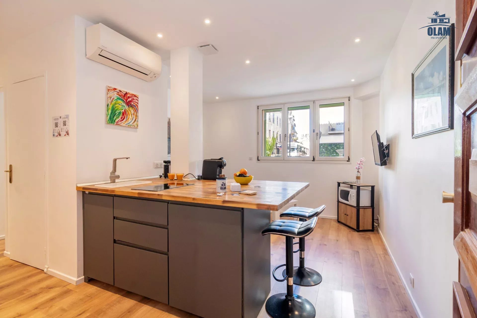 A 1 minute du célèbre marché Forville, et à 3 - 4 minutes du Palais des Festivals et des congrès, Olam Properties est heureux de vous présenter cet exclusif et splendide appartement situé sur le vieux Port (Quai Saint Pierre) et au calme, moderne et rénové en 2023.