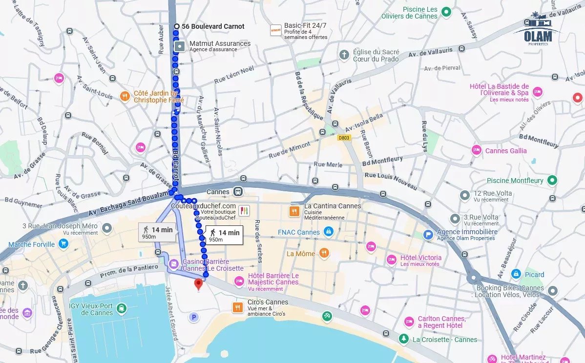 Vous profiterez d'un accès facile à la célèbre Croisette et sa longue étendue de plages de sable fin et bien sûr le non moins célèbre Palais des Festivals et son tapis rouge.
