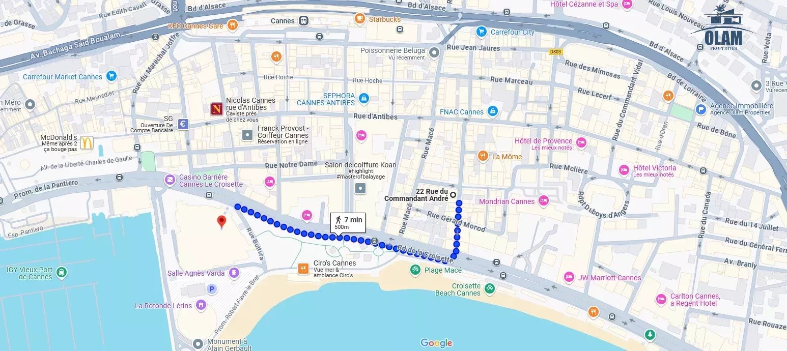Son emplacement central vous permettra de profiter pleinement de votre séjour à Cannes. La plage se trouve à vos pieds ainsi que les commerces, les restaurants et les bars.