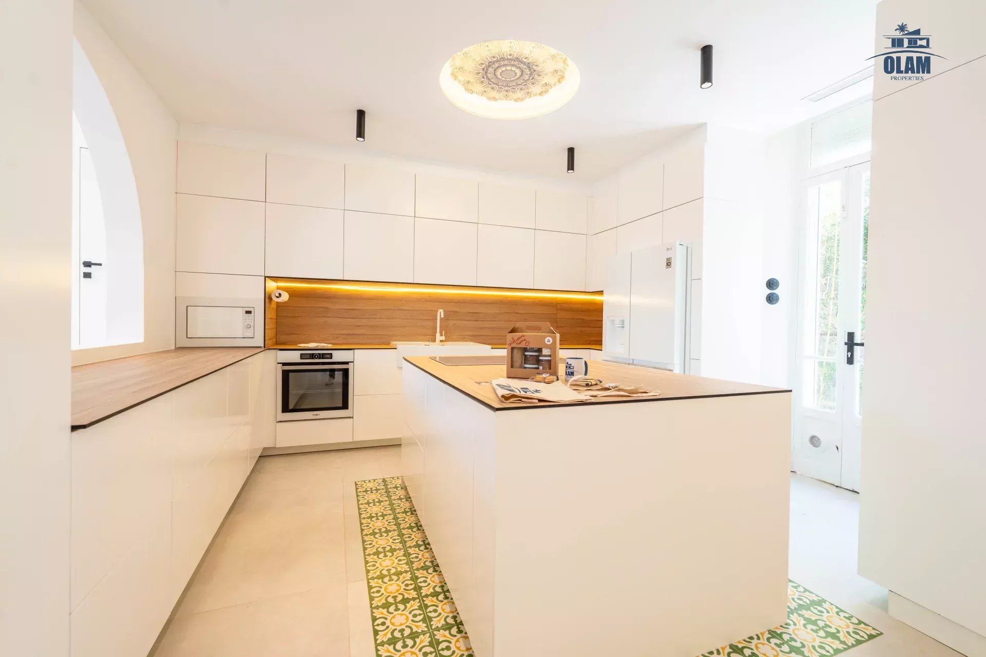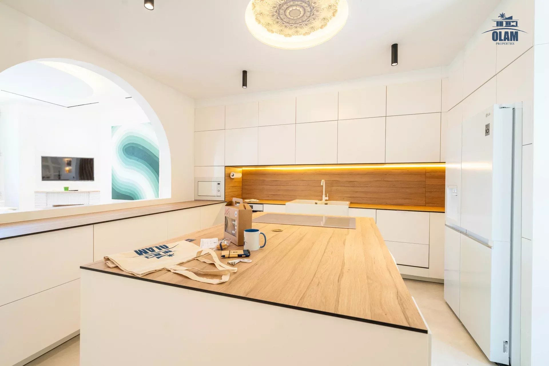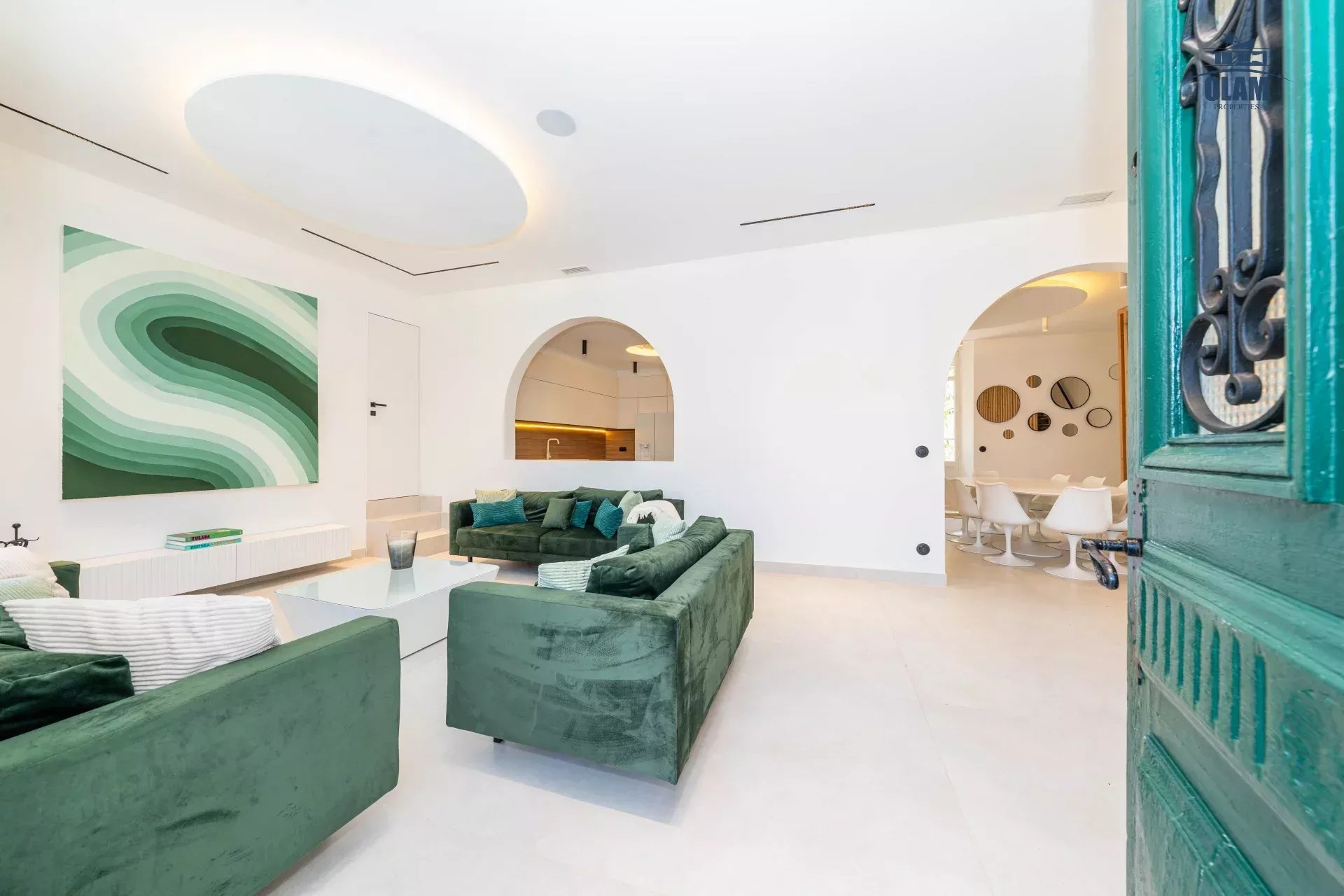 Dès l’entrée, vous serez séduit par une grande salle de réception, lumineuse et spacieuse, conçue pour recevoir en toute élégance. Ce vaste espace de vie s’ouvre harmonieusement sur l’extérieur, créant une atmosphère chaleureuse et aérée, idéale pour des moments de convivialité.