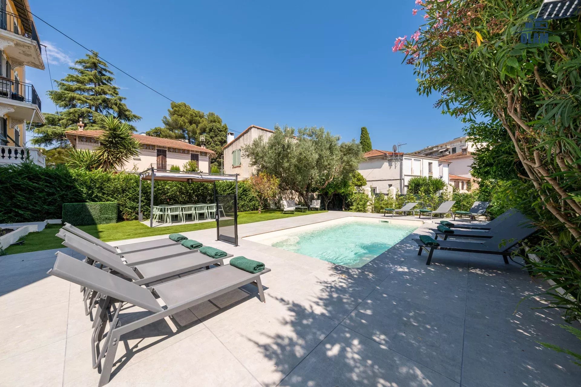 Le terrain de 500 m² offre un véritable havre de paix où l’on peut profiter du climat ensoleillé de la Côte d’Azur. Plusieurs espaces extérieurs ont été aménagés pour répondre à toutes vos envies :