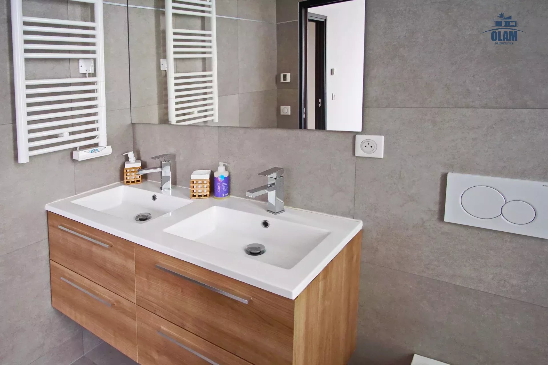 Il est composé de 2 chambres ayant chacune la possibilité de choisir (sur demande) 1 lit double ou 2 lits simples. Une des chambres dispose de sa salle de bain en suite (douche italienne, wc, sèche cheveux). 2e salle de bains privative disposant également d’une douche italienne, avec wc séparés.