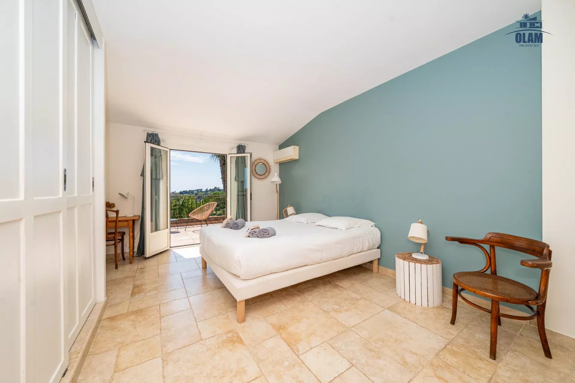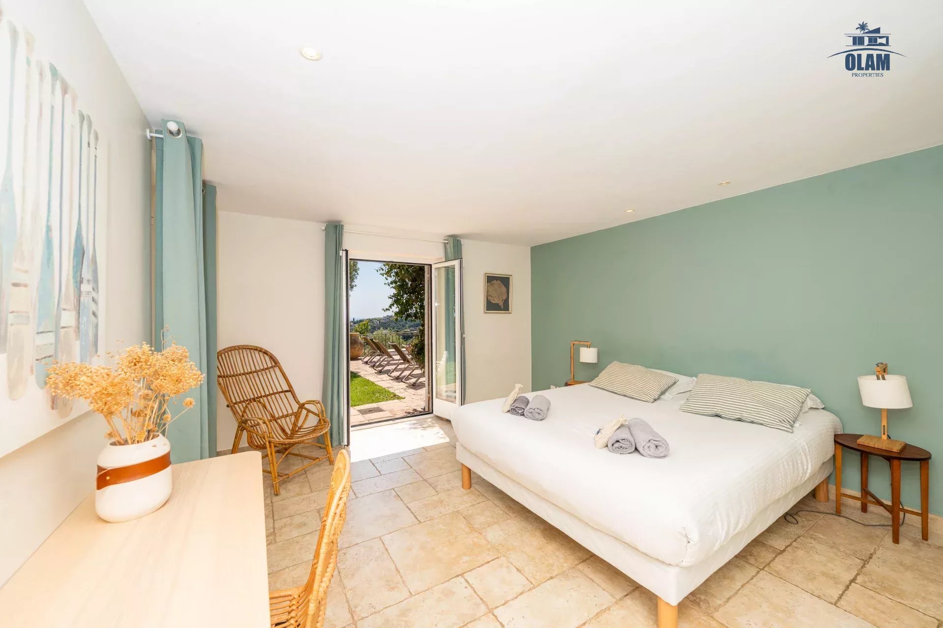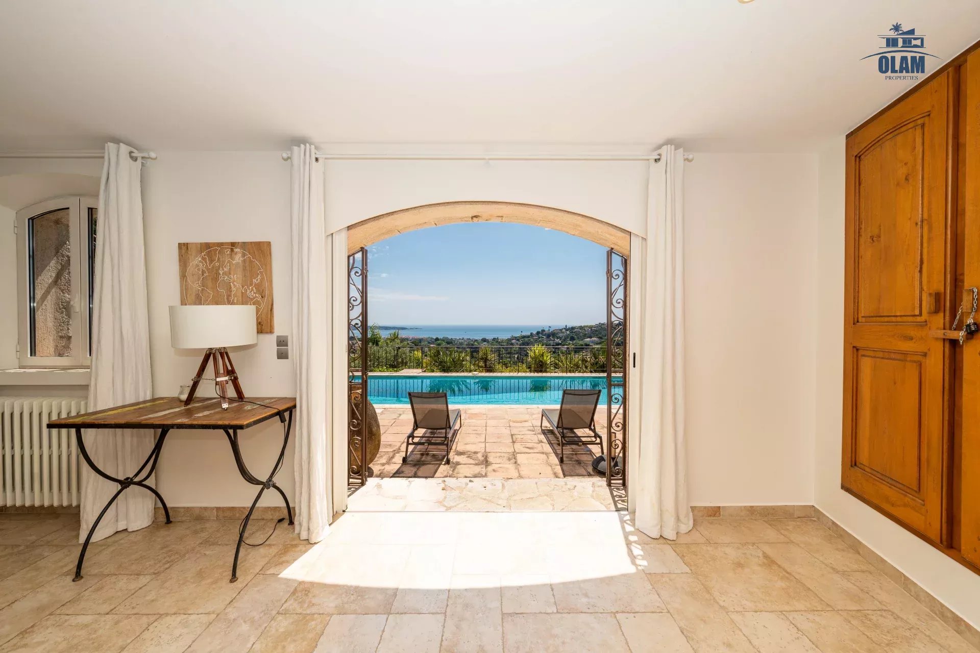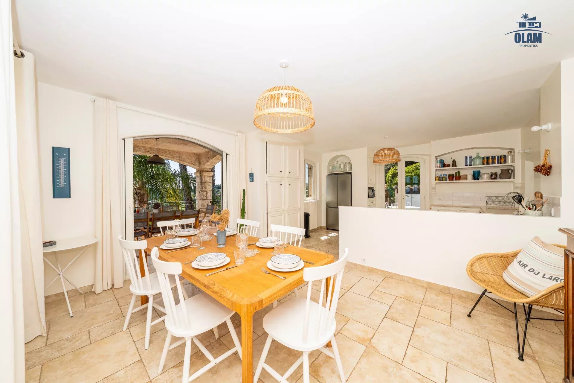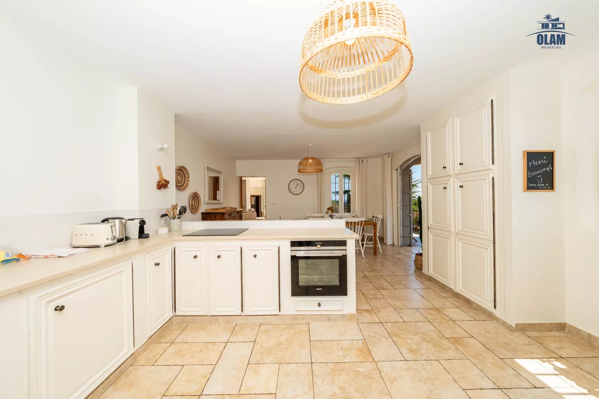 - Au rez-de-chaussée : un grand salon avec vue sur la mer, une grande cuisine toute équipée ouverte sur la salle à manger. Un hall d'entrée spacieux avec toilettes invités. Une grande chambre avec vue sur la baie d'antibes et ses 3 lits simples ou 1 grand lit puis sa salle de bain avec wc, douche et baignoire.