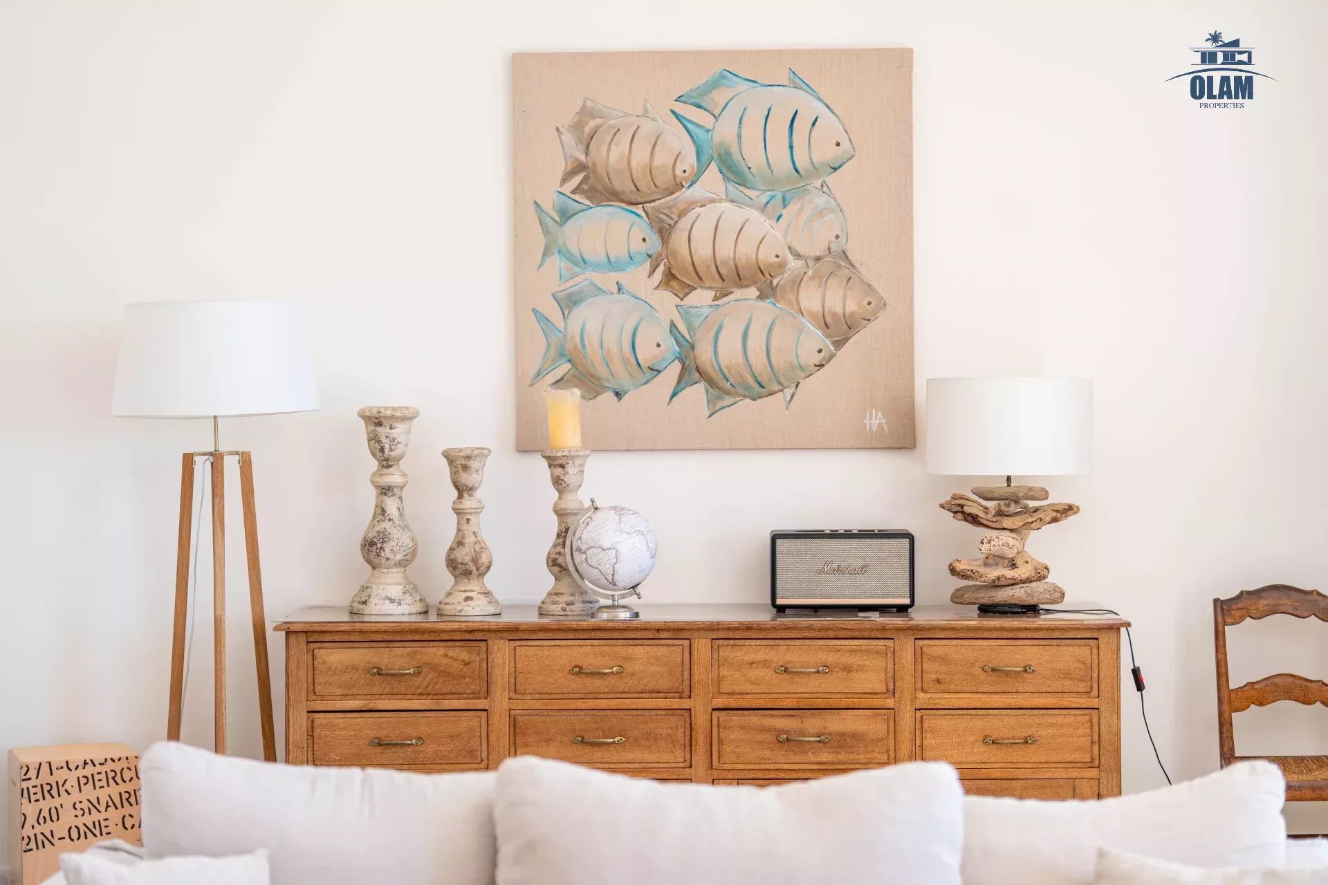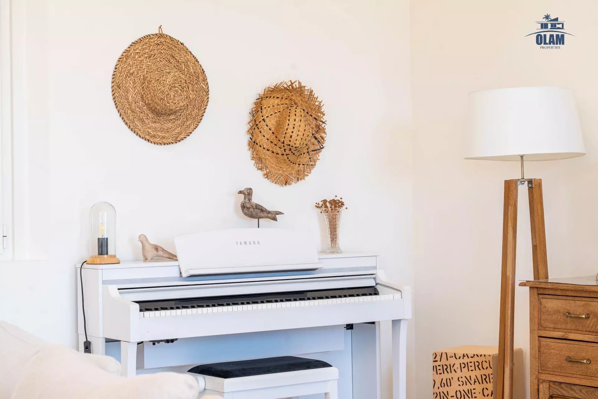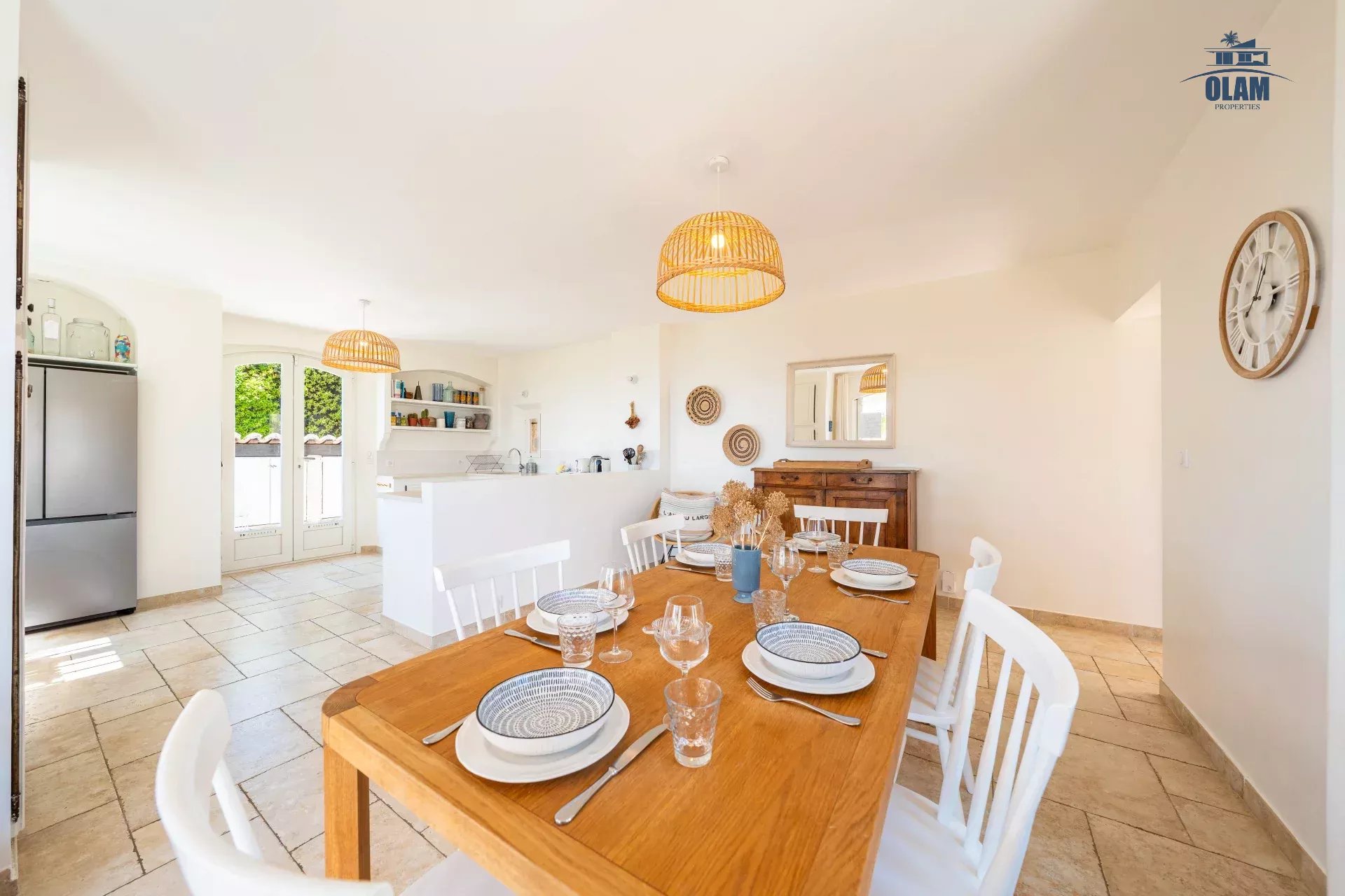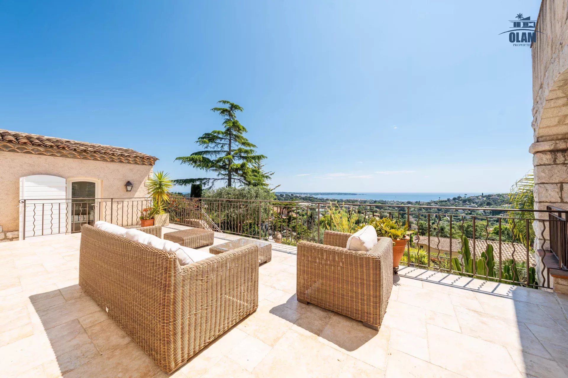 - Au rez-de-chaussée : un grand salon avec vue sur la mer, une grande cuisine toute équipée ouverte sur la salle à manger. Un hall d'entrée spacieux avec toilettes invités. Une grande chambre avec vue sur la baie d'antibes et ses 3 lits simples ou 1 grand lit puis sa salle de bain avec wc, douche et baignoire.