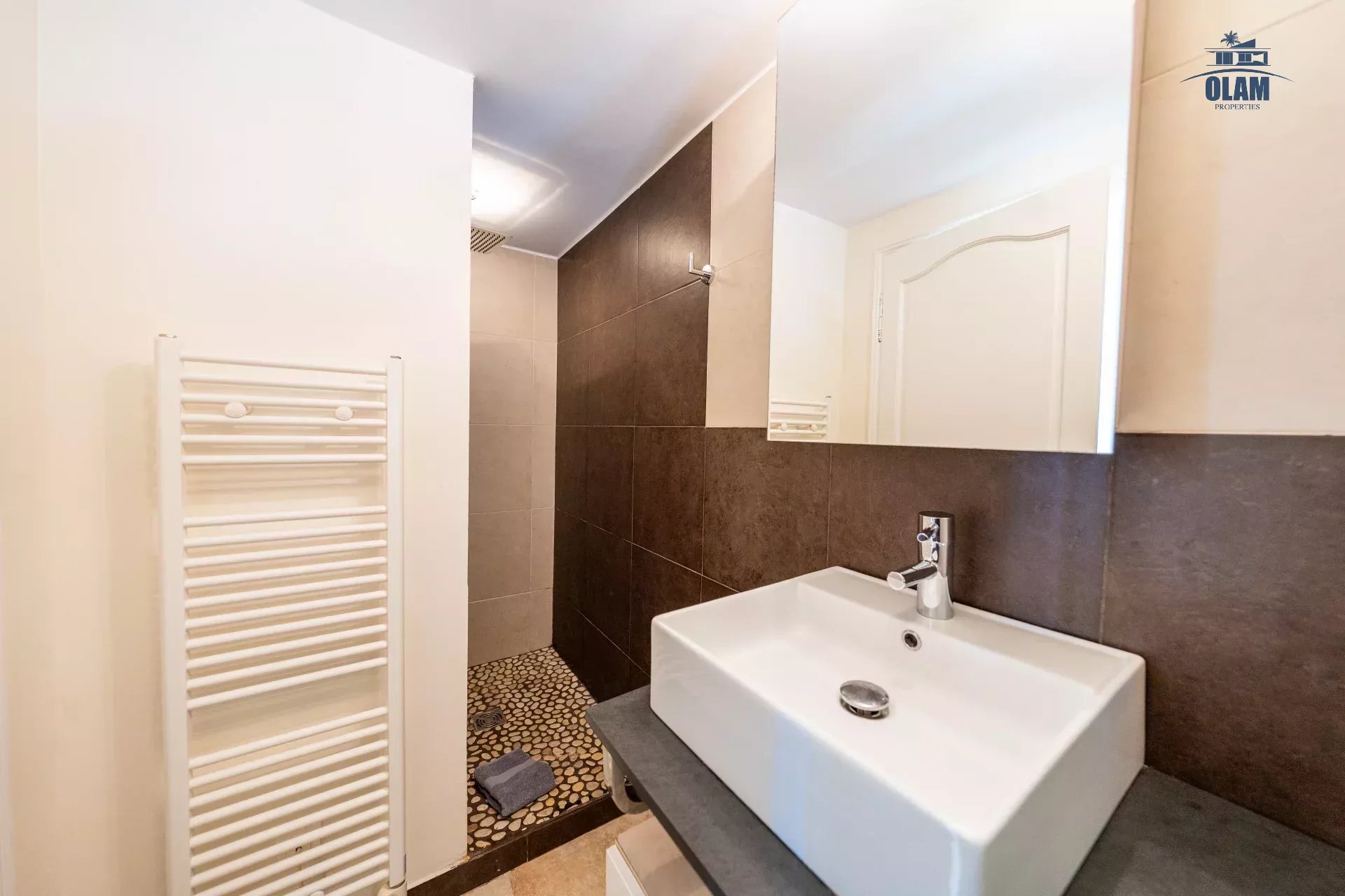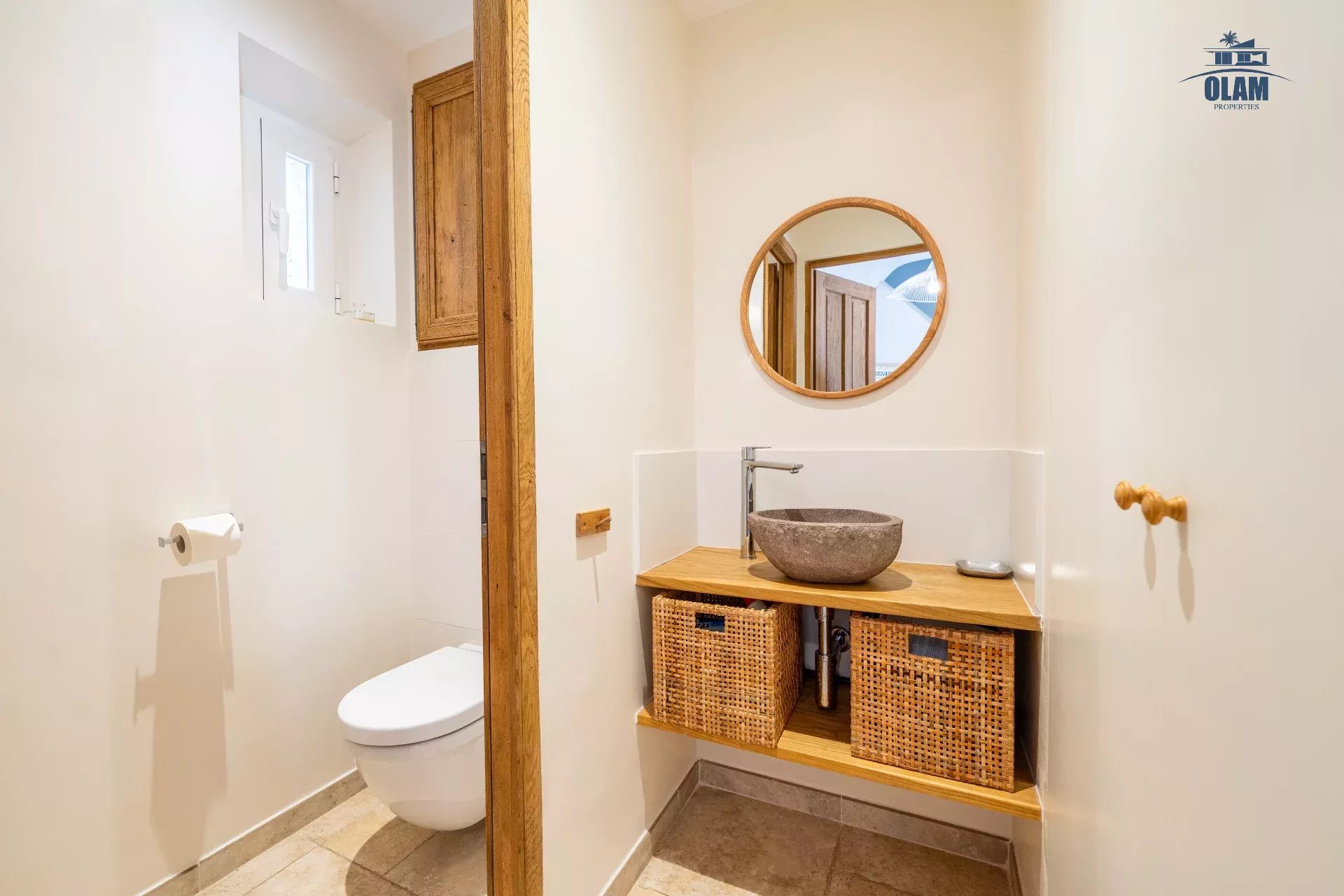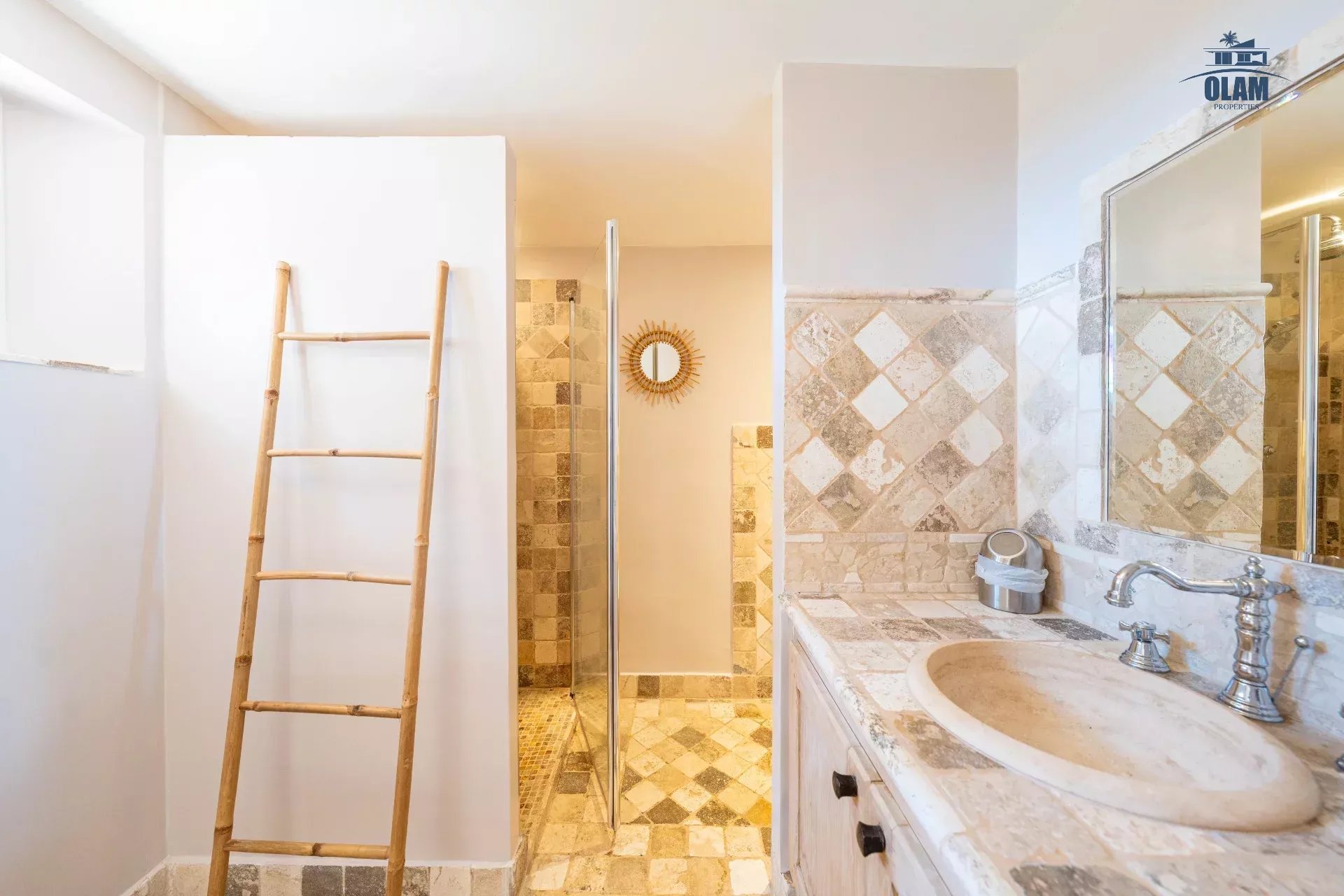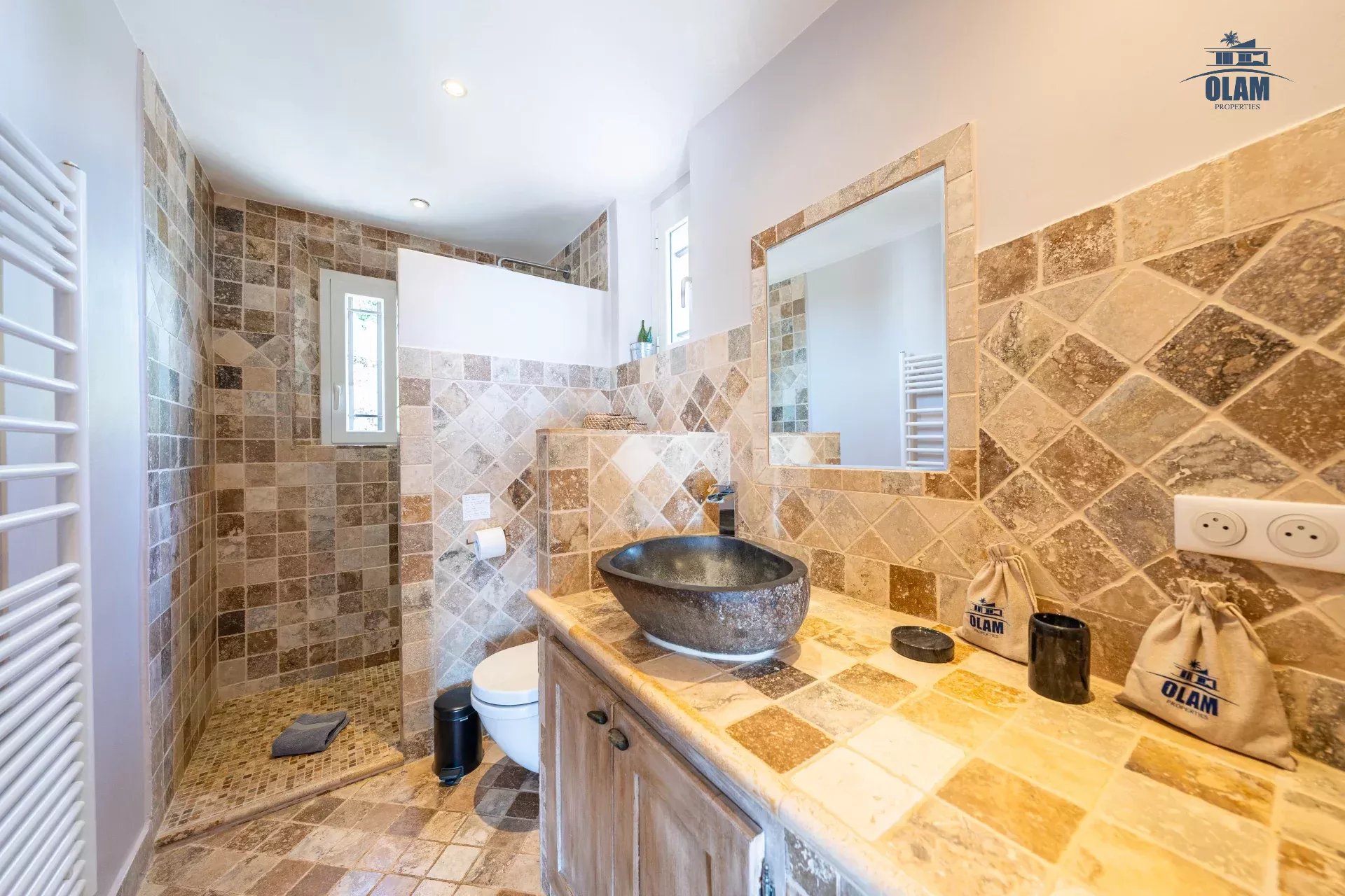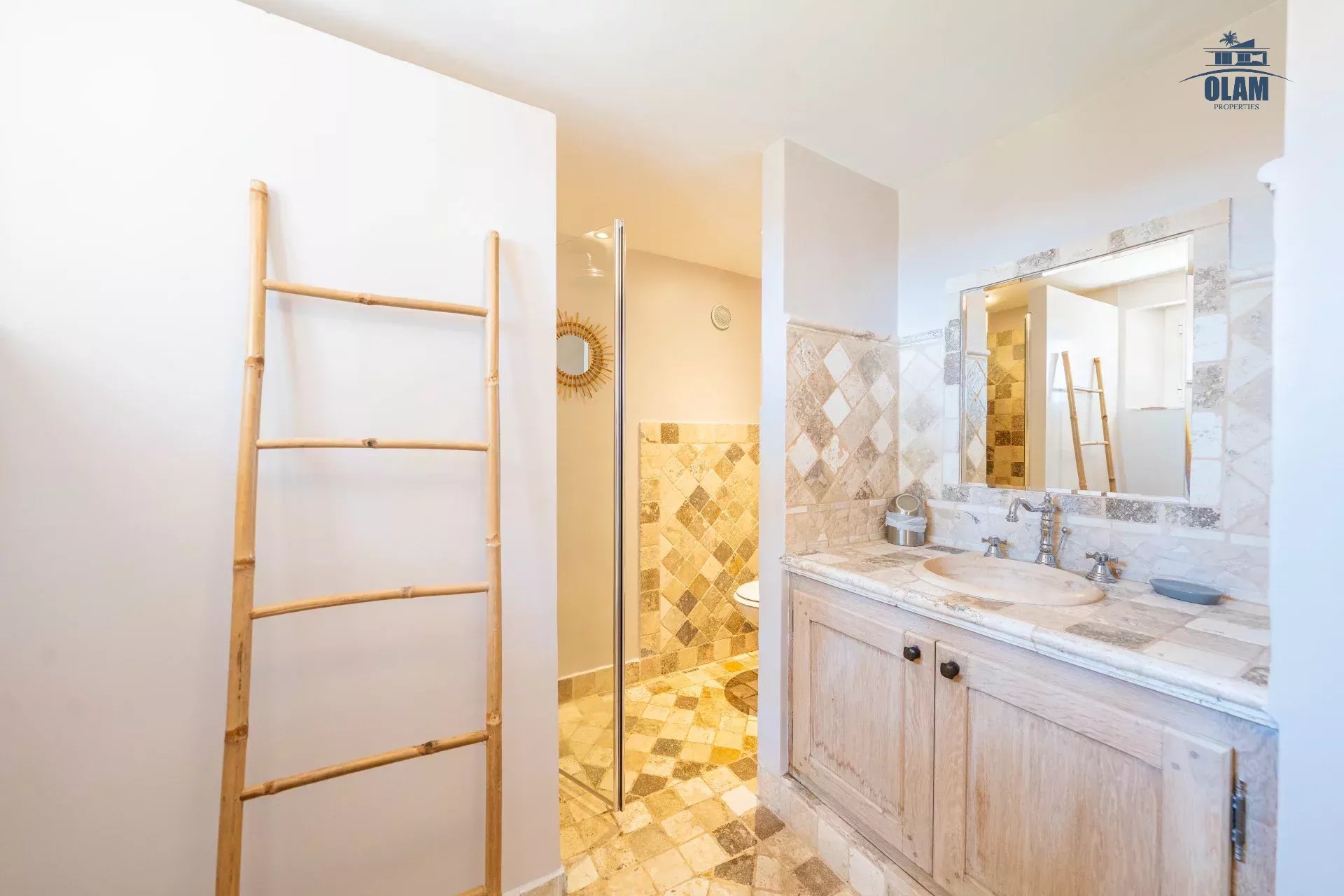 - Au premier étage : une suite parentale équipée de rangements avec sa salle de douche et wc puis une jolie terrasse avec vue sur la mer.