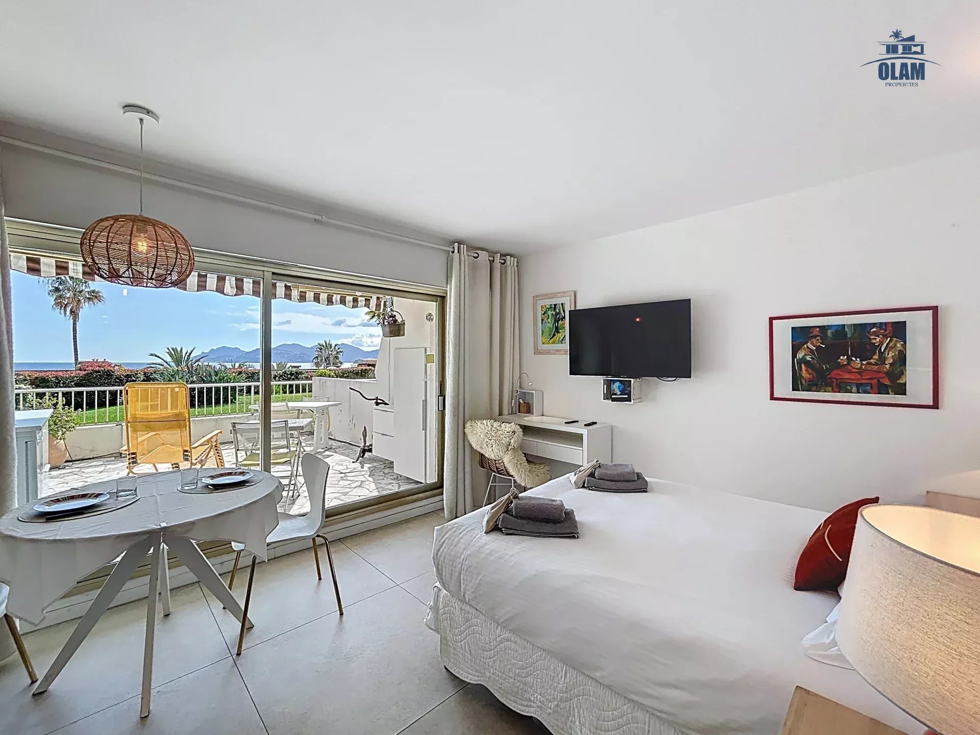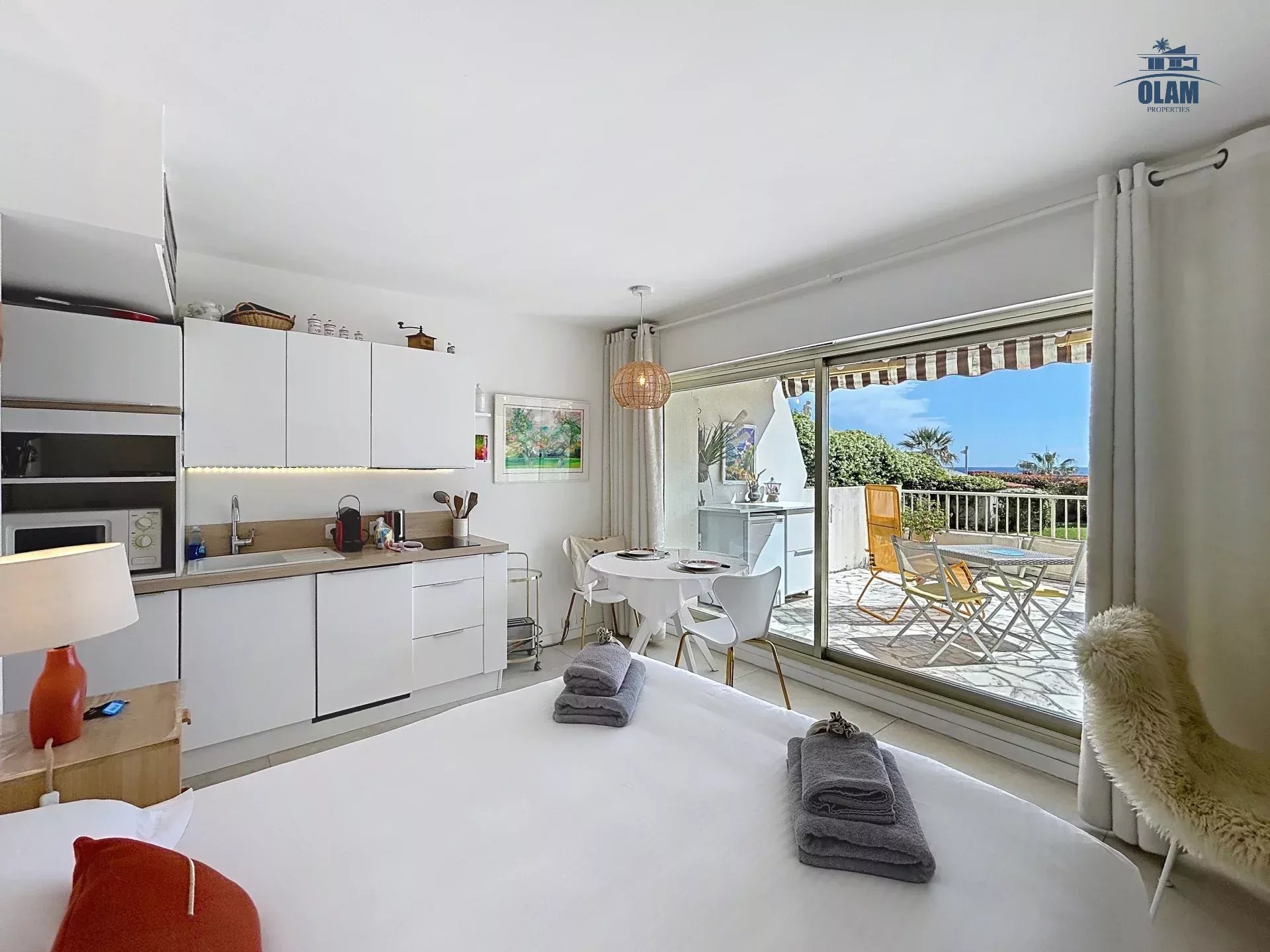 Terrasse face à la mer de 18m2. L'appartement est climatisé et équipé d'internet en wifi.