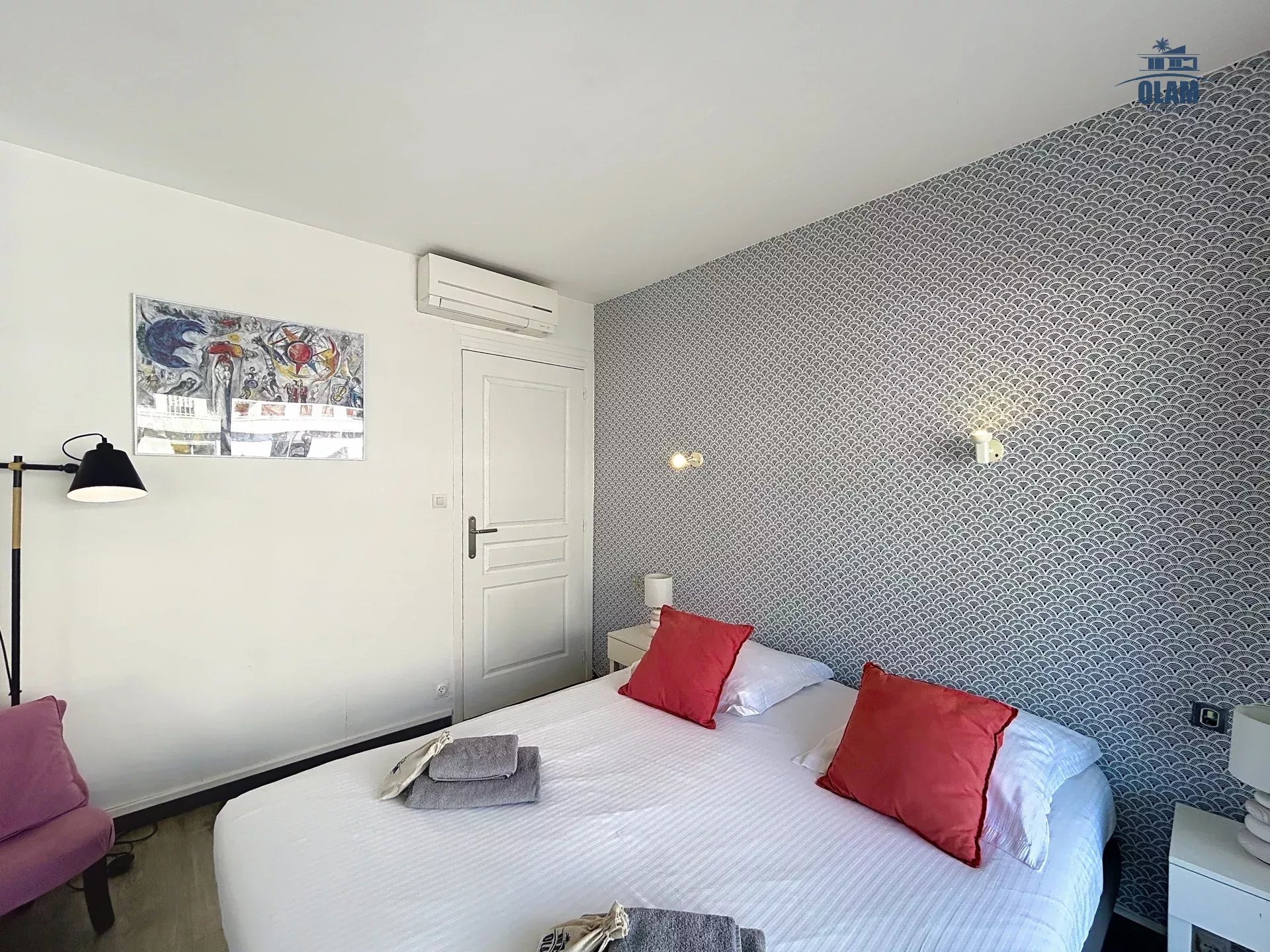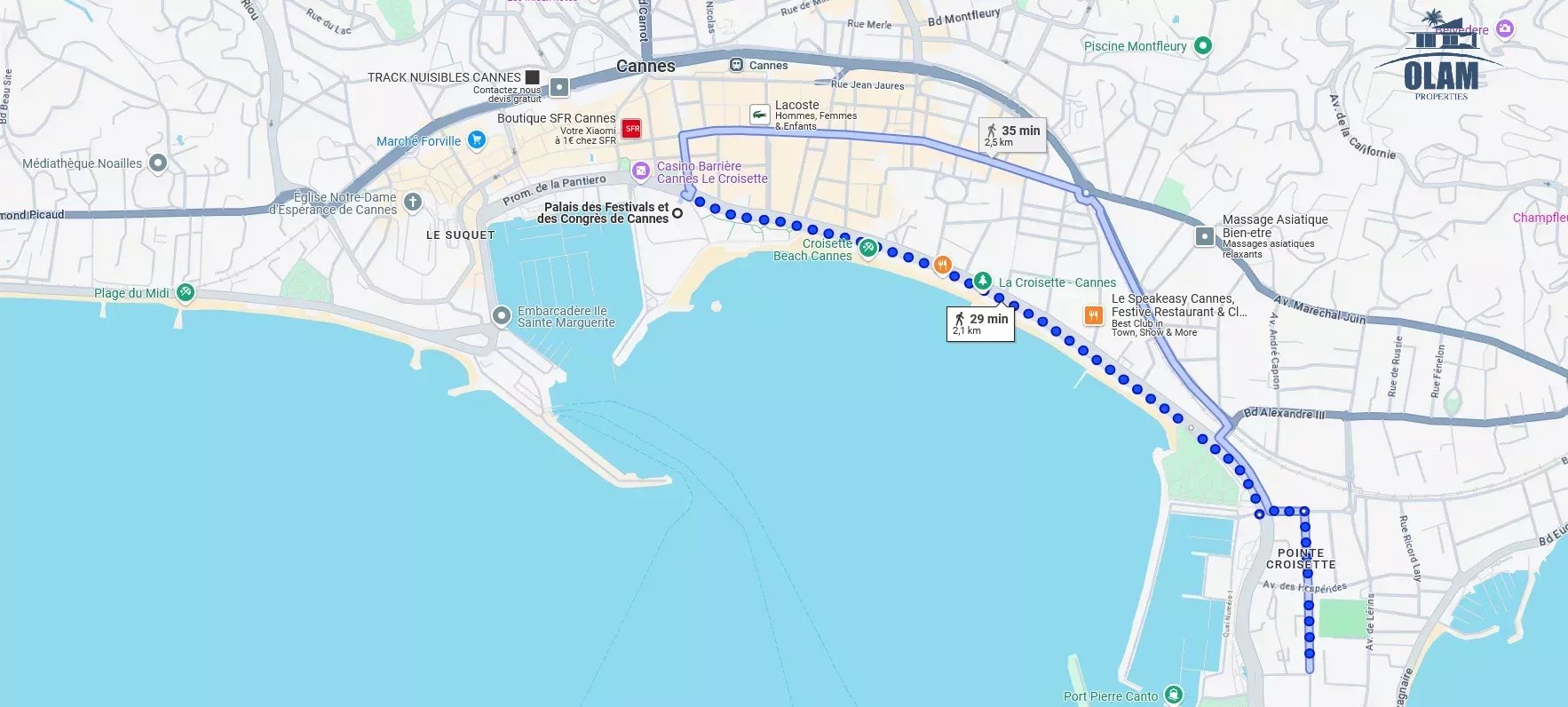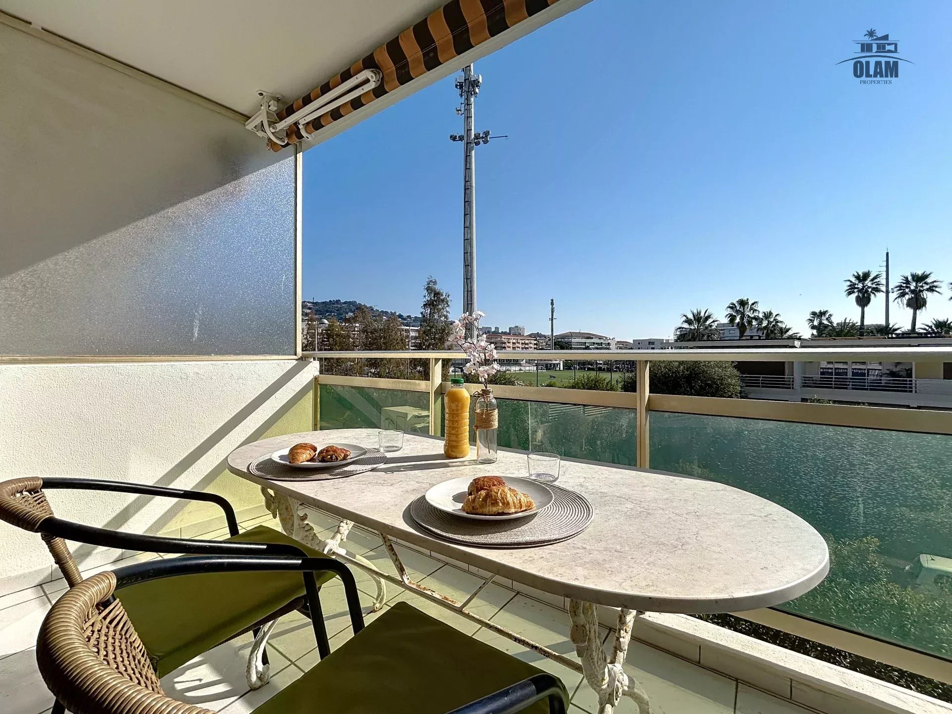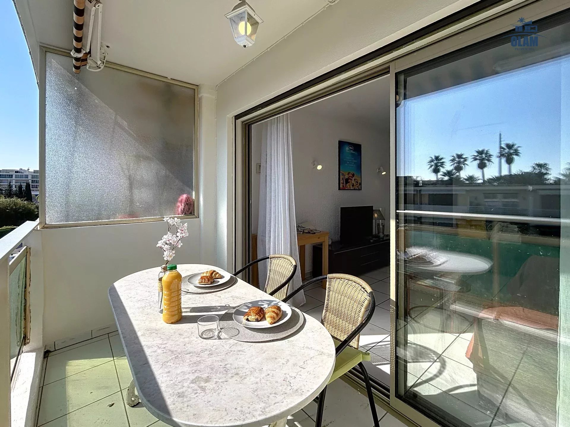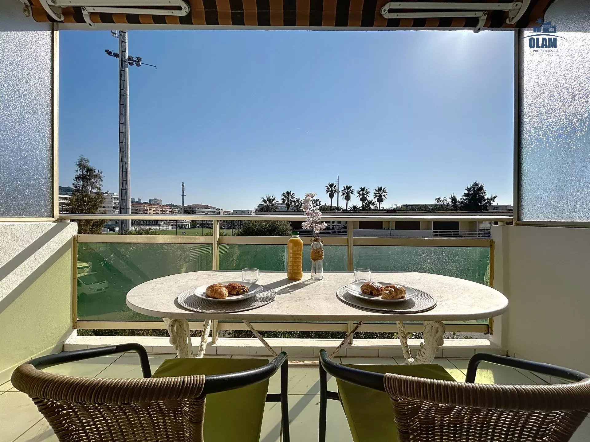 Idéalement situé, face aux plages de la Croisette, à moins de 50m de la célèbre avenue. Tous les commerces sont à moins de 2 minutes à pied de l'immeuble tels que pharmacie, supermarché, boulangerie, banque... Transports en commun à 100m. L'appartement se situe dans un domaine sécurisé et fermé! Parking facile. Appartement situé au 2ème étage sans ascenseur d'une jolie résidence avec salon, cuisine séparée, salle de douche avec wc, chambre avec la possibilité d'avoir 2 lits simples ou 1 grand lit. Une terrasse complète le bien.
