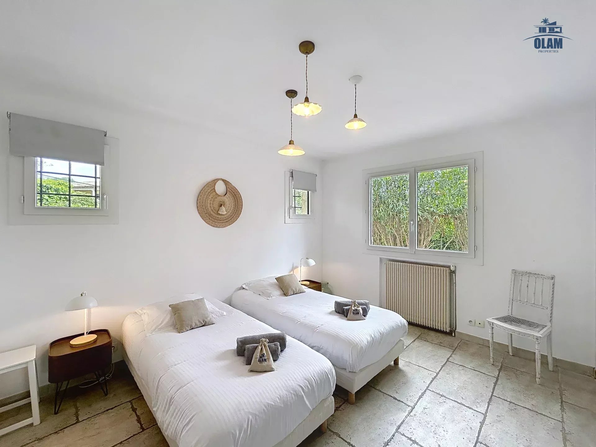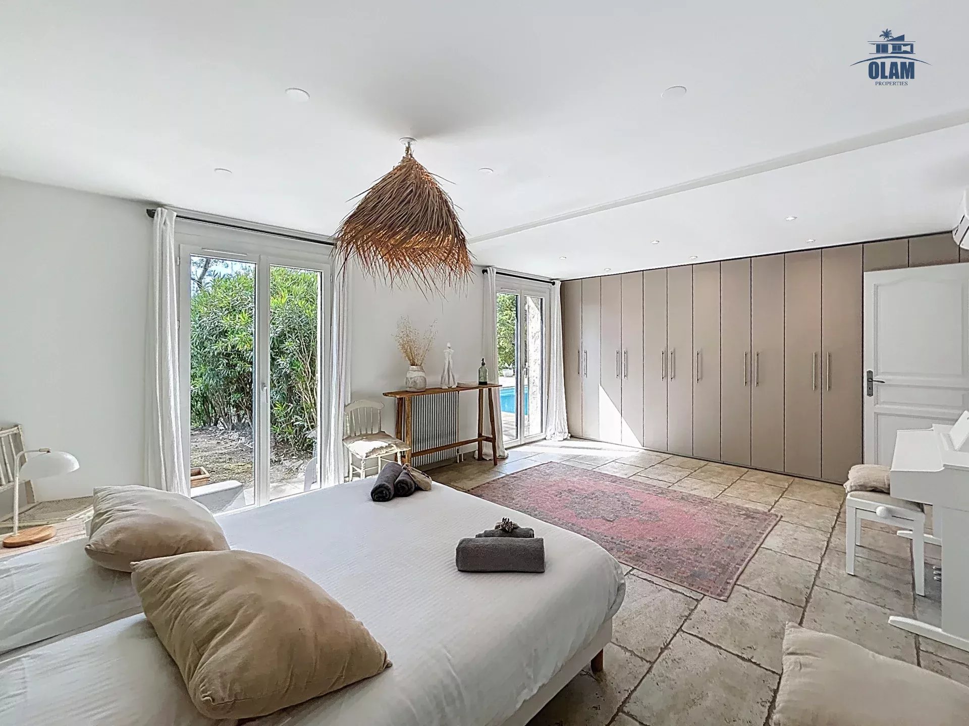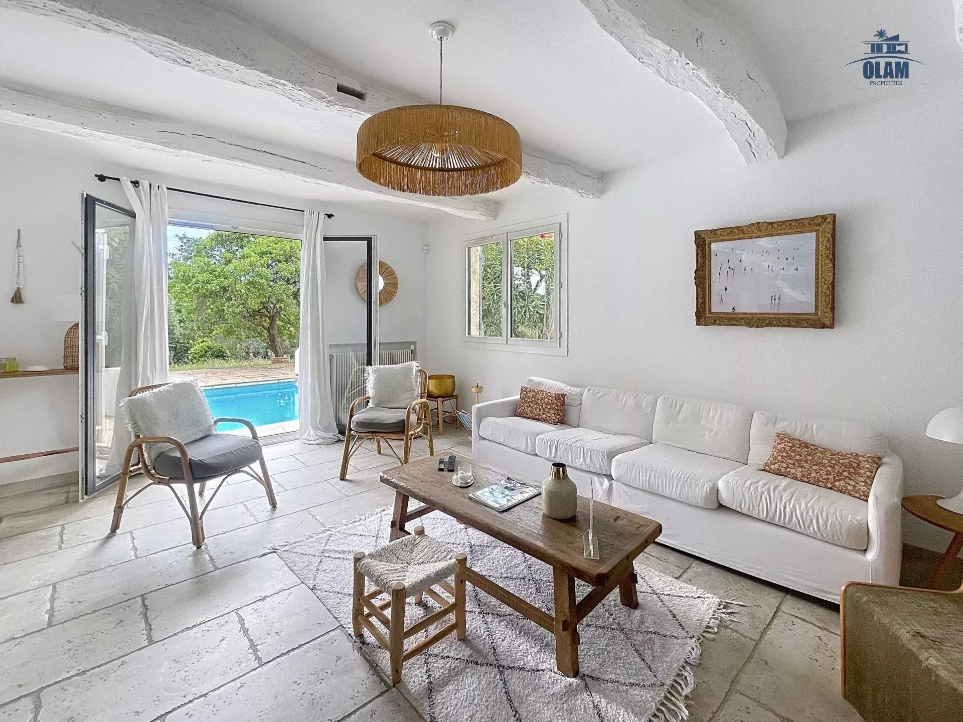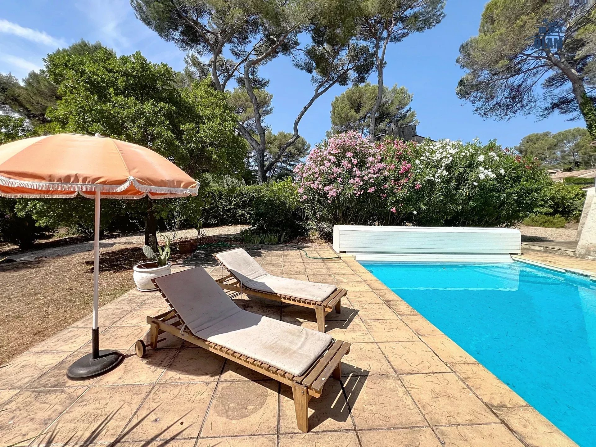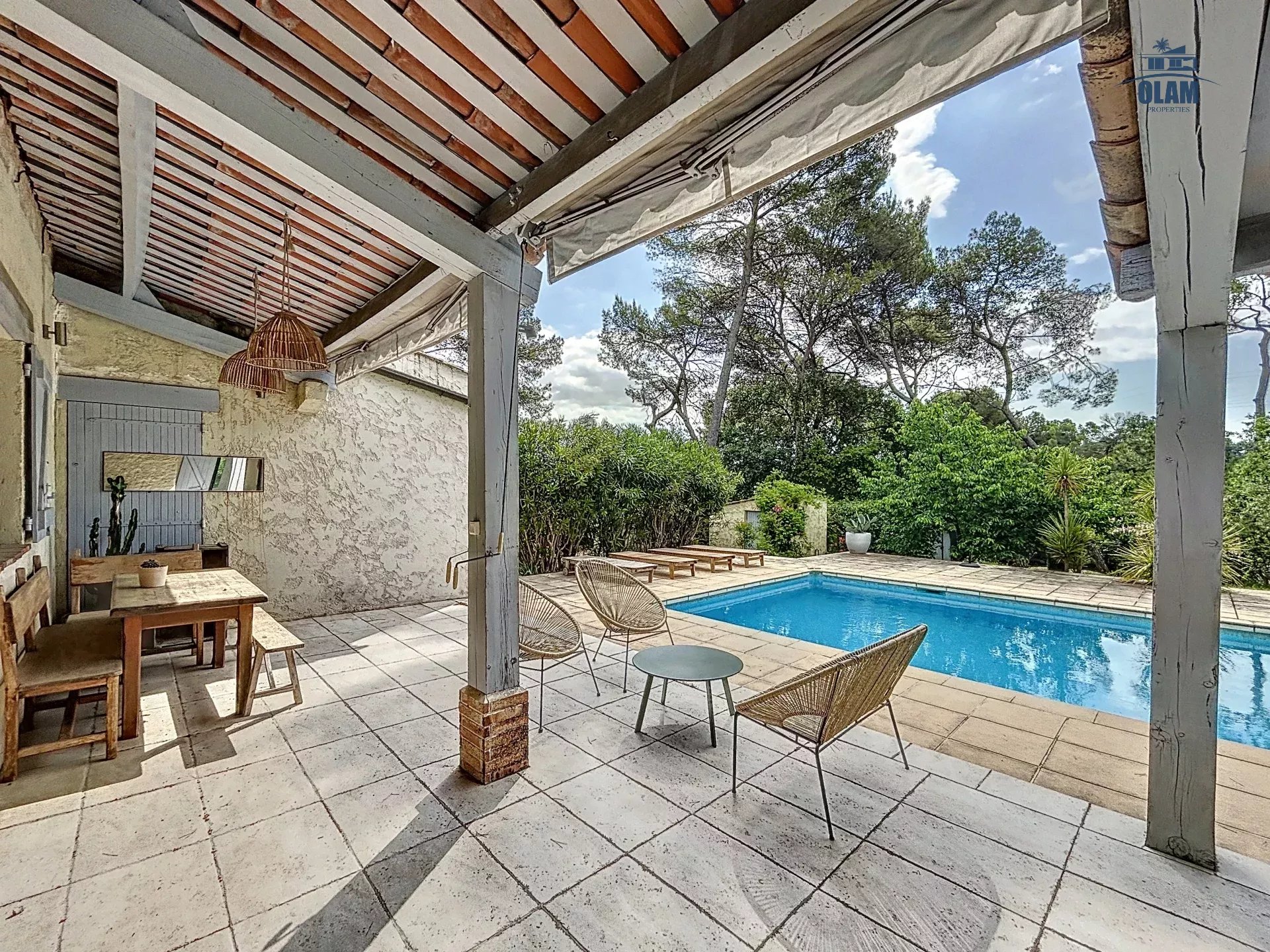 Au coeur d'une pinède, dans un quartier calme et résidentiel villa de plein pied d’environ 150m2 composée comme suit : un grand salon avec vue dégagée, une grande cuisine toute équipée. Un hall d'entrée spacieux avec toilettes invités. Une grande chambre avec salle de bains, deux autres chambres avec leur salles de douche. Toujours au même niveau à l’extérieur se trouve une grande terrasse, un espace pour les repas et une piscine de 12 x 5m. TV – Connexion internet - Climatisation