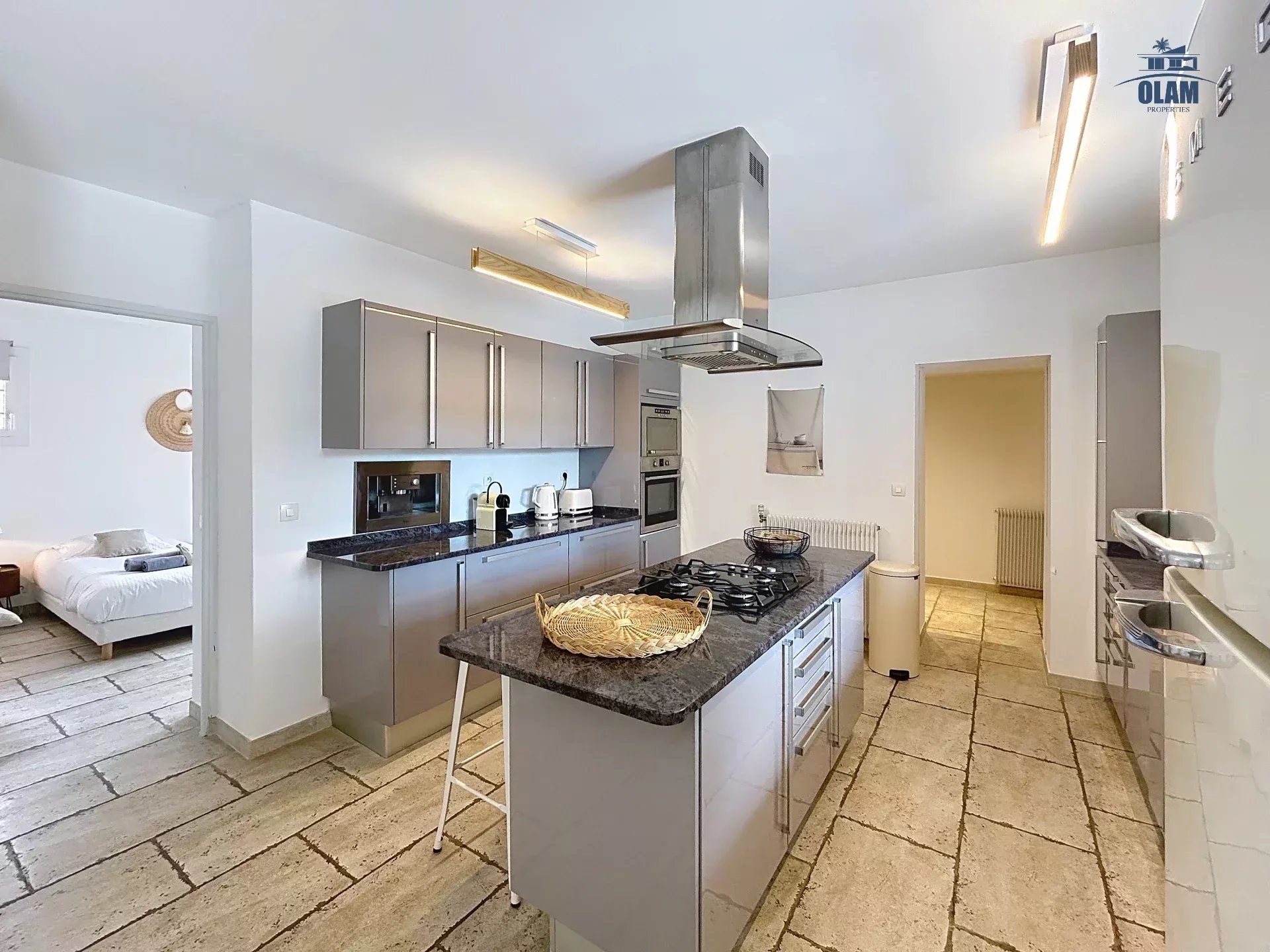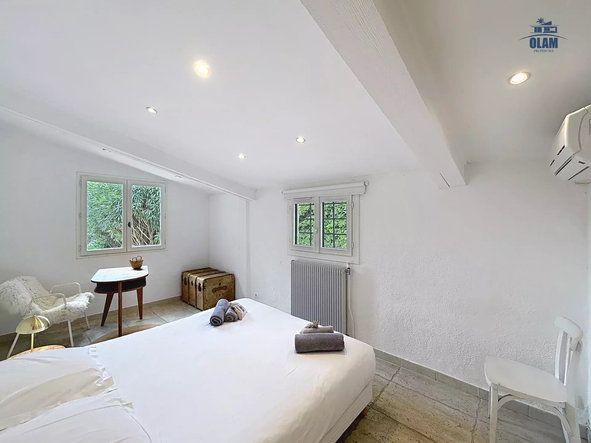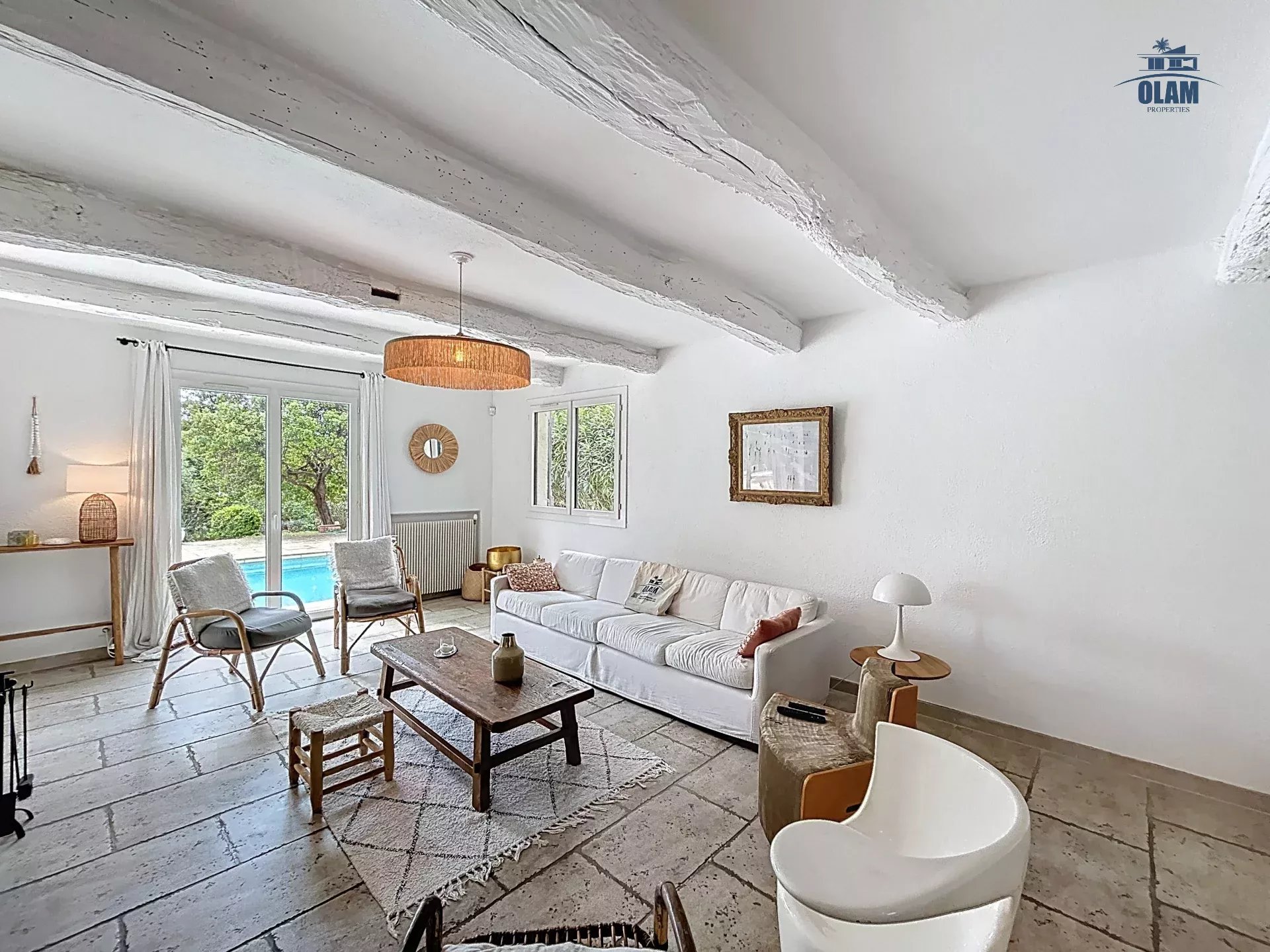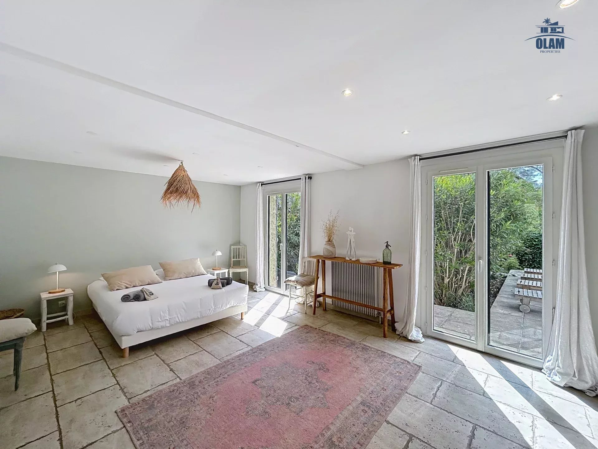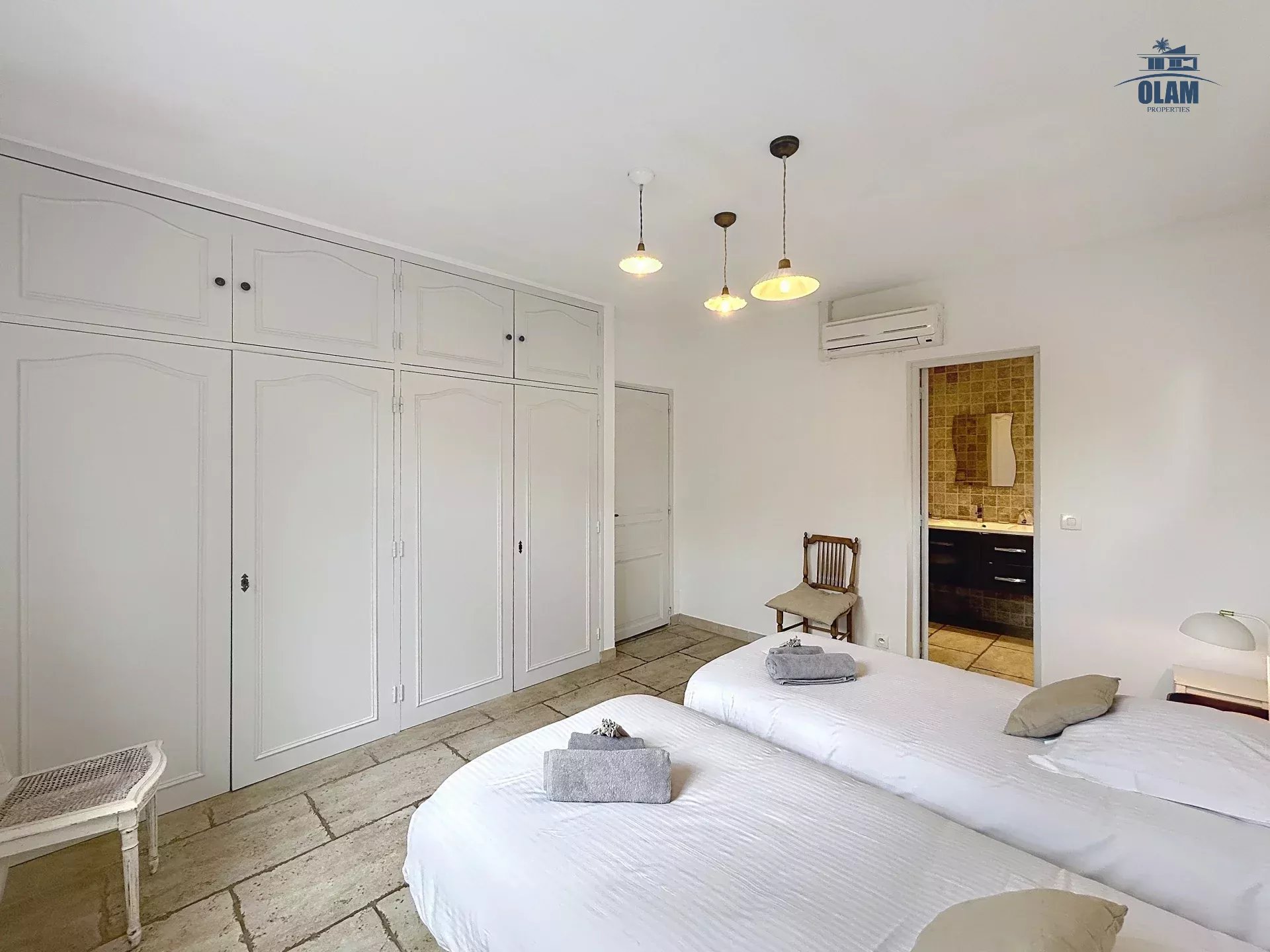 Au coeur d'une pinède, dans un quartier calme et résidentiel villa de plein pied d’environ 150m2 composée comme suit : un grand salon avec vue dégagée, une grande cuisine toute équipée. Un hall d'entrée spacieux avec toilettes invités. Une grande chambre avec salle de bains, deux autres chambres avec leur salles de douche. Toujours au même niveau à l’extérieur se trouve une grande terrasse, un espace pour les repas et une piscine de 12 x 5m. TV – Connexion internet - Climatisation