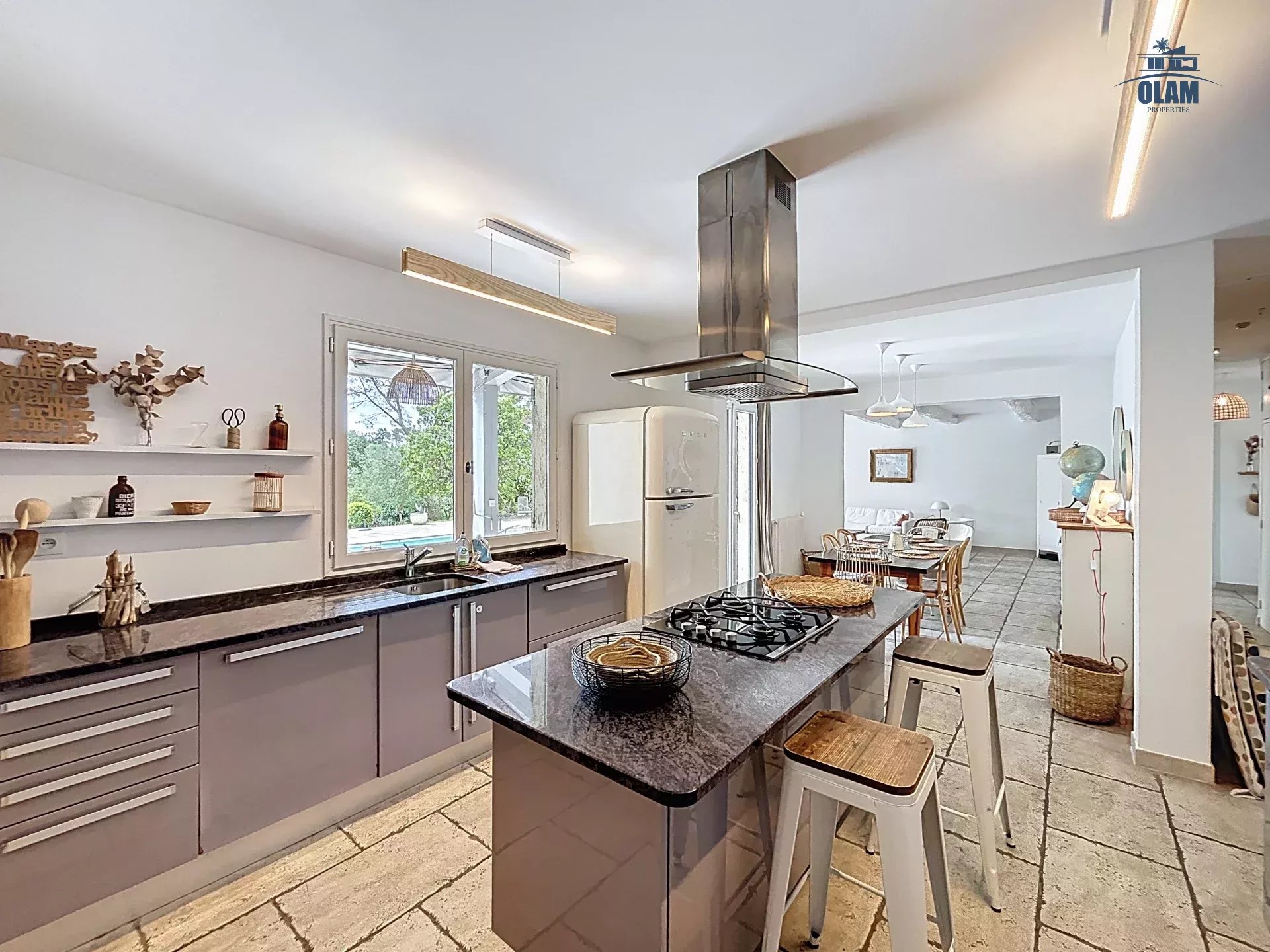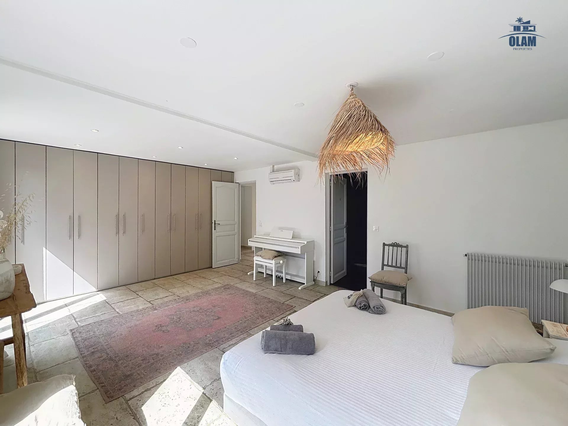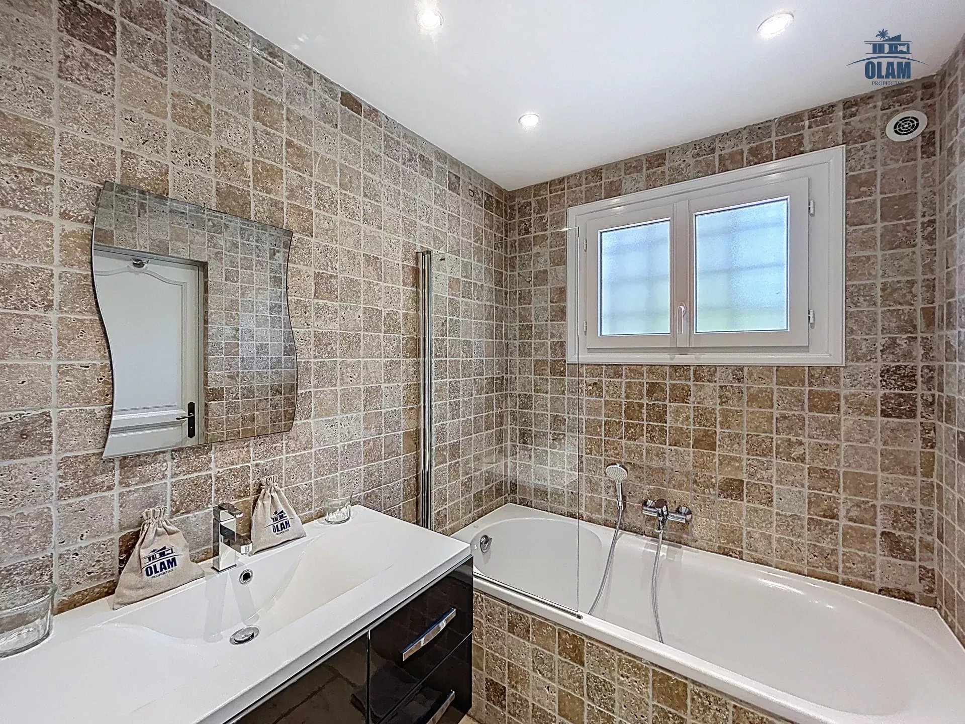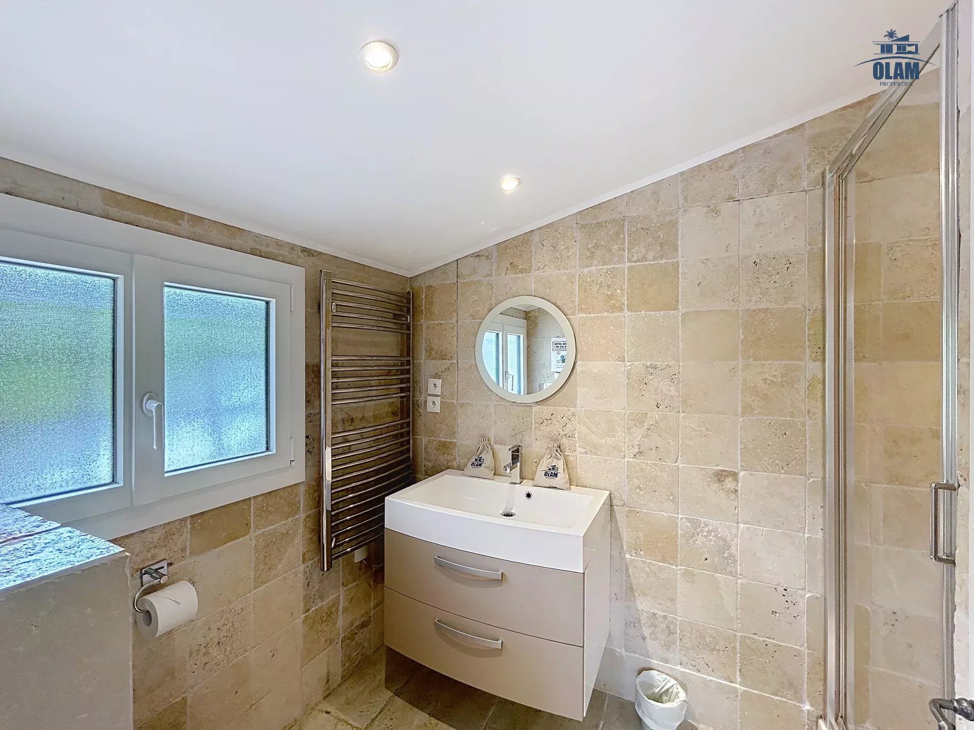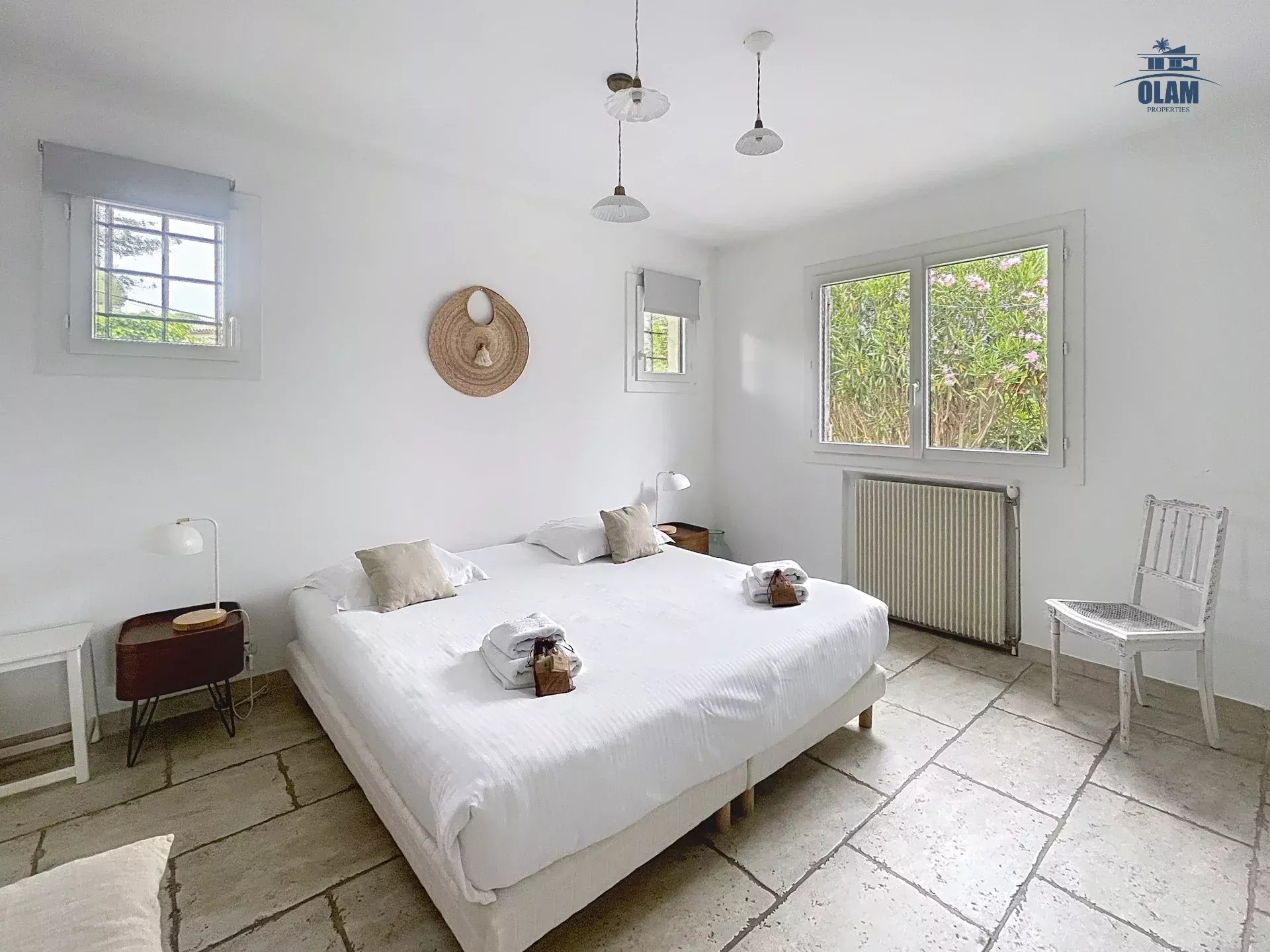 Au coeur d'une pinède, dans un quartier calme et résidentiel villa de plein pied d’environ 150m2 composée comme suit : un grand salon avec vue dégagée, une grande cuisine toute équipée. Un hall d'entrée spacieux avec toilettes invités. Une grande chambre avec salle de bains, deux autres chambres avec leur salles de douche. Toujours au même niveau à l’extérieur se trouve une grande terrasse, un espace pour les repas et une piscine de 12 x 5m. TV – Connexion internet - Climatisation