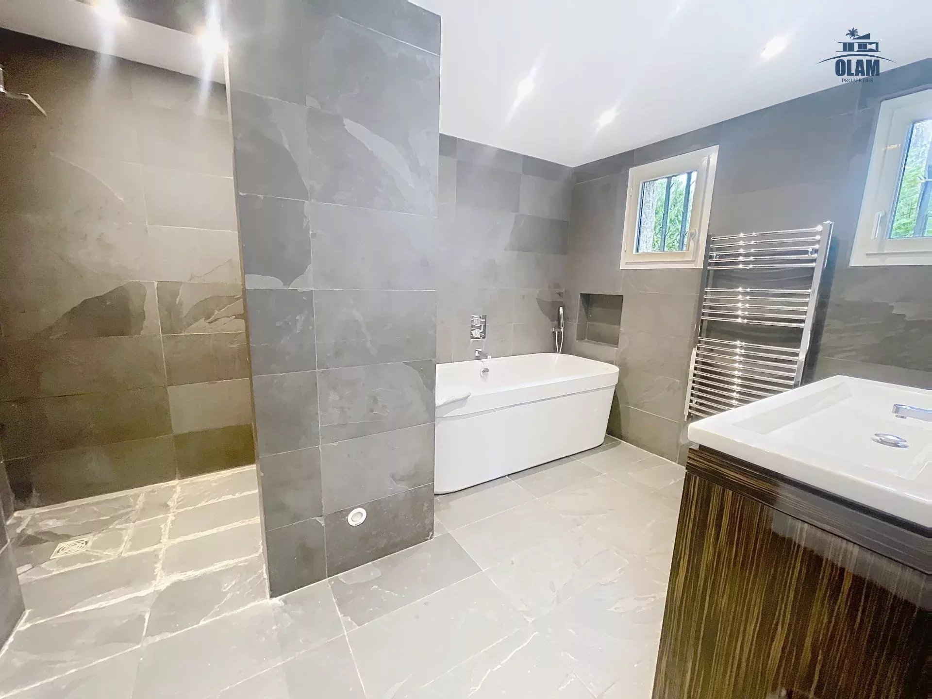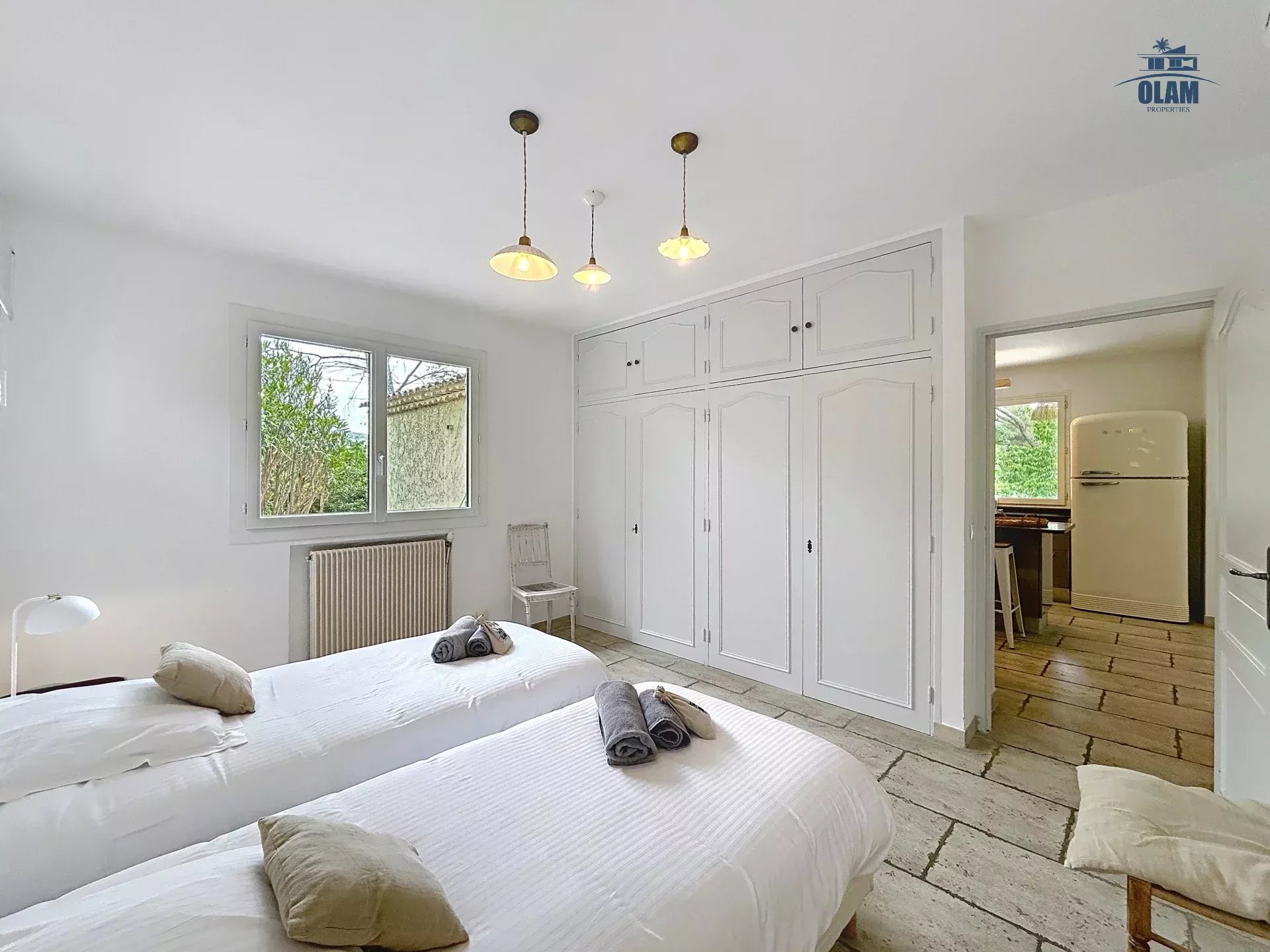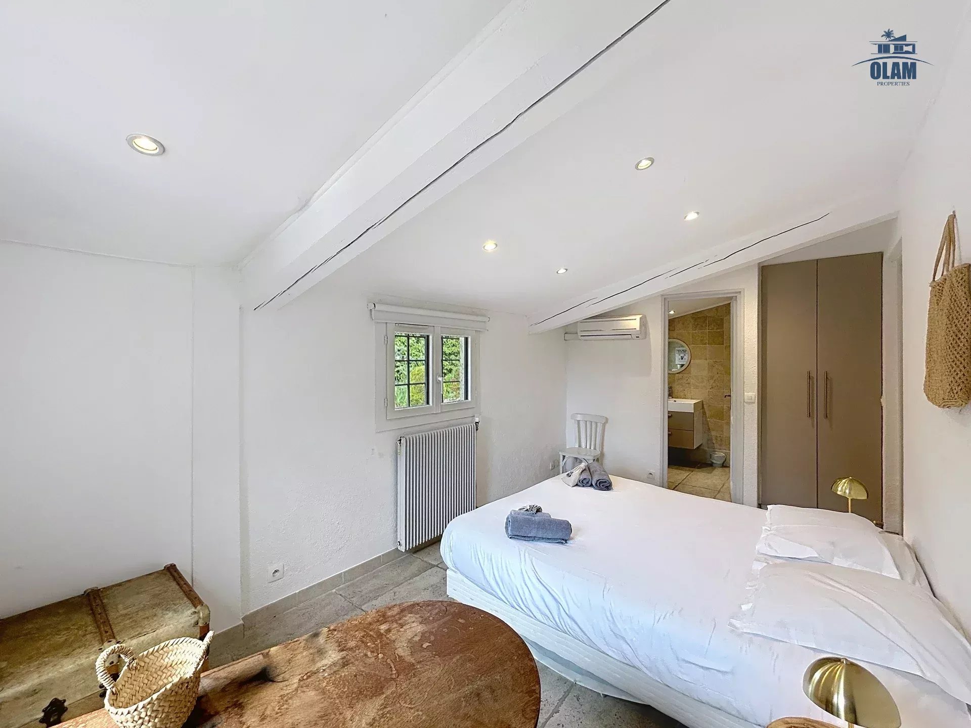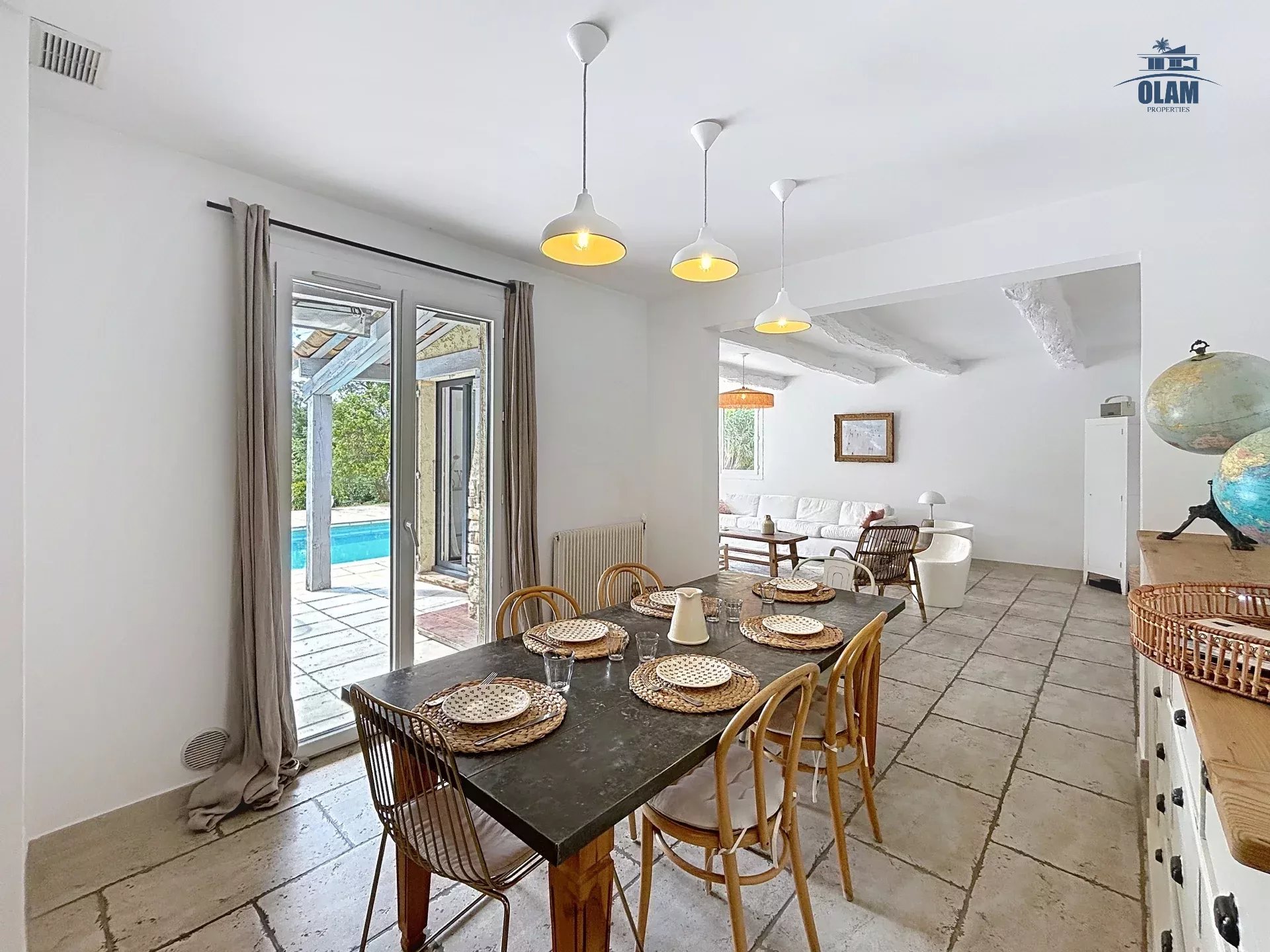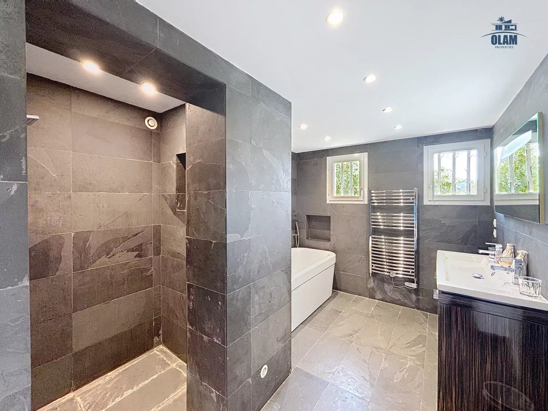 Au coeur d'une pinède, dans un quartier calme et résidentiel villa de plein pied d’environ 150m2 composée comme suit : un grand salon avec vue dégagée, une grande cuisine toute équipée. Un hall d'entrée spacieux avec toilettes invités. Une grande chambre avec salle de bains, deux autres chambres avec leur salles de douche. Toujours au même niveau à l’extérieur se trouve une grande terrasse, un espace pour les repas et une piscine de 12 x 5m. TV – Connexion internet - Climatisation