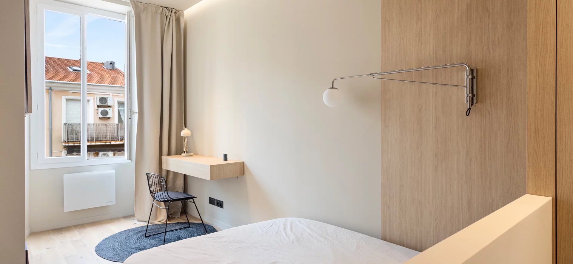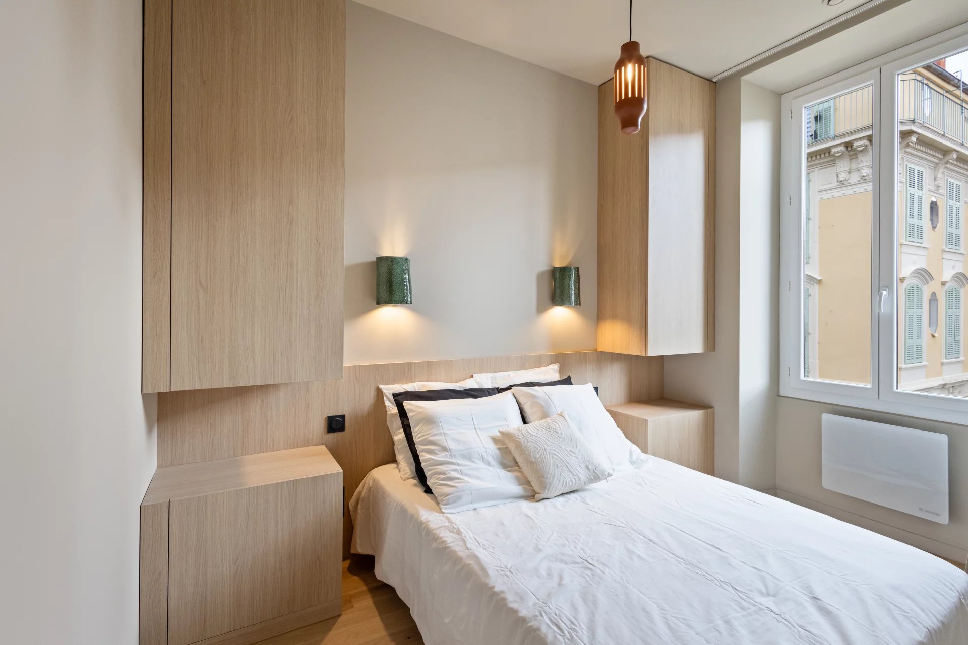 Future Coulée Verte, Au coeur de la ville de Nice, rue Penchienatti, devant la future coulée verte, à proximité du Vieux Nice et de la Place Garibaldi. Magnifique 3 pièces de 48 2-m2 avec balcon, entièrement rénové et meublé avec des prestations de qualités réalisées par une architecte d'intérieur.