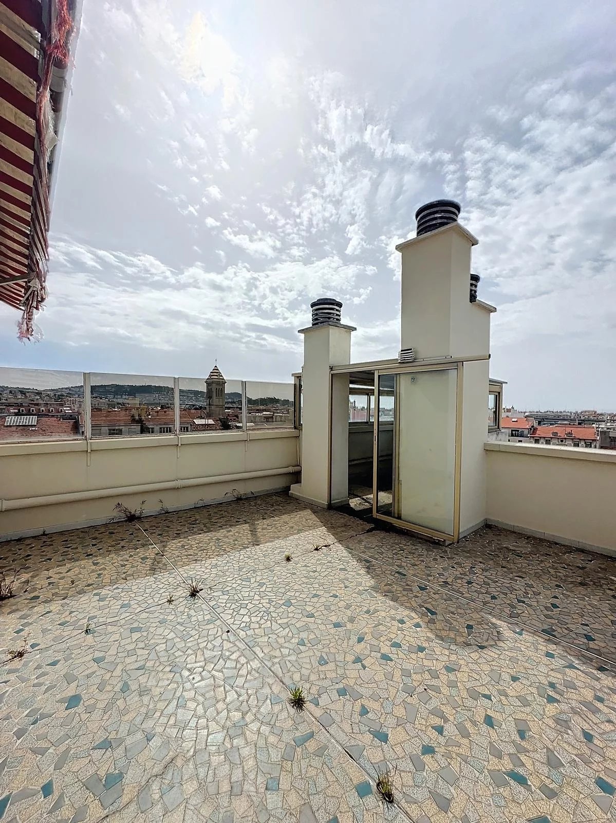 EXCLUSIVITE L'agence vous propose un appartement au 7eme et dernier étage d'un immeuble des années 60, avec ascenseur, vous permettant d'accéder directement a l'appartement. Un bien de 90m2 bénéficiant de deux terrasses pour une surface totale de plus de 75m2. Cet appartement est composé d'un beau séjour lumineux plein ouest avec sa cuisine a proximité donnant sur une terrasse de plus de 20m2 plein sud. Permettant une magnifique vue sur la ville et le bord de mer. Les chambres avec terrasse sont au nord. Sa proximité avec le quartier de la libération en faut un produit idéal pour une résidence principal dans un des quartier les plus trendy du moment. Bien unique sur le marché de la libération. Rénovation indispensable.