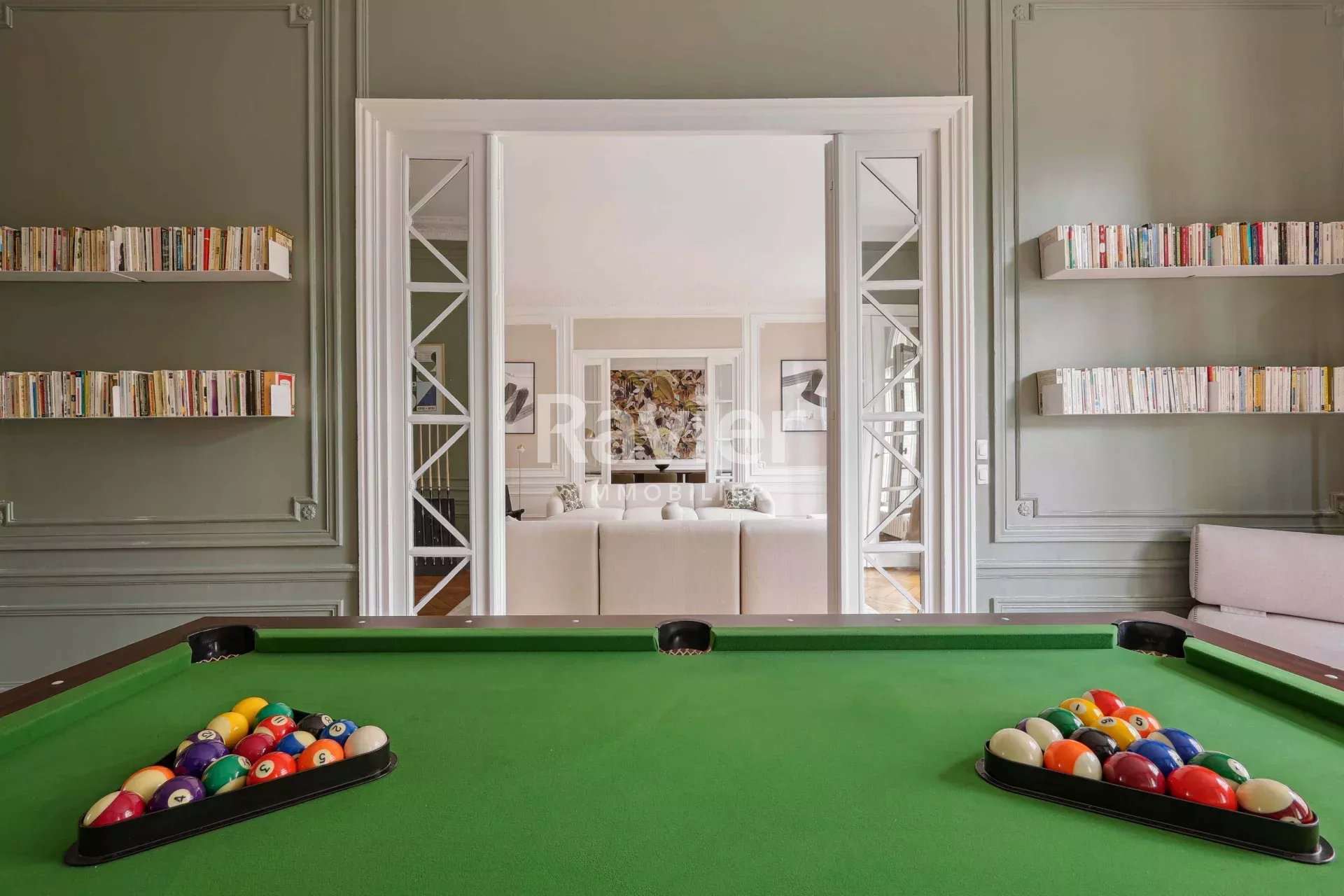 Il est composé d'une large entrée, une triple réception avec vue Tour Eiffel composée d'un espace salon, salle à manger et une salle de billard, une cuisine séparée dinatoire entièrement aménagée et équipée avec cellier attenant.