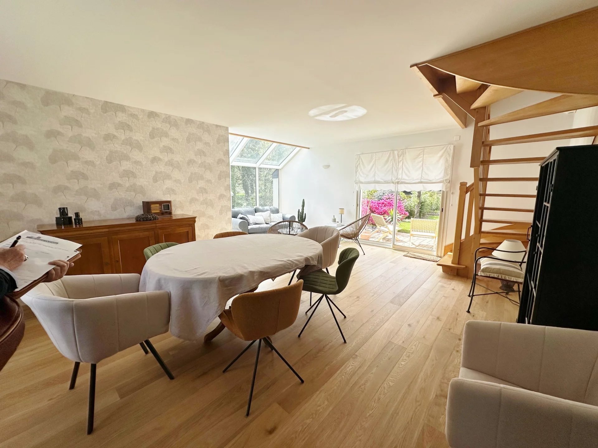 Dans un écrin de verdure et au calme, belle maison familiale composée d'une pièce de vie avec un salon et sa cheminée, un salon avec une verrière donnant sur le jardin et vue sur les bois, cuisine équipée, arrière cuisine, toilettes, A l'étage, 4 chambres avec placard, salle de bain, salle d'eau, toilettes. Dépendance au fond du jardin. Garage carrelé avec porte électrique. Les plus : Bien entretenue, décoration sobre, proche commodités, UNE VISITE S'IMPOSE