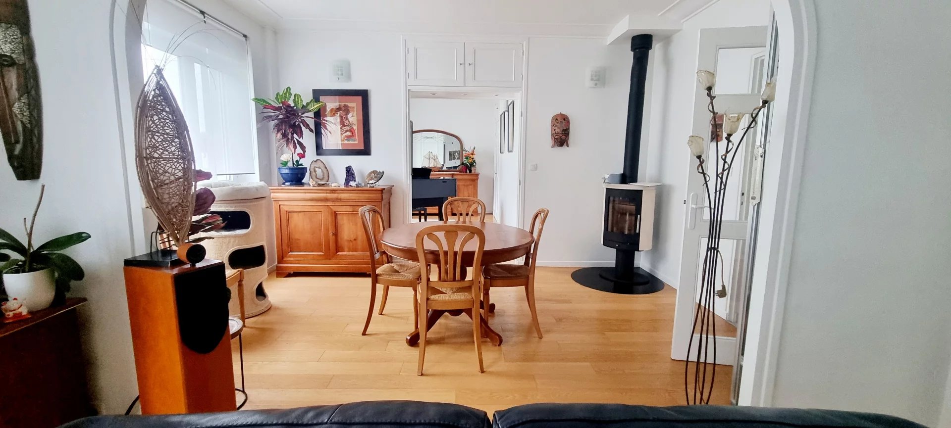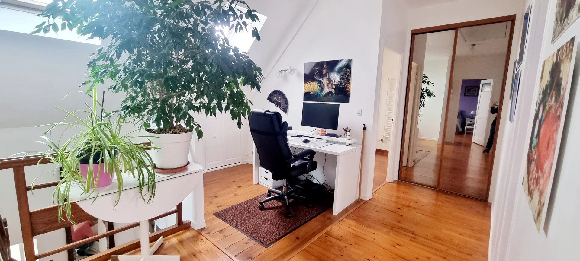 Au 1er: un dégagement, un beau séjour salon très lumineux avec de belles hauteurs sous plafond et un poêle de 50m² env, une grande cuisine équipée accès terrasse, toilettes, une chambre avec son dressing et sa salle d'eau.