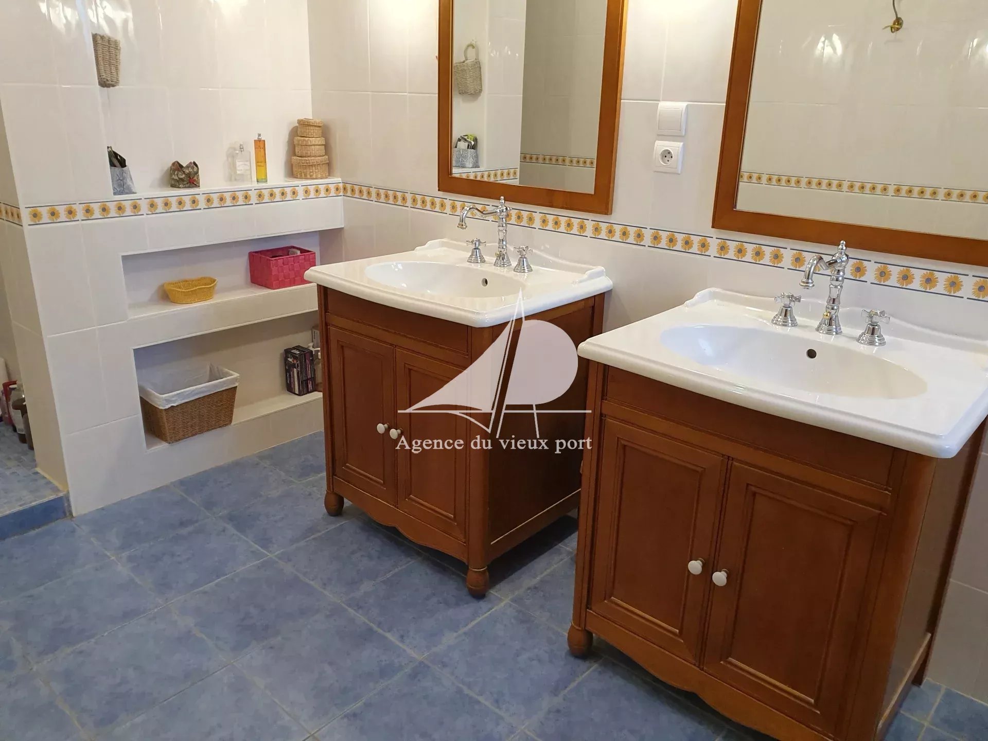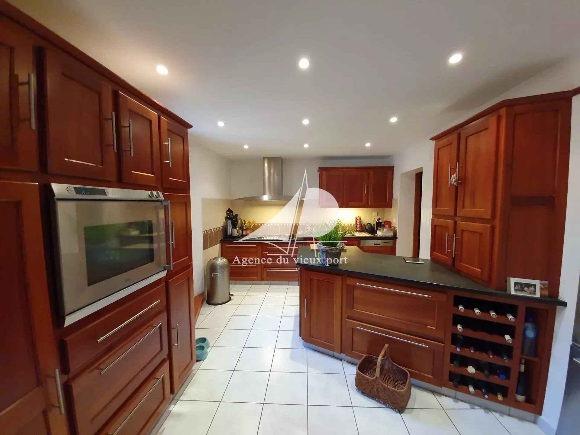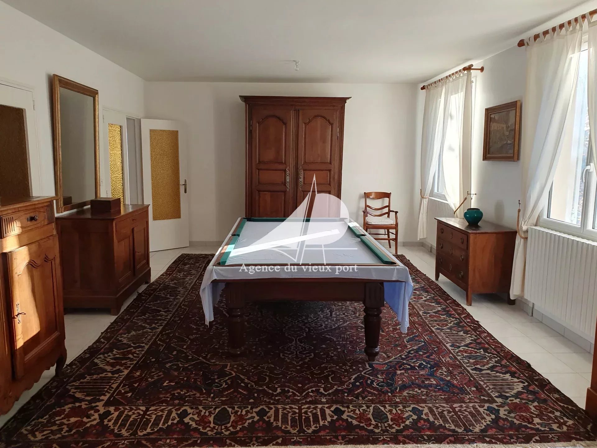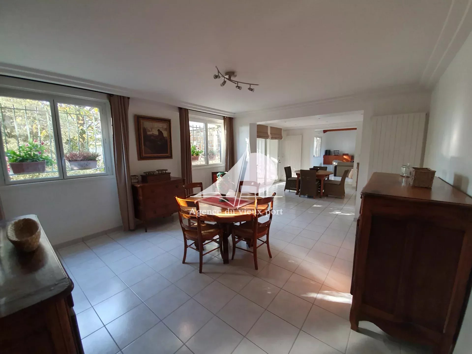 A vendre : Au sein d'un quartier résidentiel, entre plage et commerces sur terrain d'environ 800 m2 , maison sur deux niveaux proposant de beaux volumes : en rez-de-chaussée hall d'entrée avec rangements et dégagement, vaste salon-séjour exposé SUD, cuisine aménagée et équipée donnant sur patio, buanderie, WC et lave mains indépendant, chaufferie, cellier. Au premier étage : palier, 4 chambres, dont deux avec salles d'eau privatives, un bureau, une salle de bain, 2 WC, salon- billard avec balcon exposé SUD. Au dernier étage espace d'environ 60 m2 idéal pour un dortoir, une salle vidéo, une salle de jeux etc.... Jardin clos et arboré avec grand garage pour deux véhicules.