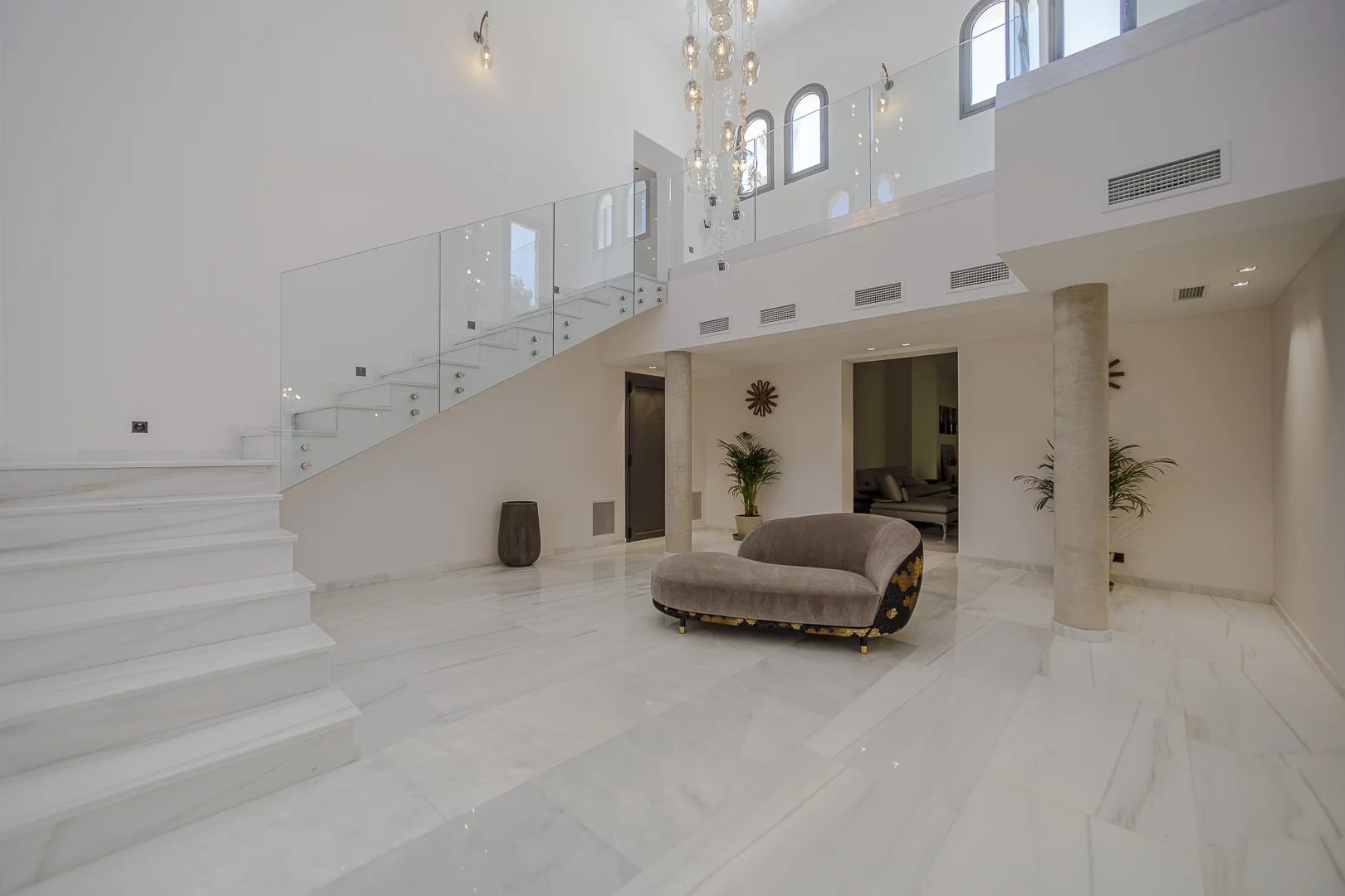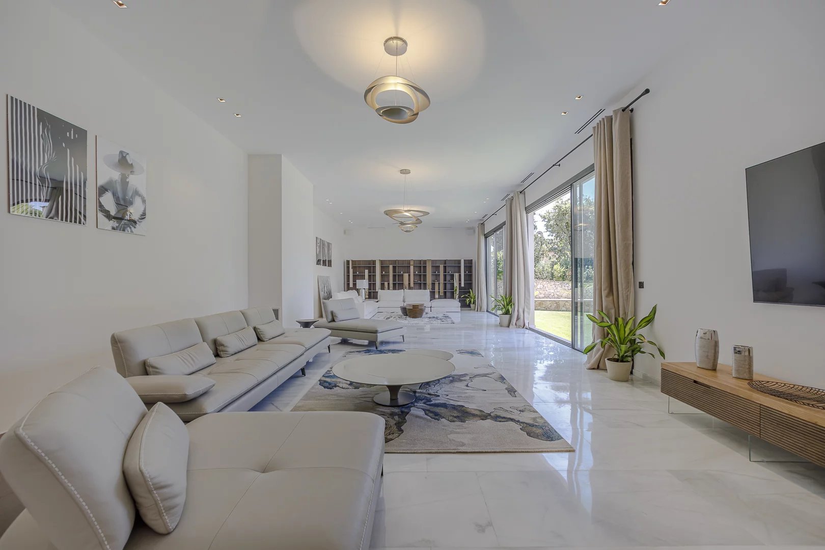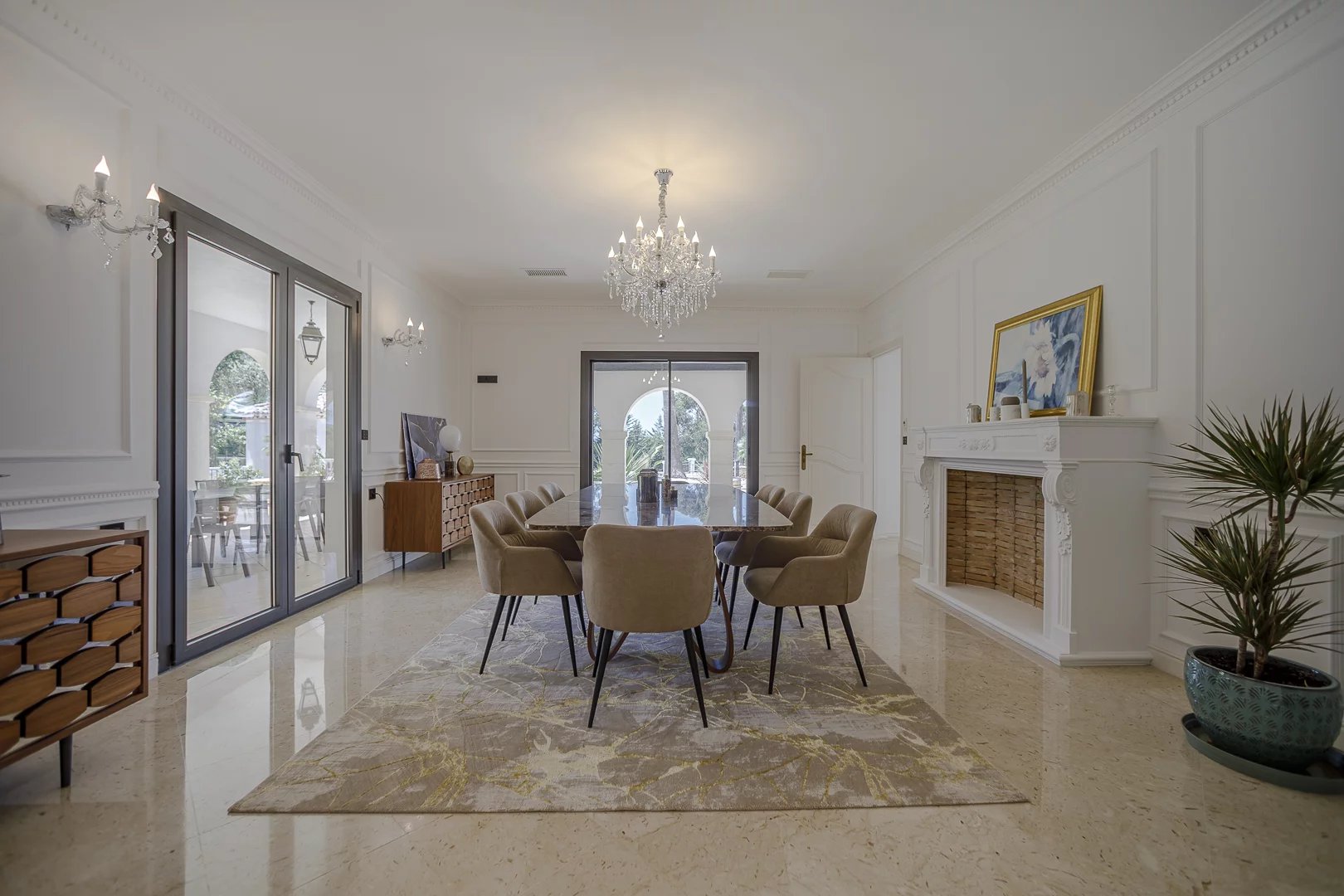 Elle dispose de deux grands salons de plus de 100m² chacun, une cuisine centrale entièrement équipée attenante à la salle à manger, ouverte sur l extérieur.Un bureau pouvant être utilisé en chambre d'appoint.