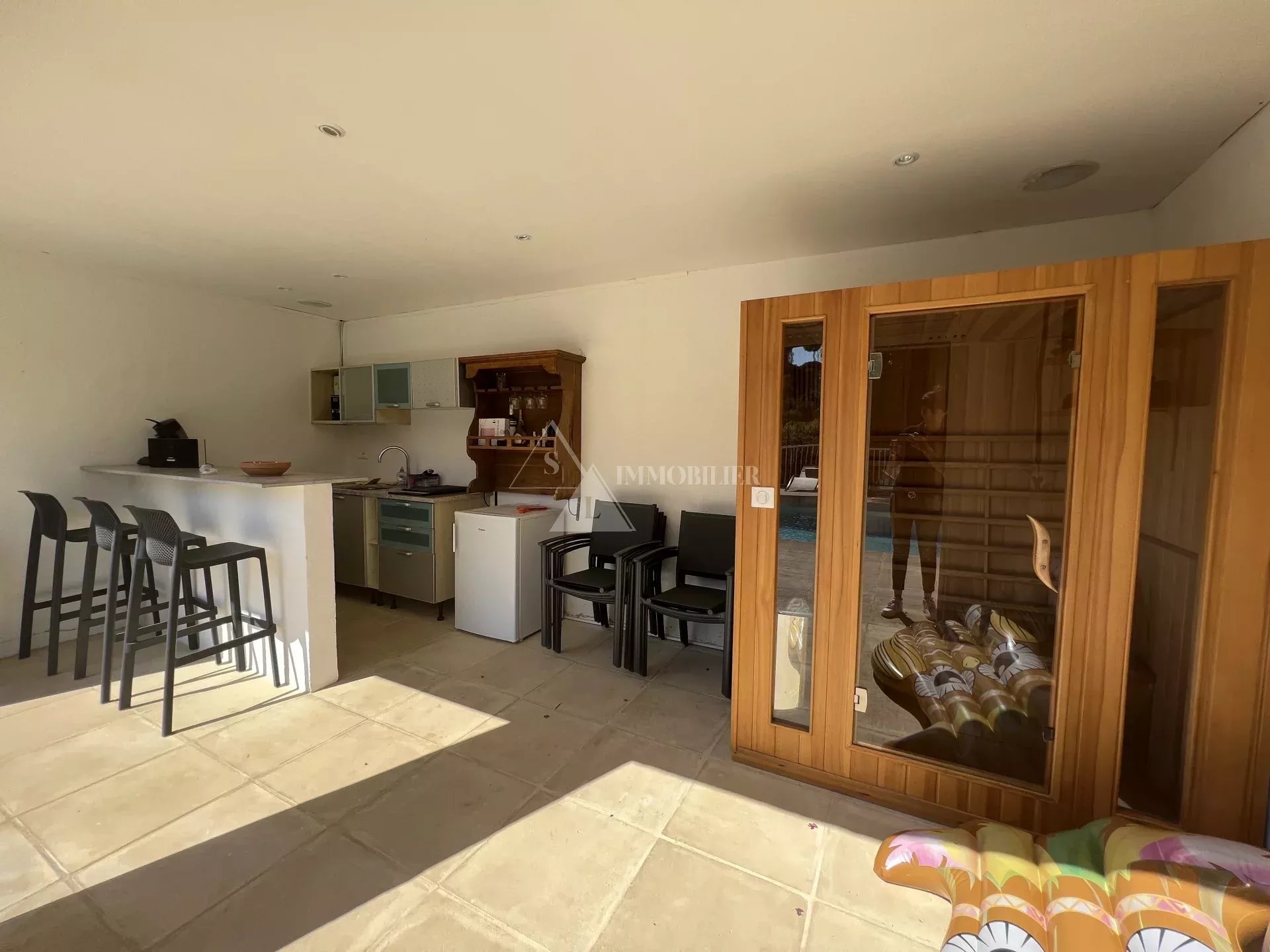 A l’extérieur, une belle et grande piscine au sel de 10m x 5m, un pool house et un sauna.