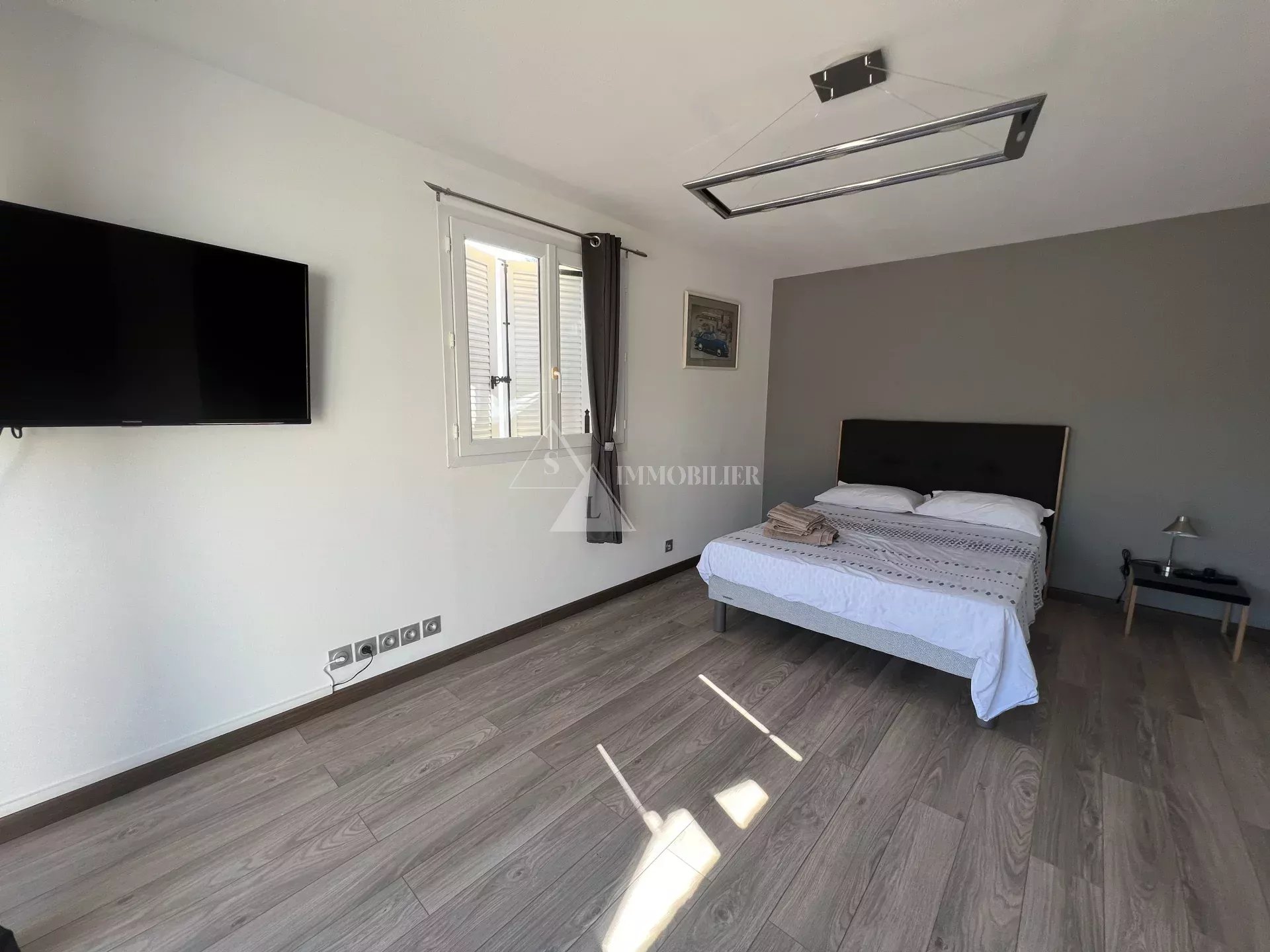 Au RDC un hall d’entrée, une cuisine entièrement équipée, un grand salon/ séjour avec cheminée donnant sur deux belles terrasses vue mer. Deux grandes chambres, une salle de bain et un WC séparé.