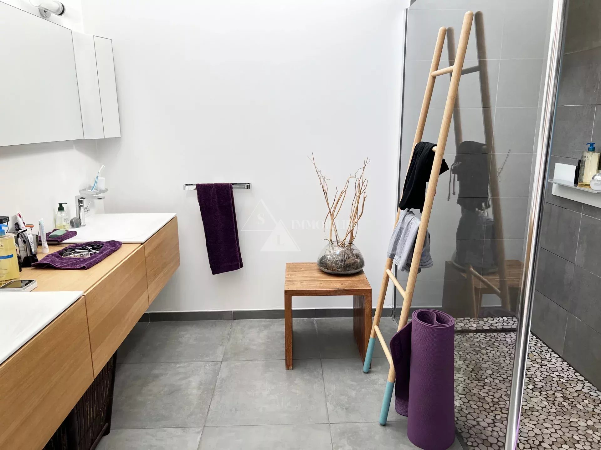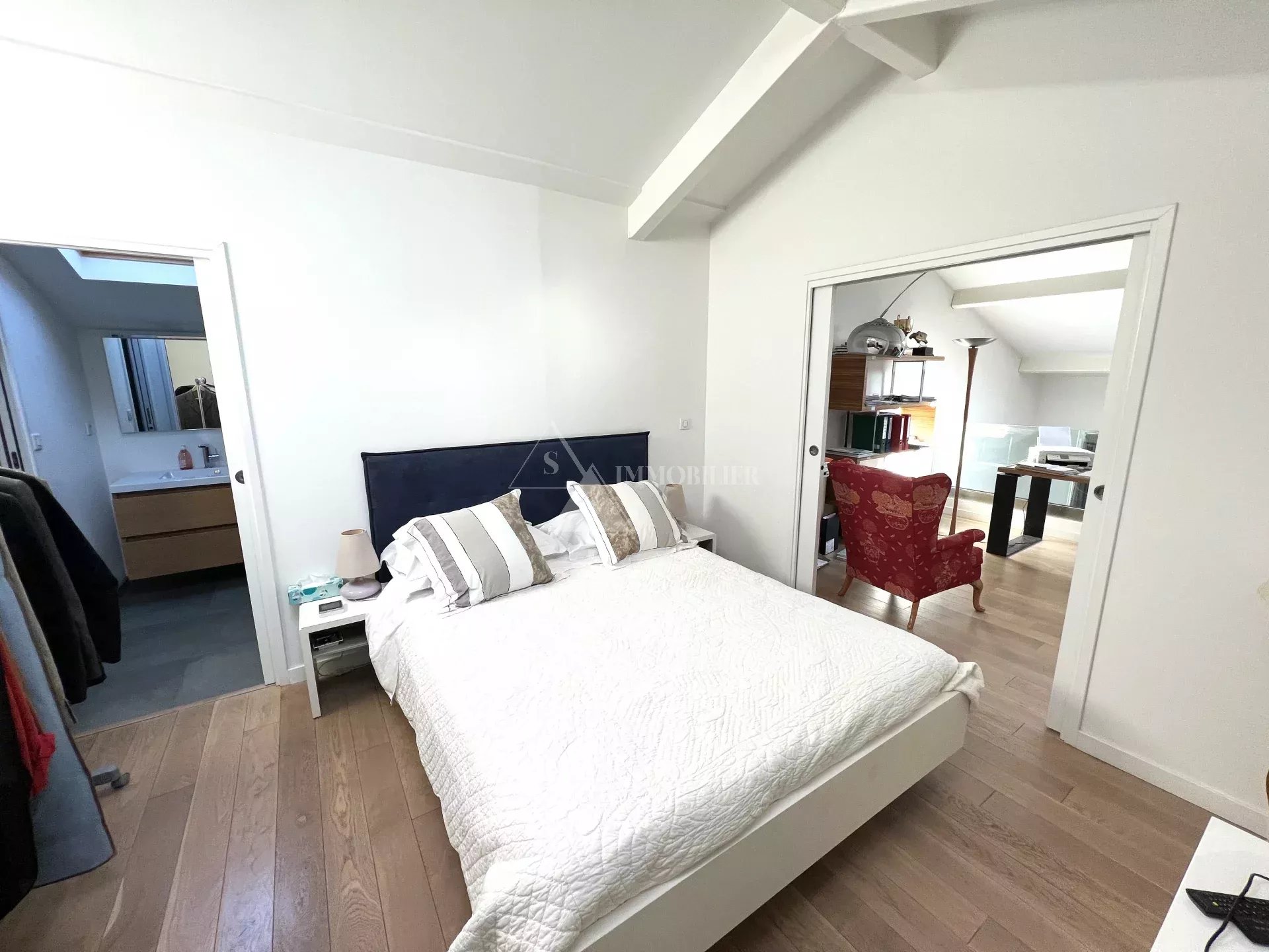 - parquet dans le séjour, chambres et dressing. Carrelage dans la cuisine et les pièces d'eau.
