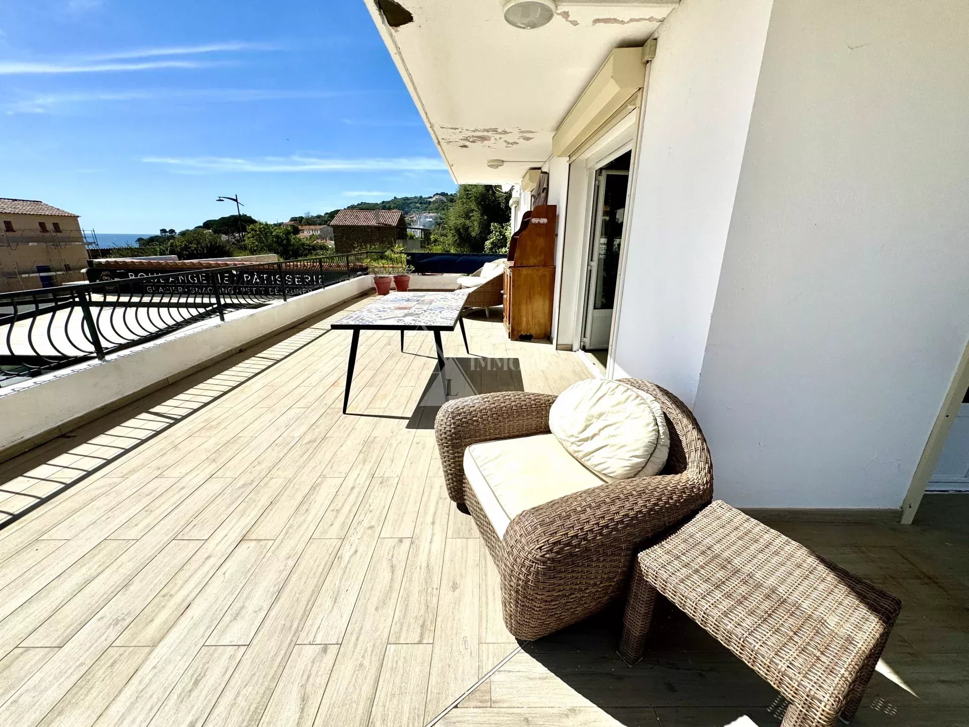 Profitez pleinement de la douceur méditerranéenne grâce à la vaste terrasse exposée sud-ouest qui vous offre un espace de vie extérieur incomparable. Les larges ouvertures permettent à la lumière naturelle d'illuminer chaque coin de l'appartement tout au long de la journée. Les fenêtres en double vitrage avec volets roulants garantissent votre tranquillité et votre intimité.