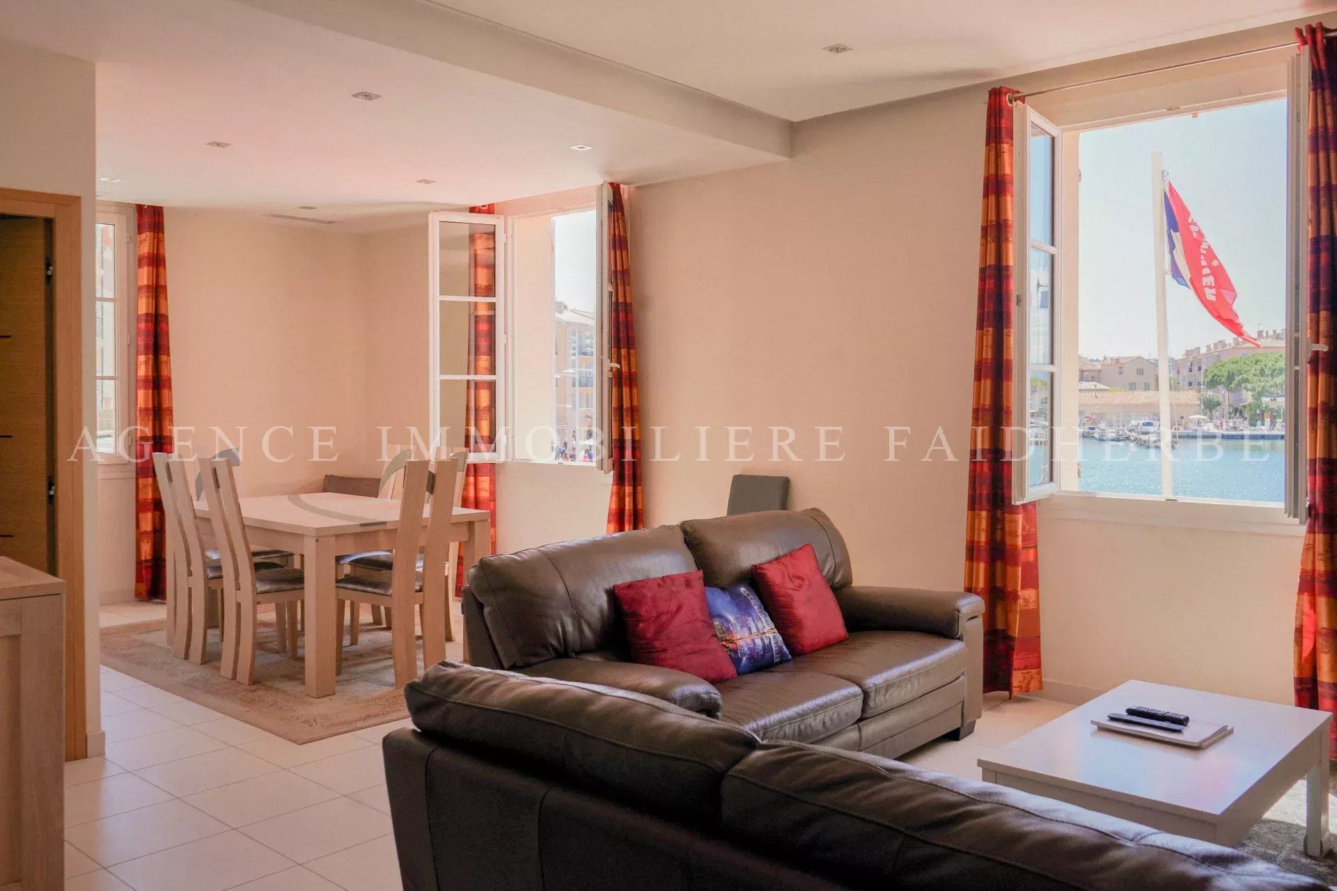 Sul famoso porto di Saint Tropez, appartamento composto da: 1 camera con letto da 160, bagno con doccia et wc 1 camera con 2 letti da 90, bagno con doccia et wc Salone – sala da pranzo con TV Cucina equipaggiata (lavastoviglie e lavatrice) Aria condizionata, WIFI Costi: biancheria 80 €, pulizie 30 €/ora e tassa di soggiorno 6,91 €/giorno/persona)