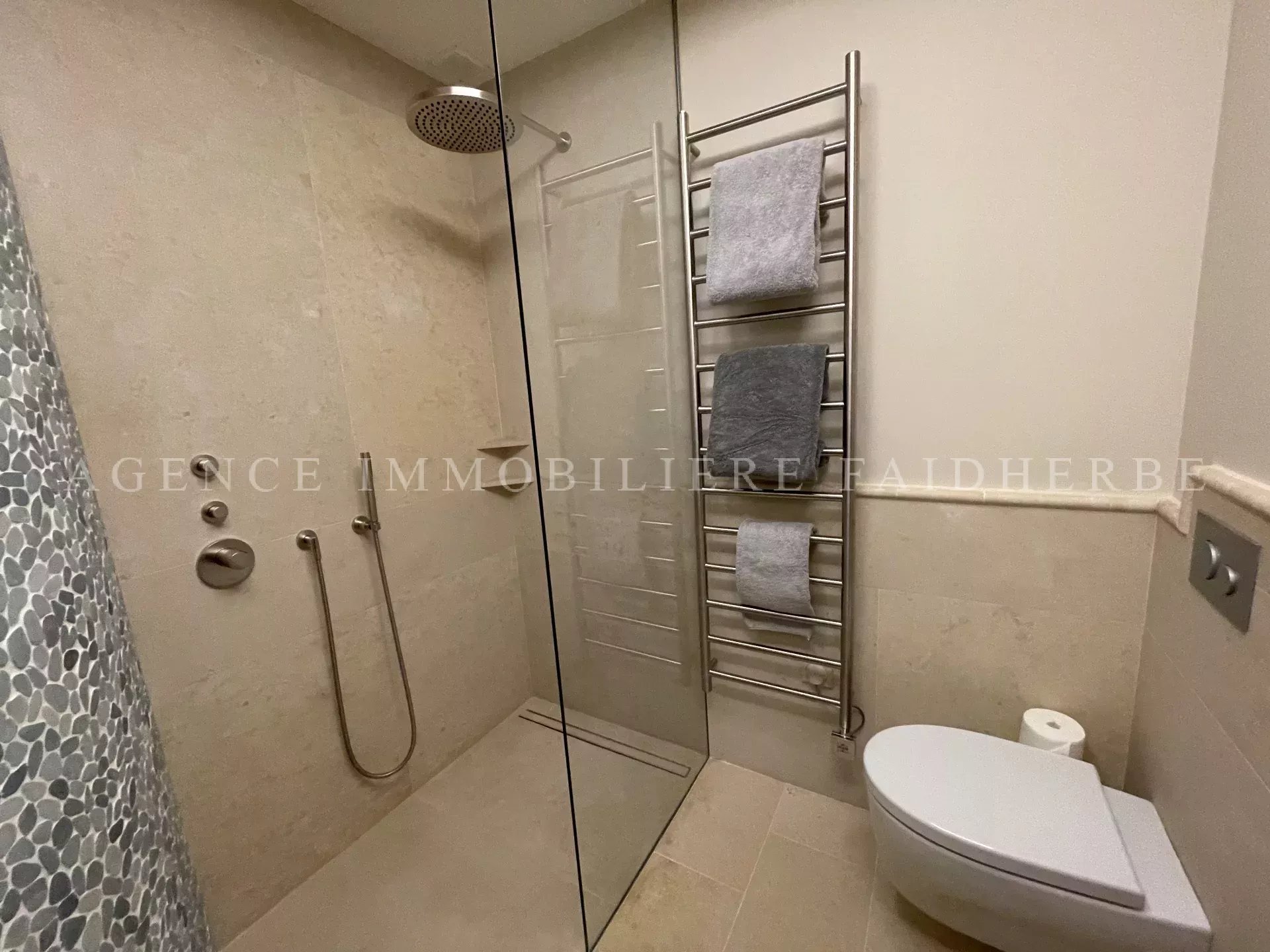 Appartamento ristrutturato in stile villaggio, con vista sulla Cittadella, composto da: 1 camera da letto con letto king-size, bagno con doccia/WC e cabina armadio 2 camere da letto con letto king-size, bagno con doccia/WC e cabina armadio Ampio soggiorno/sala da pranzo con accesso a una terrazza Cucina completamente attrezzata con accesso a un giardino (piano cottura a induzione, piastra, forno e microonde, 2 lavastoviglie, cantinetta) Aria condizionata in tutte le stanze, allarme, cassaforte e Wi-Fi Piccola piscina, 1 terrazza con lounge, 1 terrazza con sala da pranzo. Parcheggio per 1 auto. Spese: pulizia 30 €/ora, lavanderia e tassa di soggiorno 6,91 €/giorno/adulto Cauzione: 6.000 €