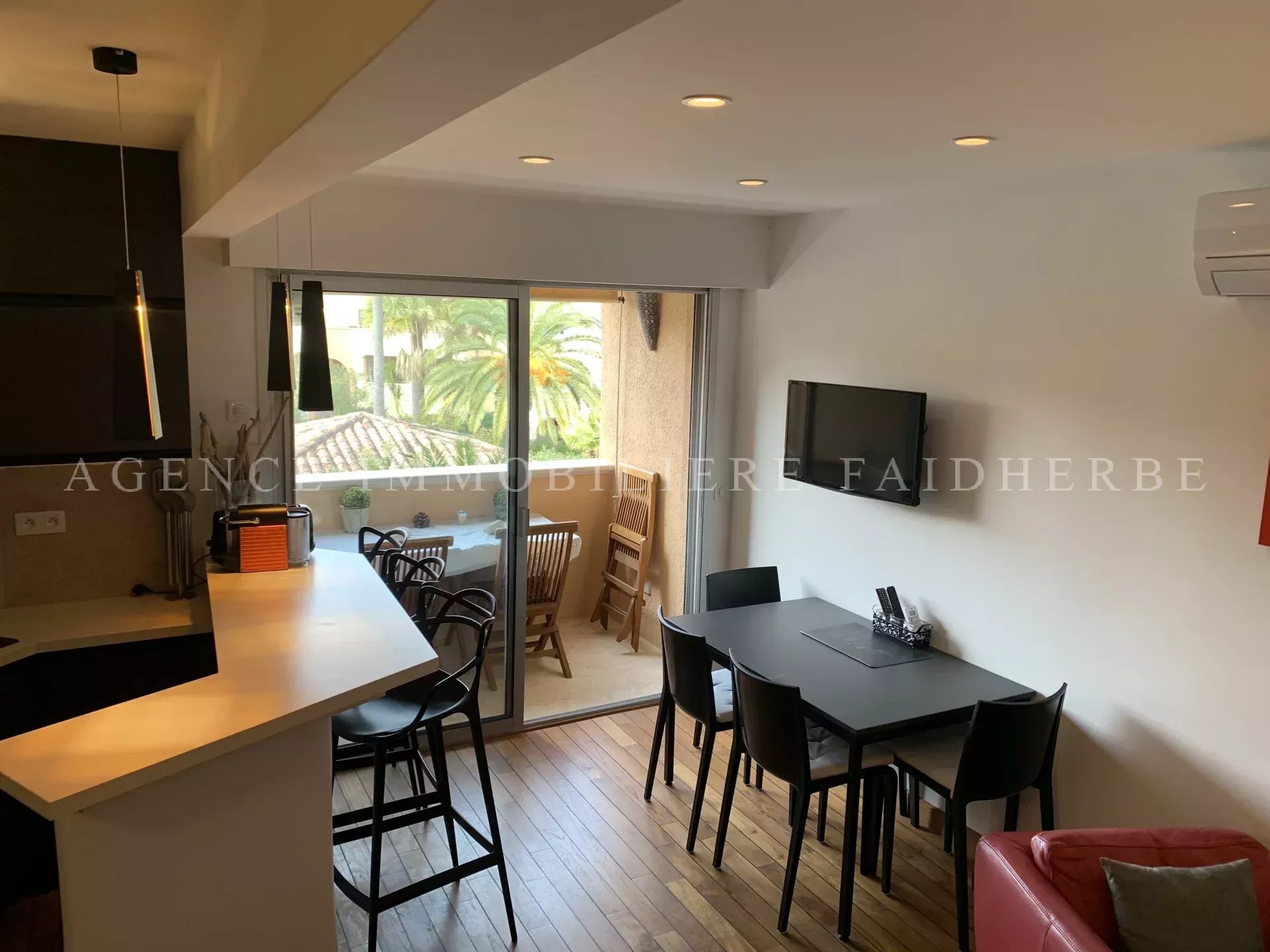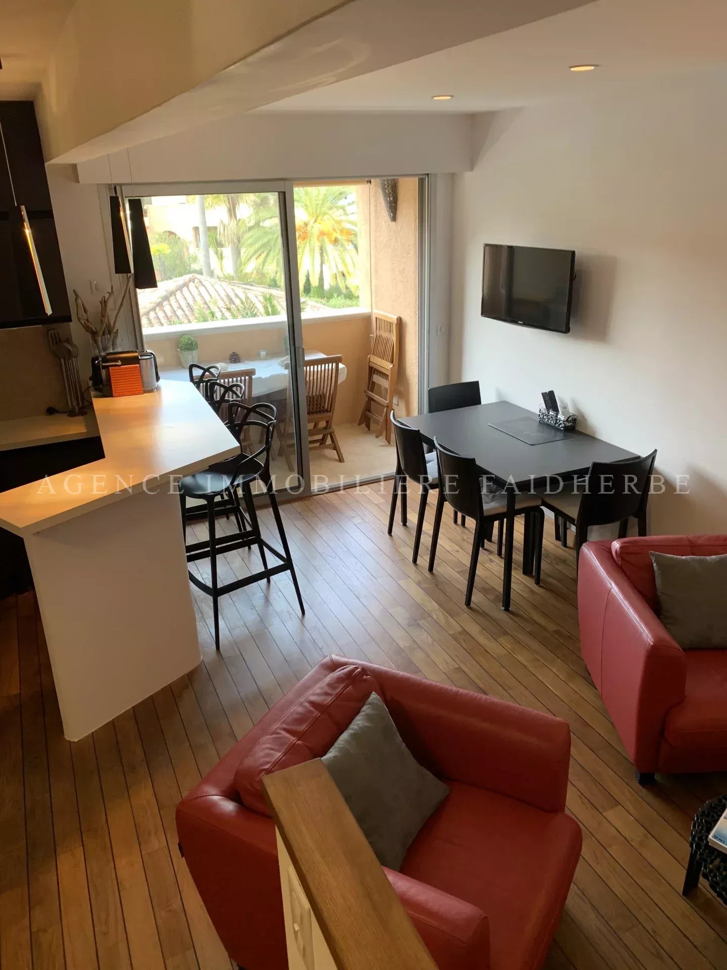Clos Ste Anne, appartamento duplex composto da: 1 soggiorno con cucina attrezzata a pianta aperta 1 balcone con vista piscina 2 camere da letto con letto matrimoniale o due letti singoli, di cui una con TV 1 cabina per bambini con letti a castello 1 bagno 1 bagno con doccia e WC 1 WC separato 1 garage Aria condizionata, Wi-Fi Spese: pulizia 210 €, biancheria 180 € e tassa di soggiorno 6,91 €/giorno/adulto.