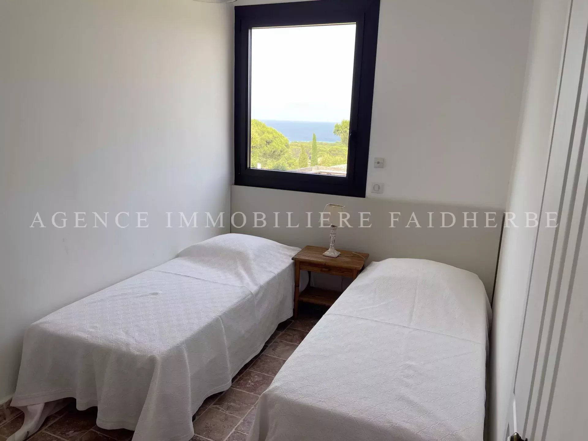 Sulle alture del Parc des Salins, casa con una piccola vista sul mare. Disposta su 2 livelli, è composta da: 2 camere da letto con 140 letti 1 camera con 2 letti in 80 1 bagno con doccia e wc Soggiorno / sala da pranzo che si apre su una terrazza Cucina attrezzata (lavastoviglie e lavatrice) 1 WC CORRENTE ALTERNATA Affitto: 3750 € / settimana Spese: pulizie, biancheria e tassa di soggiorno €6,91 / giorno / persona