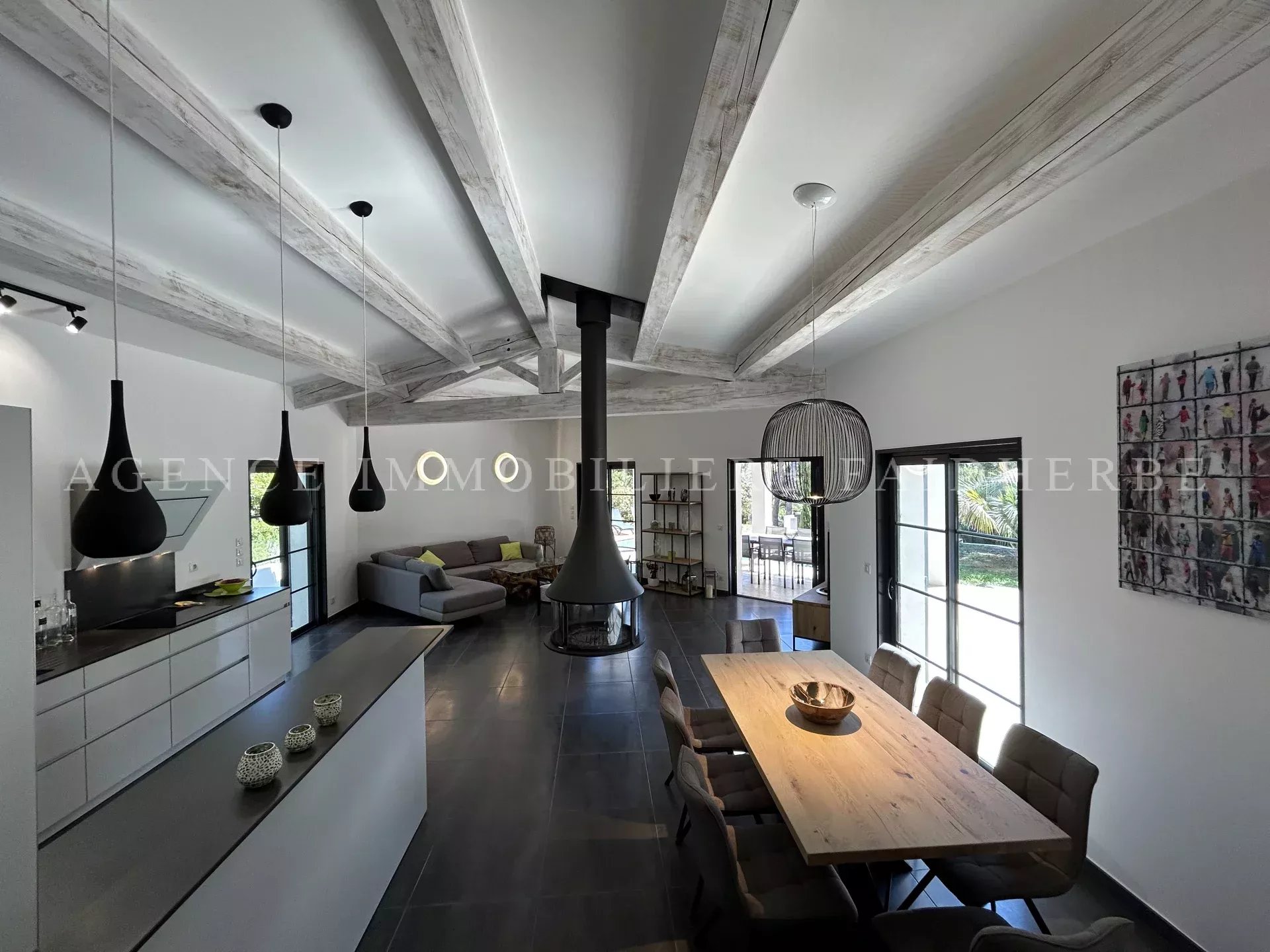 REF : 11 – 83119005883DP Bella casa contemporanea situata nel Parc des Salins, composta da 4 camere da letto e 3 bagni/docce. Al piano terra si trova una cucina completamente attrezzata aperta sul soggiorno e sulla sala da pranzo, con accesso diretto alla terrazza e alla piscina. Una camera da letto, un bagno con doccia e un WC separato. Lavanderia con frigorifero, lavatrice e cantina vini. Al piano superiore: un’ampia camera matrimoniale con bagno, doccia e WC privati, e accesso diretto alla terrazza con una vista mozzafiato sulle Alpi. Due ulteriori camere da letto e un bagno con doccia e WC completano il piano. Giardino, piscina, plancha, campo da bocce. Aria condizionata, allarme, cassaforte, parcheggio Tassa di soggiorno: €6,62/giorno/adulto Pulizia: €30/ora
